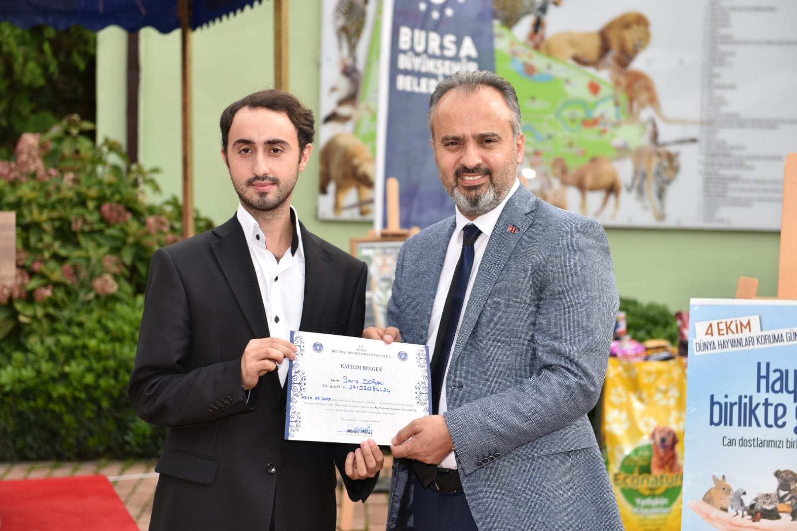 Konuşmaların ardından minik öğrenciler Başkan Alinur Aktaş’a çiçek takdim ederek hatıra fotoğrafı çektirdi. Veteriner Hizmetleri Şube Müdürlüğü tarafından düzenlenen eğitim programını başarıyla tamamlayan ‘Yerel Hayvanları Koruma Görevlilerine’ sertifikaları Başkan Aktaş tarafından verildi. Programın sonunda ise hayvan hakları evrensel beyannamesi bildirisi ile kuş, kedi ve köpek mamaları katılımcılara dağıtıldı.