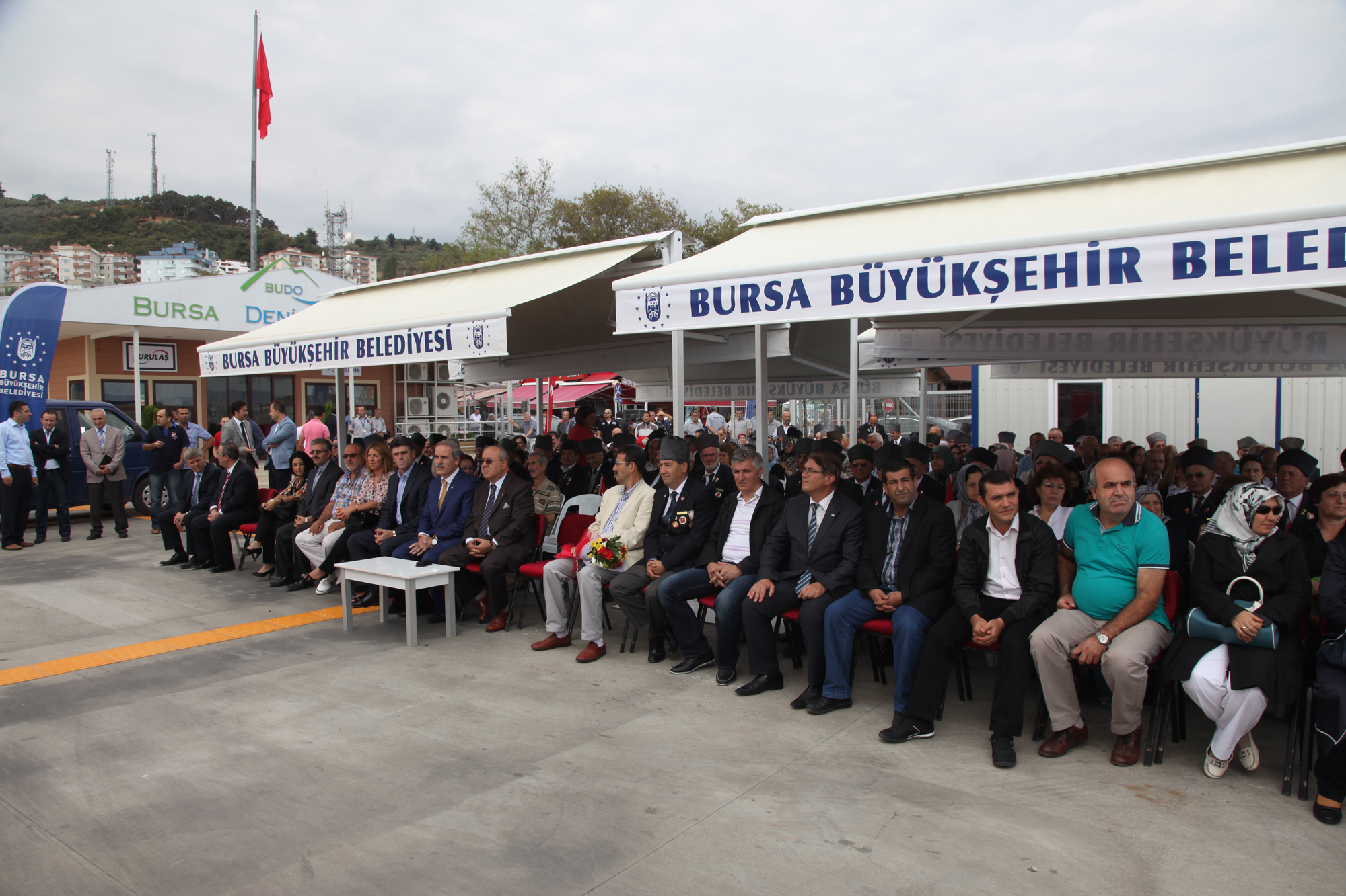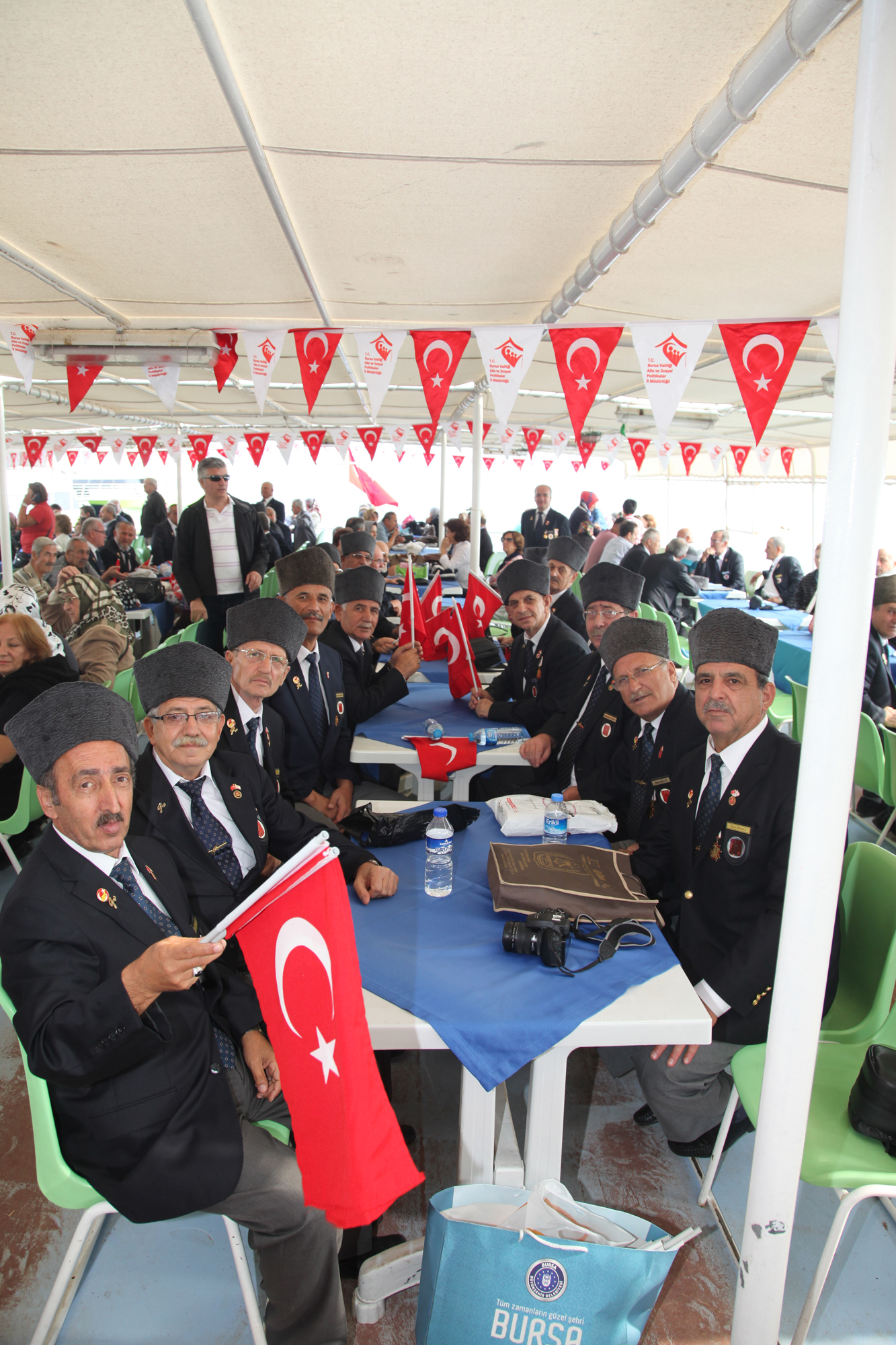 Bursa Vali Yardımcısı Vedat Müftüoğlu, bu coğrafyada yaşamanın ne kadar zor olduğunu hatırlatarak, “Çanakkale savaşında yabancı bir gazeteci askerimizin yanına gelip, ‘Biraz sonra öleceksiniz? Bu kadar güçlü bir orduya direnme şansınız yok. Ne hissediyorsunuz? diye sorar. Mehmetçiğimiz ise ‘şehit olmak dinimizde en büyük mertebe. Ben ölürüm ama çocuklarıma bir yurt bırakacağım’ diye cevap verir. Bu inançla bu bayrak bu vatan üzerinde şimdiye kadar dalgalandı ve dalgalanmaya devam edecek. Bize bu vatanı bırakman için canlarını feda eden şehitlerimizin ailelerine, vücutlarının bir parçasını feda eden gazilerimize sahip çıkmak boynumuzun borcudur. Bu etkinliğe katkı veren Büyükşehir Belediye Başkanımız başta olmak üzere emeği geçen herkese teşekkür ediyorum” diye konuştu.