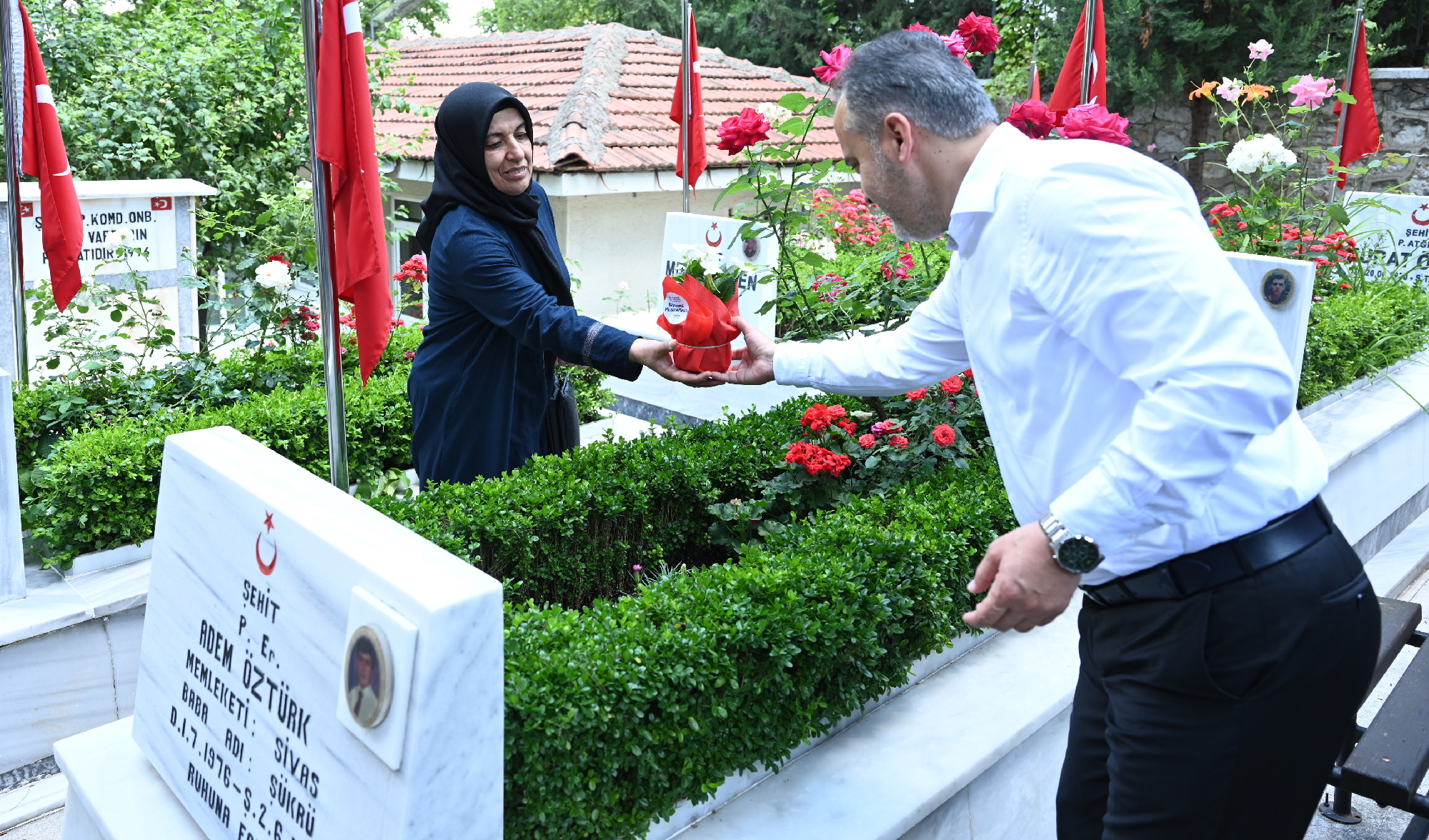 Kurban Bayramı arifesinde çarşıda esnafla, metroda vatandaşla ve sahada çalışan belediye personeli ile bir araya gelip, bayram kutlaması yapan Büyükşehir Belediye Başkanı Alinur Aktaş, hüznün adresi olan şehitlikleri ziyaret edip, şehit ailelerinin acılarına ortak oldu. Arife gününün sabahına Pınarbaşı Şehitliği’nde başlayan Başkan Aktaş, şehit aileleriyle bir araya gelip, onların da bayramını tebrik etti. Şehitler için dua eden Başkan Aktaş, Büyükşehir Belediyesi olarak tüm şehitlikleri bakım onarım çalışmalarıyla şehitlerin şanına yakışır hale getirdiklerini belirtti. Şehit ailelerine evlatlarının mezarlarına dikmeleri için saksıda çiçekler dağıtan Başkan Aktaş, şehit ailelerinin her zaman yanlarında olduklarının da altını çizdi. Başkan Aktaş, “Bu vatan uğrunda şehadete yürüyen tüm büyüklerimizi rahmetle, minnetle anıyorum. Gazilerimize sağlıklı, hayırlı, uzun ömürler temenni ediyorum. Bu vesileyle de şehit ailelerimizin yalnız olmadığını, her daim yüreklerimizde olduğunu, her daim onlarla beraber olduğumuzu bilmelerini istiyorum” dedi.