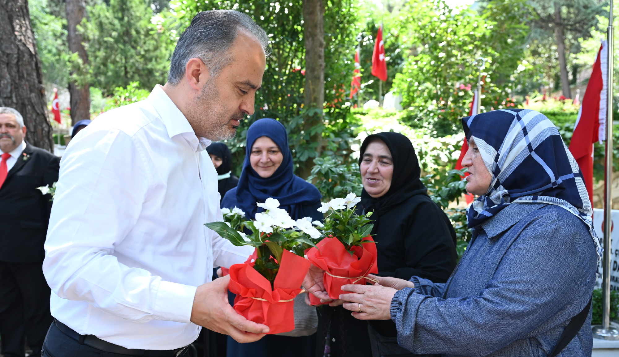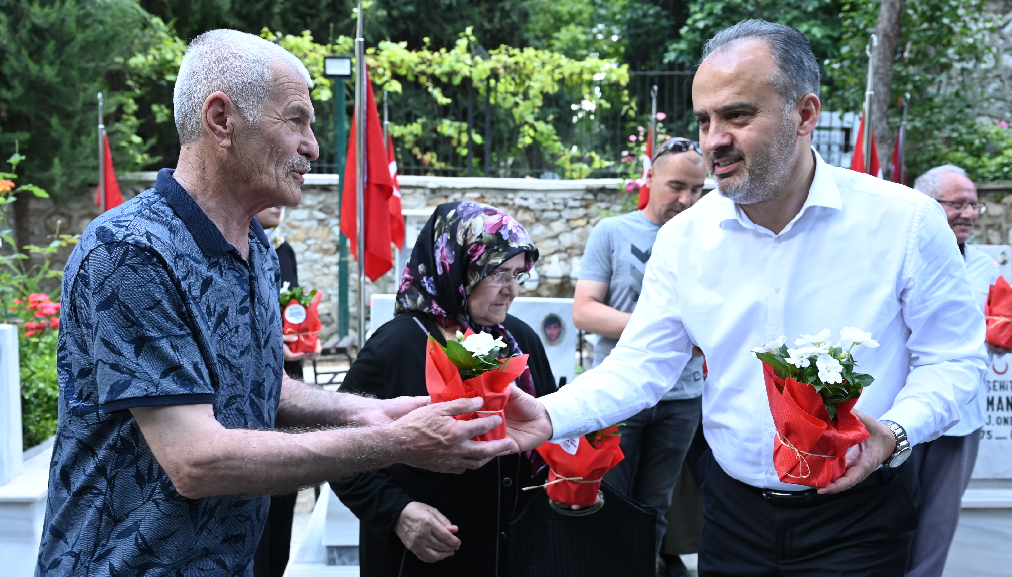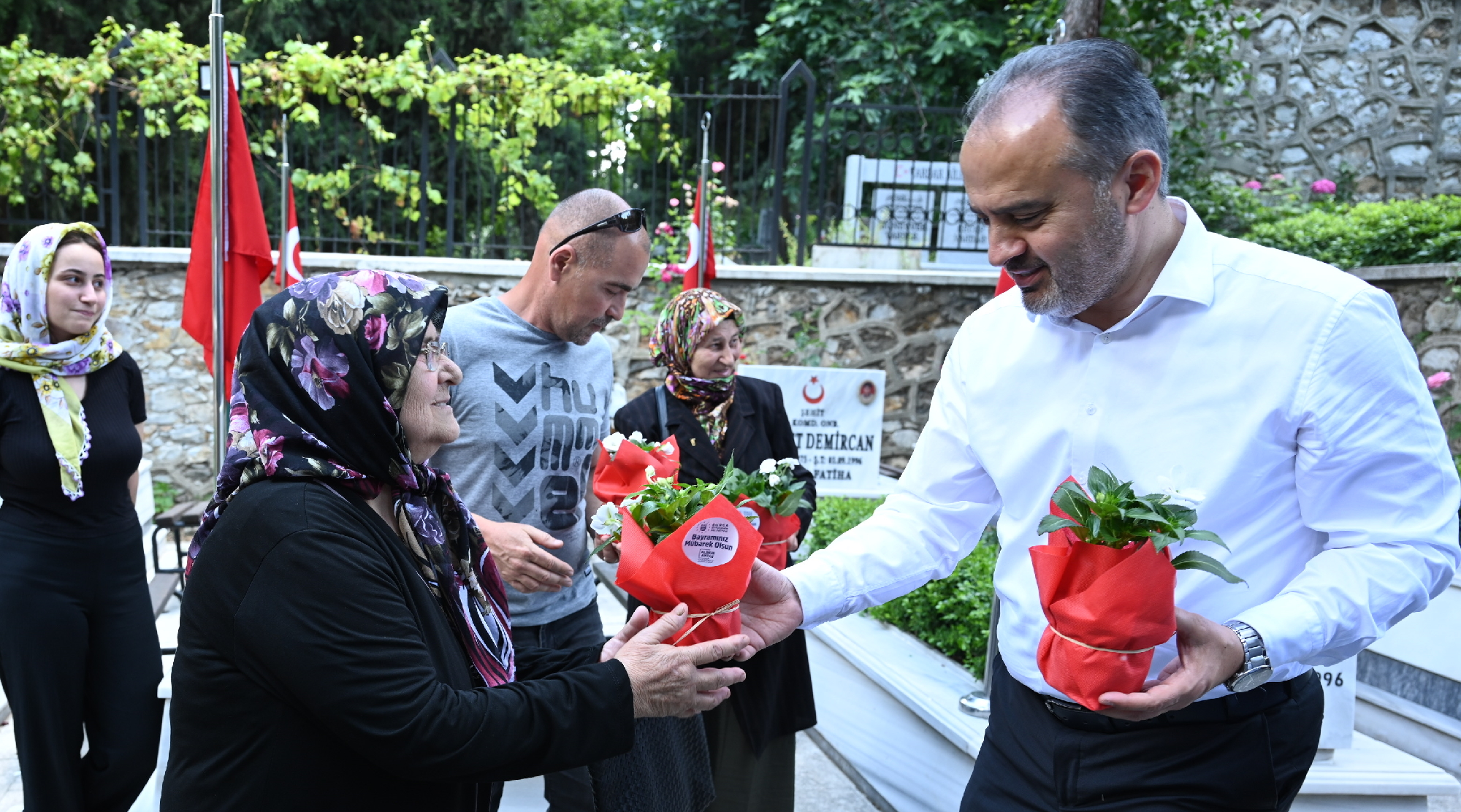 BURSA – Kurban Bayramı arifesinde mezarlık ziyaretleri yoğunlaşırken, Bursa Büyükşehir Belediye Başkanı Alinur Aktaş, Pınarbaşı Şehitliği’nde şehit aileleriyle bir araya gelip, şehitler için dua etti. Başkan Aktaş, bayramı hüzünle geçiren şehit ailelerinin acılarına ortak oldu.