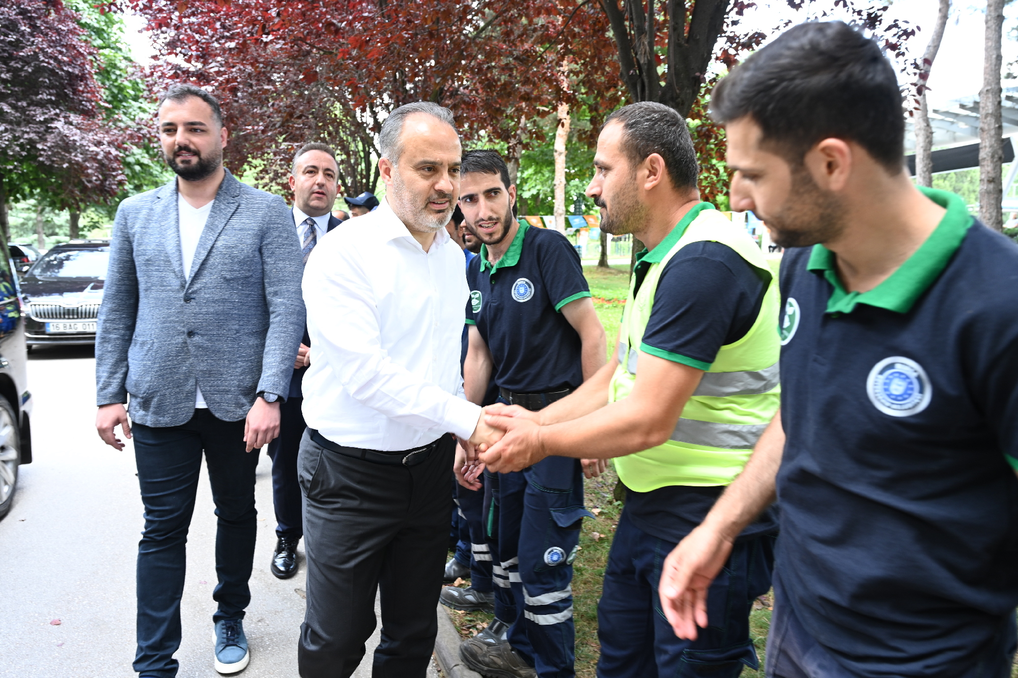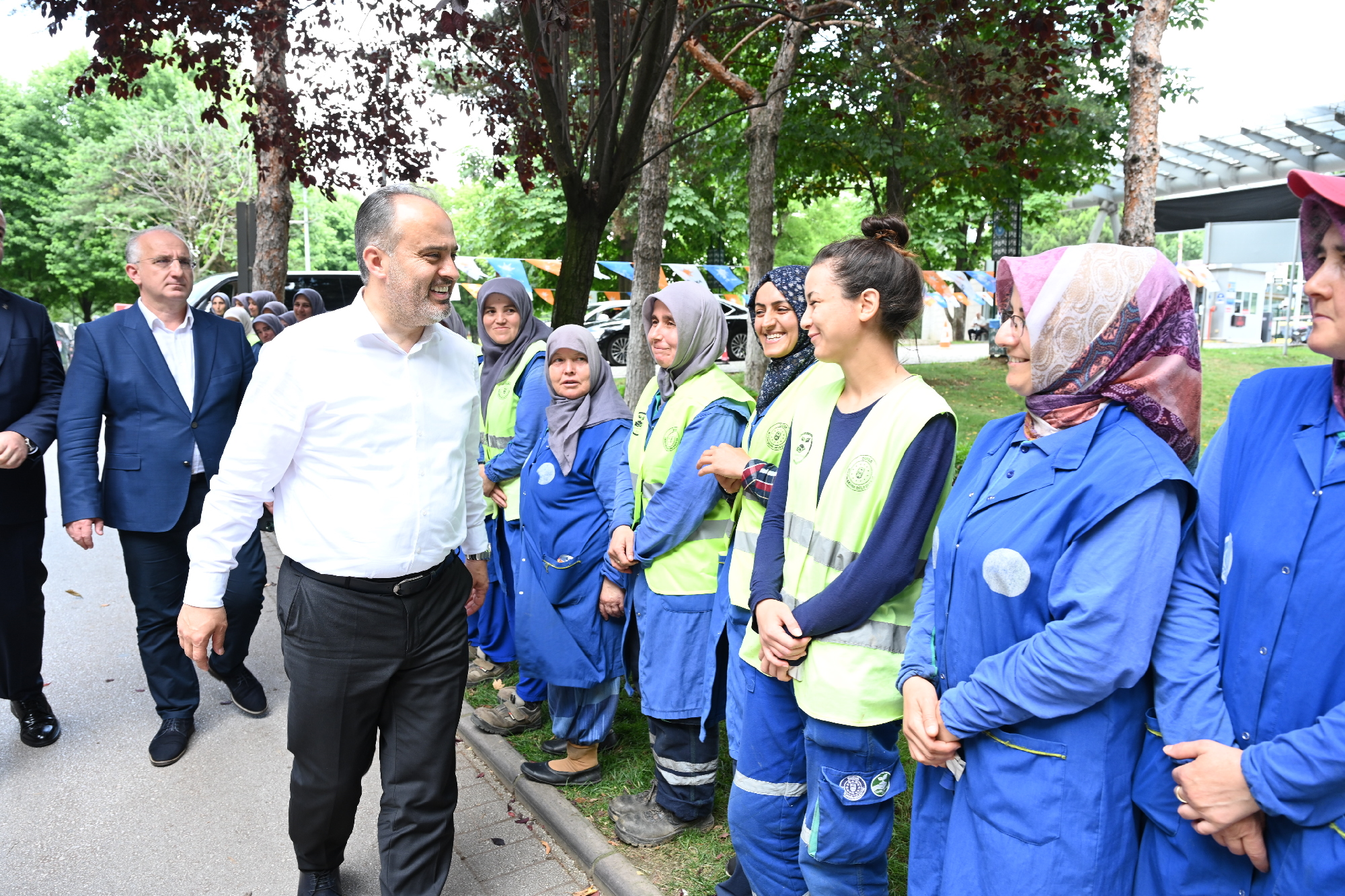 Başkan Aktaş, bu arada bayram süresince görev başında olacak saha ekibiyle de bir araya geldi. Merinos Park’ta çevre düzenleme çalışmaları yapan Parklar ve Bahçeler Şube Müdürlüğü ile Tarım Peyzaj A.Ş personelini görevleri başında ziyaret eden Başkan Aktaş, personelin bayramını kutladı. Vatandaşların huzurlu ve sorunsuz bir bayram geçirmesi için Büyükşehir ekiplerinin bayram süresince sahada olacağını kaydeden Başkan Aktaş, “Tatil olmasına rağmen Bursa'yı güzelleştirmek için emeğini, gayretini, alın terini ortaya koyan kardeşlerimiz var. Park bahçeler işçilerimiz var, Tarım A.Ş. işçilerimiz var. İnşallah Bursa'mız bu yaz yapacağımız çalışmalarla daha da yeşile bürünecek, daha da güzelleşecek. Ben bu vesileyle tüm ekip arkadaşlarıma yürekten teşekkür ediyorum. Herkese hayırlı bayramlar diliyorum” diye konuştu.