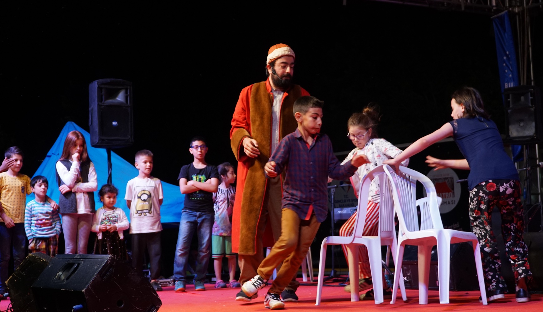 Bursa Büyükşehir Belediyesi tarafından Merinos Park ve Hüdavendigar Kent Parkı’nda düzenlenen ‘Şehr-i Ramazan’ etkinlikleri, tüm coşkusuyla devam ediyor. Vatandaşların Ramazan akşamlarına huzur katan programlar, duygusal anlara da imza atıyor. İftar sonrası Merinos Parkı’nda sahneye çıkan Selçuk Salih Başhan ve Burak Çağatay Serinbaş, ‘Kavuklu ve Kıvırcık’ doğaçlama tiyatro gösterisiyle önce izleyenlere bol bol kahkaha attırdı, oyun sonrası da mini yarışmalarla çocuklara kitap armağan etti.