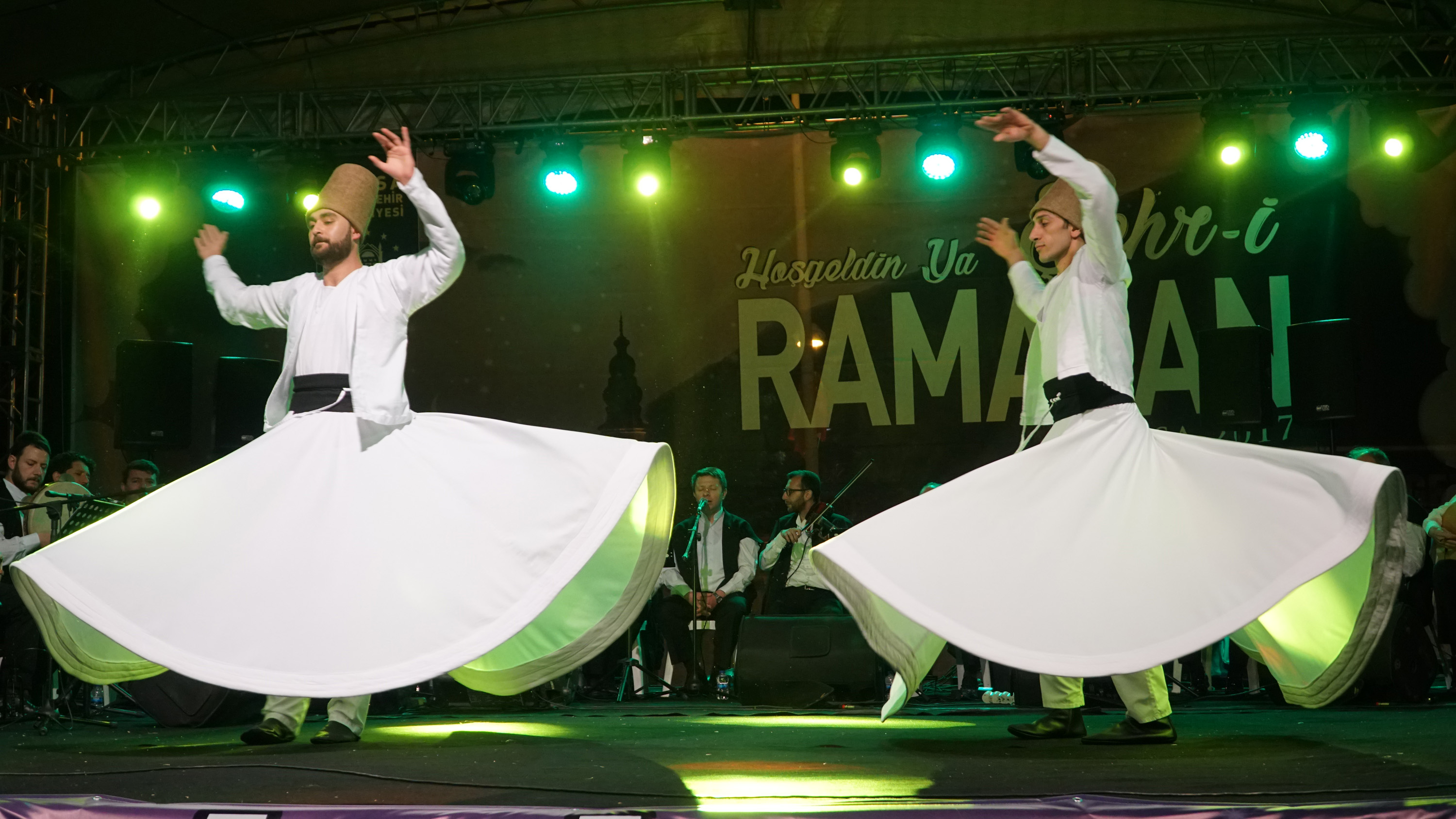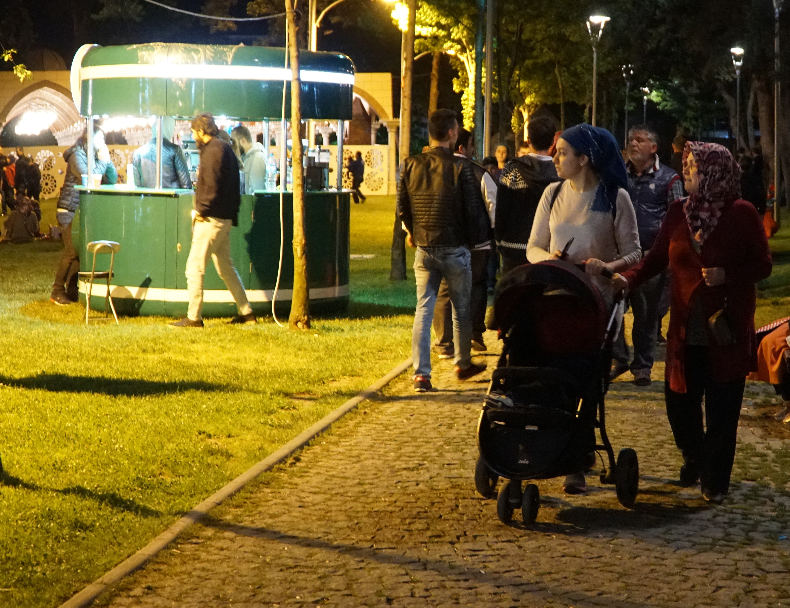 - Merinos Parkı’nda gök kubbeli açık namazgâhta Enderun usulü kılınan teravih namazına vatandaşlar yoğun ilgi gösterirken, alana kurulan dev sahnedeki orta oyunu ve tiyatral gösteriler de ilgiyle izlendi.