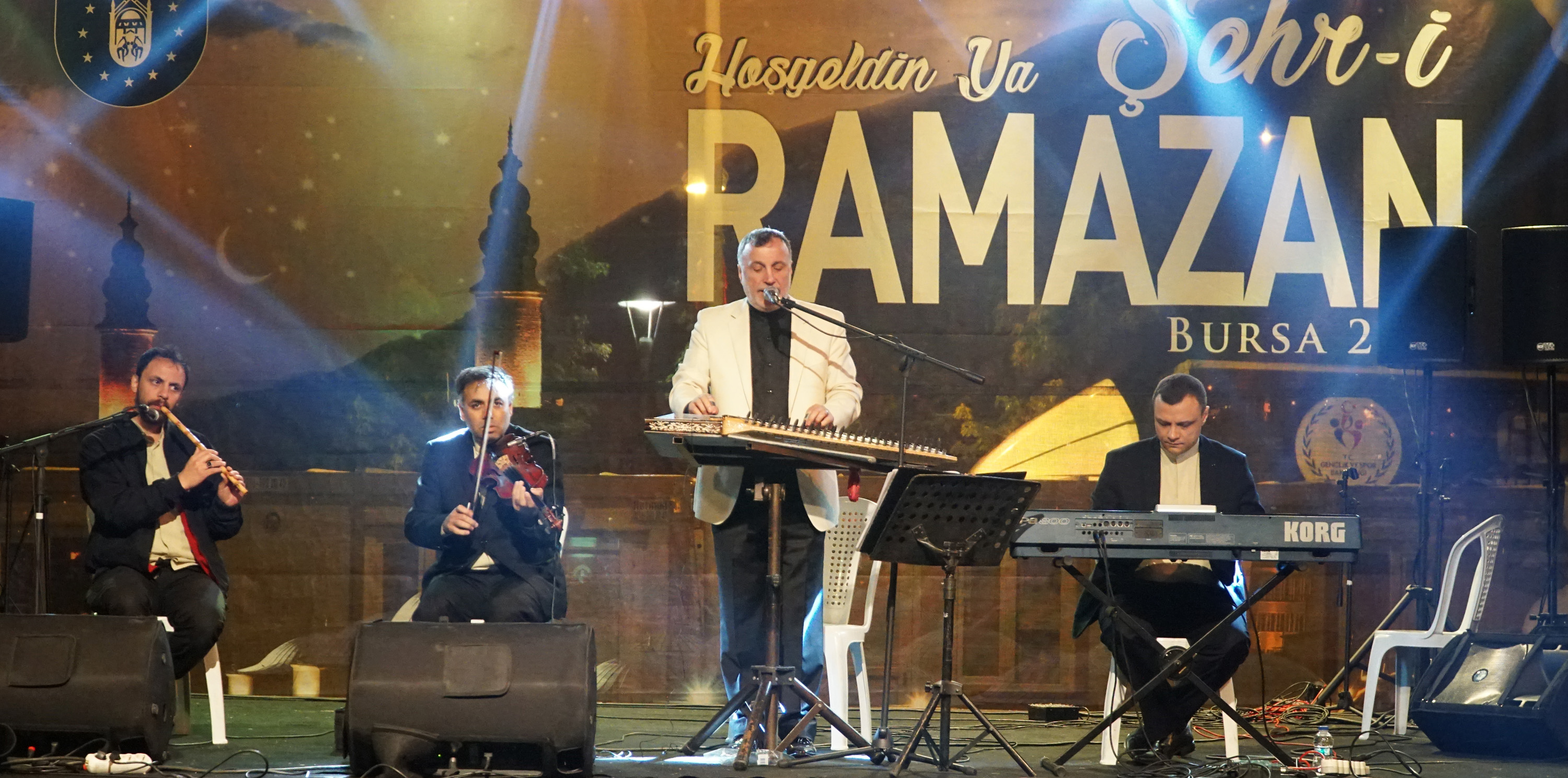 Bursa Büyükşehir Belediyesi Kültür Turizm Daire Başkanlığı ve Kültür A.Ş. tarafından düzenlenen ‘Şehr-i Ramazan’ etkinlikleri, Merinos Parkı’nda coşkulu anlara imza atmaya devam ediyor. İbiş ve jonglör gösterileri ilgiyle izlenirken, çocuklara yönelik mini yarışmalar da keyifli görüntülere sahne oldu. Program kapsamında sahneye çıkan Tasavvuf ve Kanun Sanatçısı Engin Özbeş ise Ramazan’a özel ilahileri söylerken vatandaşlara duygusal ve huzur dolu bir akşam yaşattı. Alana kurulan oyun parkları ise çocukların neşesini ikiye katladı.