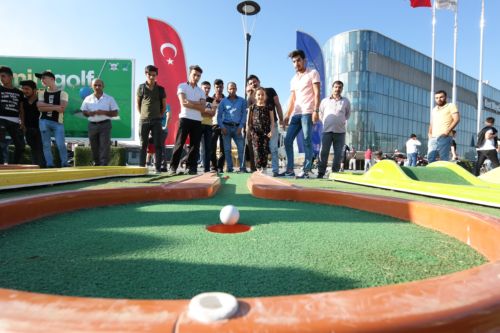 Sadece çocuklar ve gençler değil tüm vatandaşların büyük bir merak ve heyecanla eşlik ettiği organizasyon renkli görüntülere sahne oldu. Kent meydanında kaldırımları süpürürken, golf platformlarını gören temizlik görevlisi de elindeki süpürgeyi bırakıp, mini golfte hünerlerini sergiledi. Atış tekniği konusunda önce görevlilerden destek alan temizlik görevlisi, peş peşe yaptığı başarılı atışlarla izleyenlerden alkış aldı.