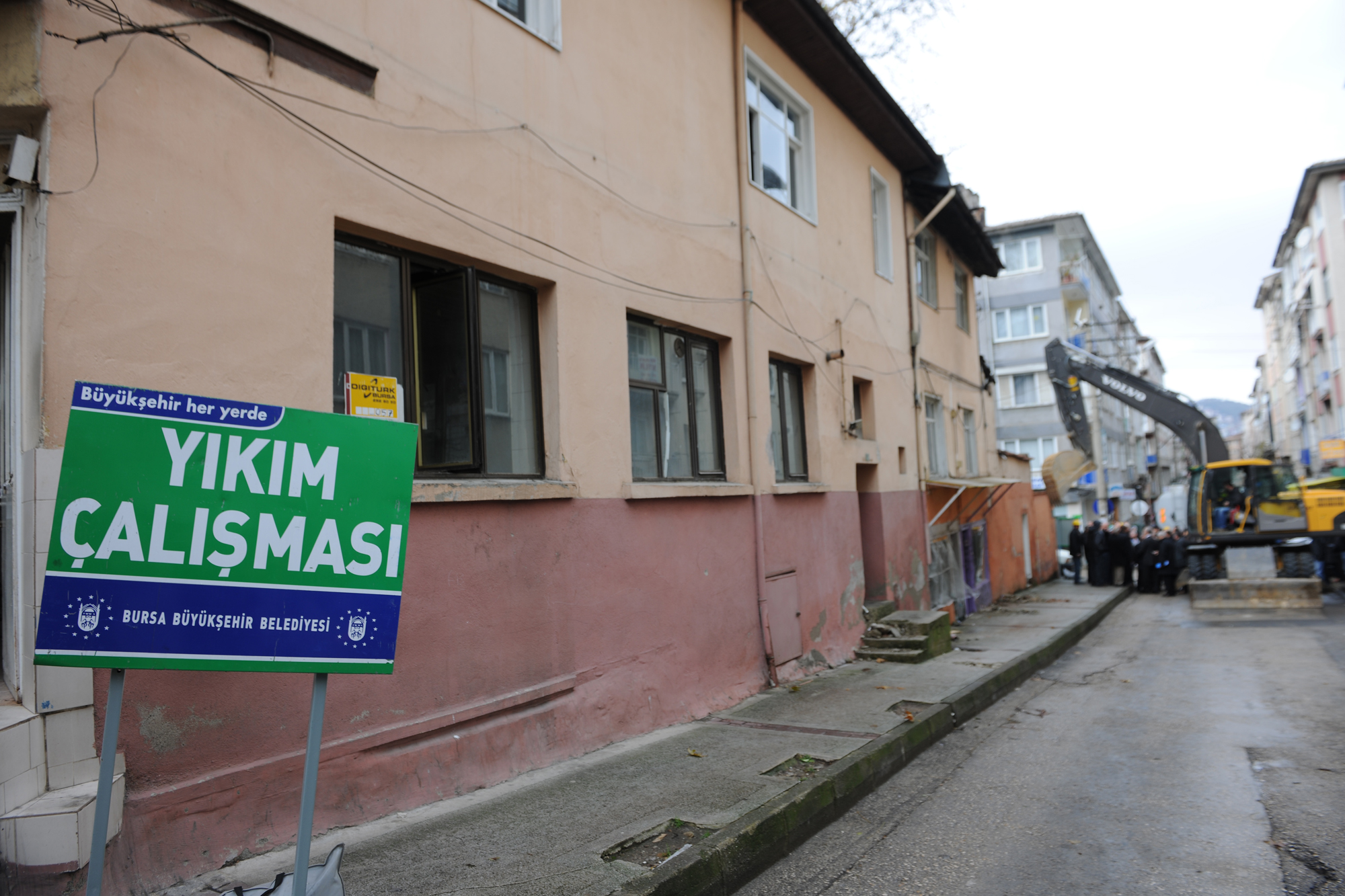 - BURSA BÜYÜKŞEHİR BELEDİYESİ, YOĞUN YAPILAŞMA NEDENİYLE PARK VE SOSYAL DONATI ALANLARINDAN YOKSUN OLAN SELİMİYE MAHALLESİ’NE MEYDAN KAZANDIRMAK İÇİN KISMEN YOLDA KALAN BİNANIN YIKIMINI BAŞLATTI.