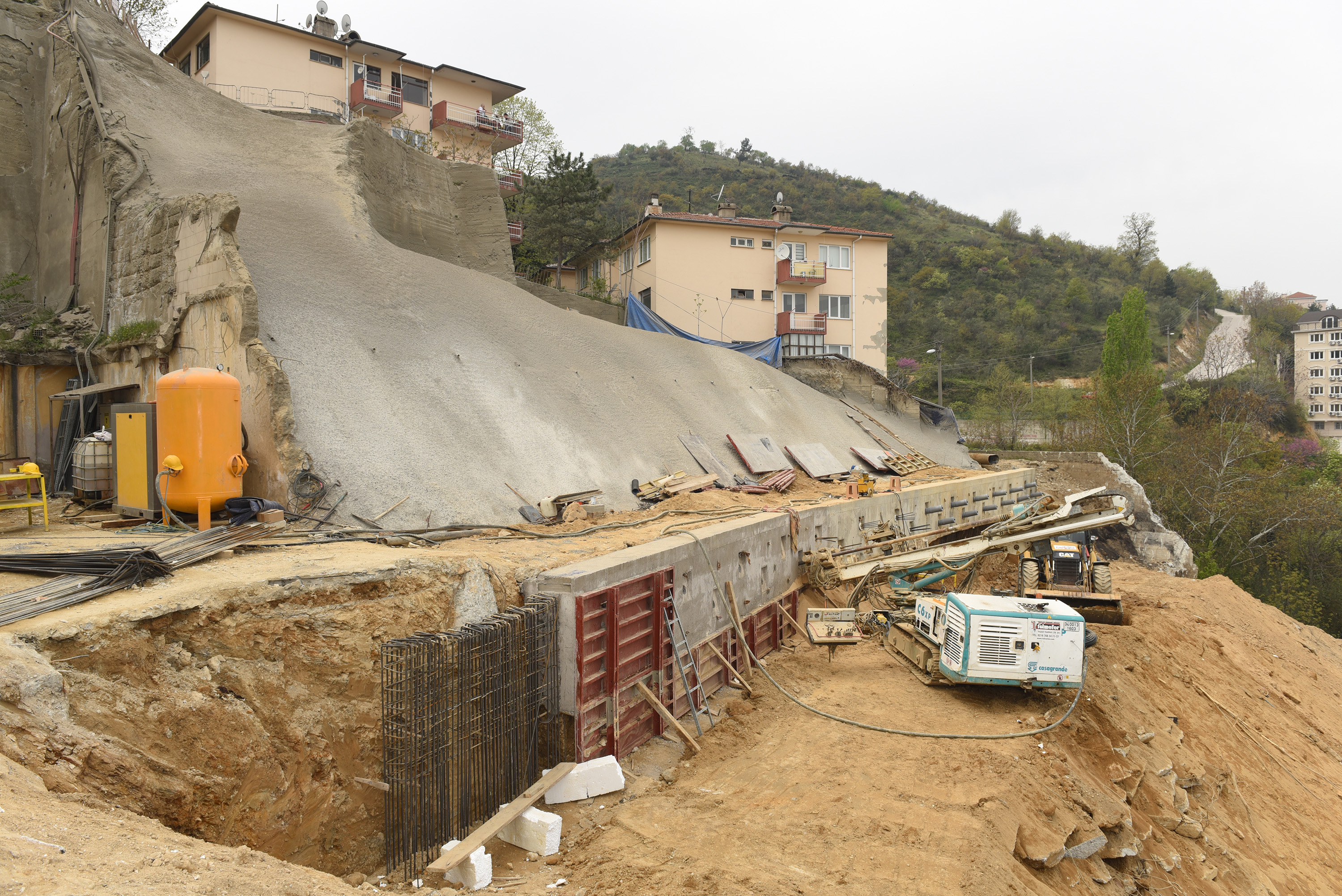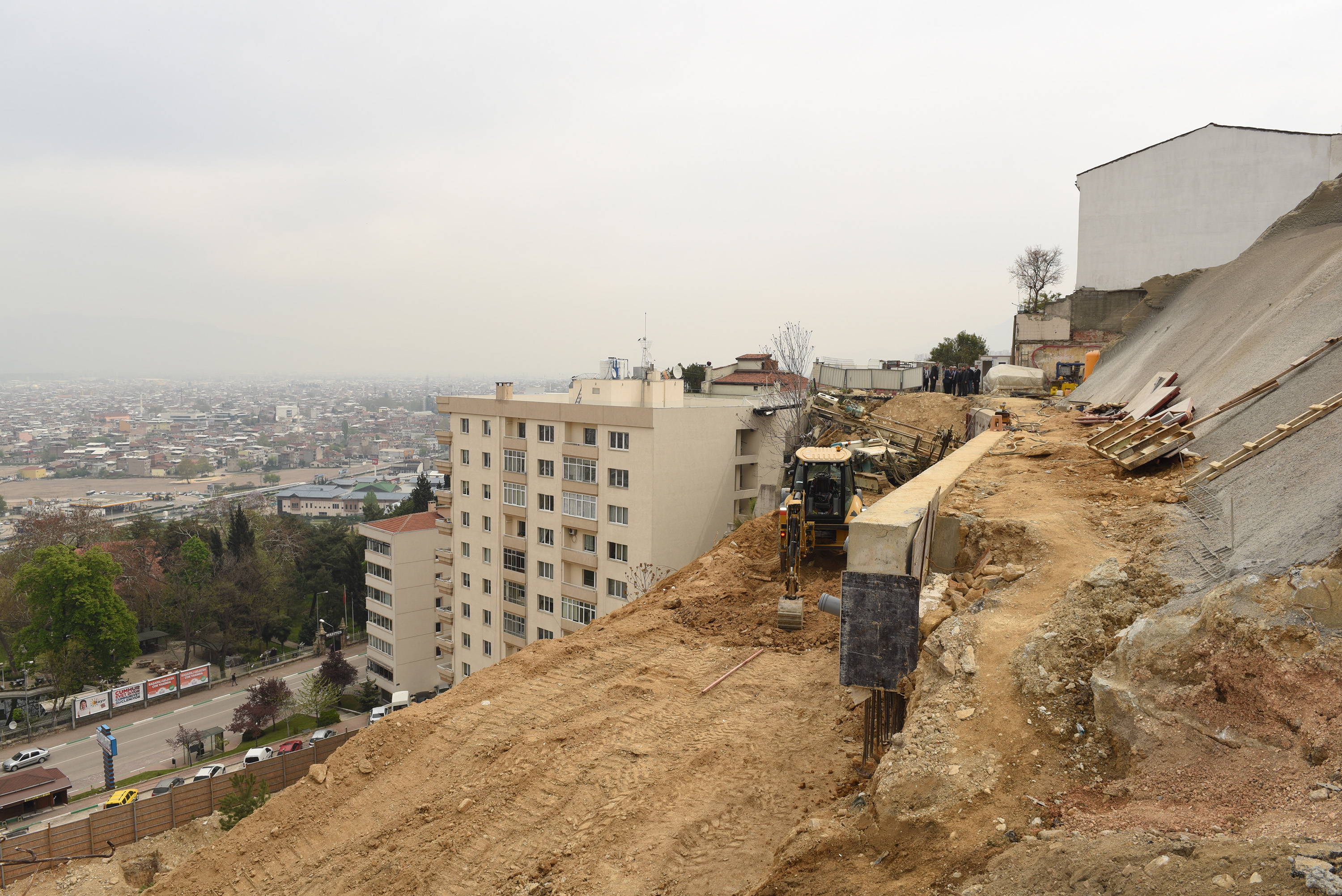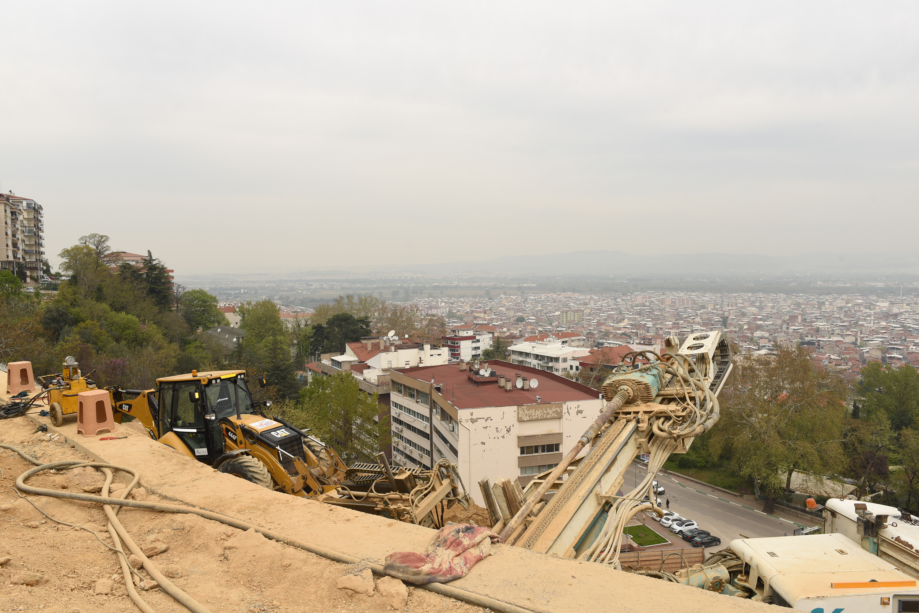 Çekirge’yi Hamzabey ve Muradiye bölgesine bağlayan Selvili Cadde’nin İntam blokları bölümündeki çöken kısmında 34 metre derinliğe inen kuyu temeller üzerine projelendirilen viyadük inşaatı devam ediyor. Viyadüğün inşaat çalışmalarını yerinde inceleyen Büyükşehir Belediye Başkanı Recep Altepe, bölgede yaşanan heyelanla birlikte istinat duvarlarının yıkıldığını, İntam 95 ve 97 bloklarıyla birlikte Selvili Cadde’nin bir kısmının da çöktüğünü hatırlattı.