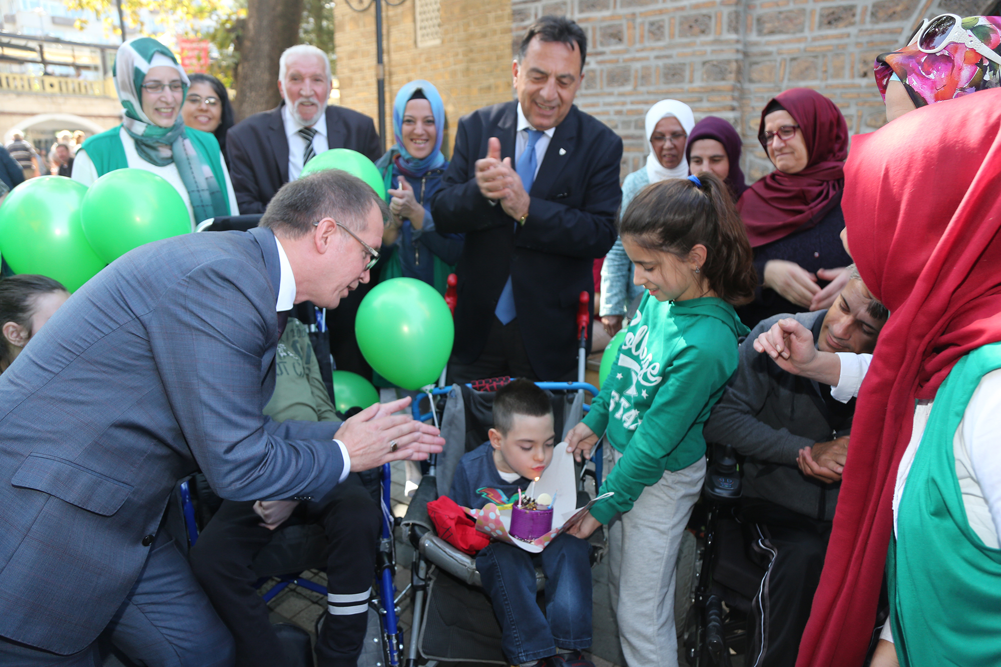 Programın ardından srebral palsili gençler aileleri ile birlikte Ulucami çevresinde yürüyüş yaptılar.