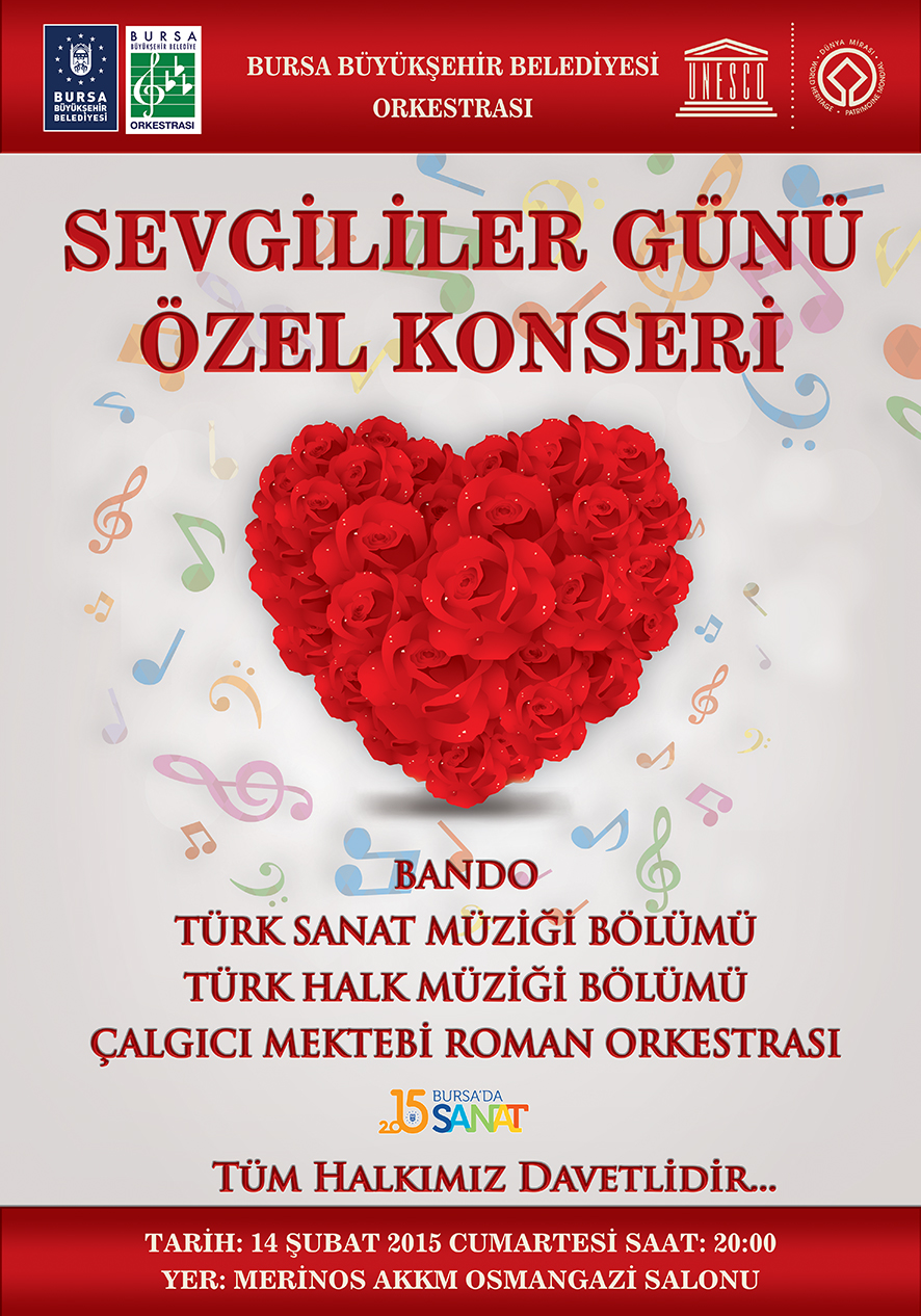 BURSA – Bursa Büyükşehir Belediyesi Orkestrası, ‘Sevgililer Günü Özel Konseri’, 14 Şubat Cumartesi günü gerçekleştirecek.