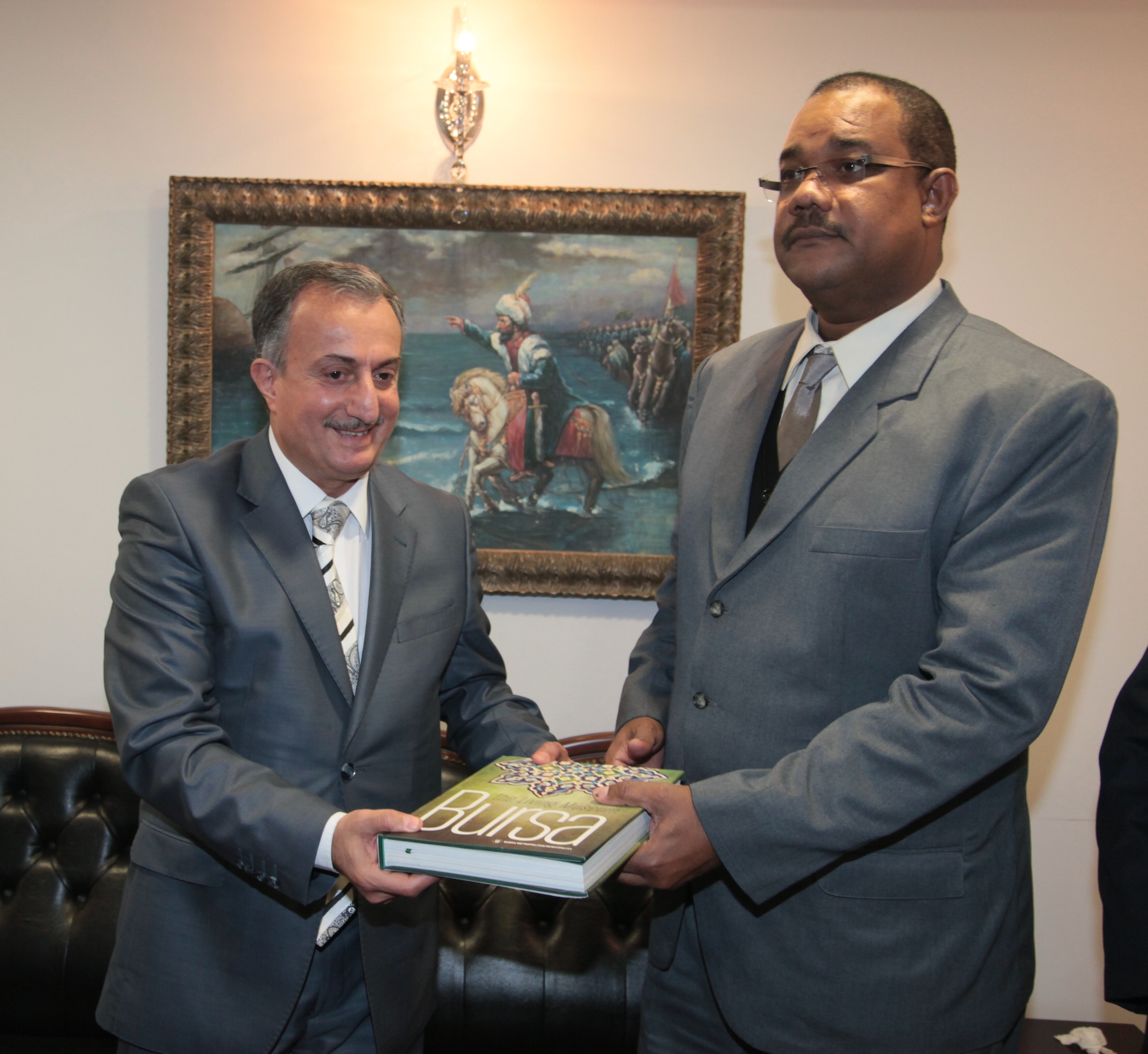 Karadağ, ziyaretin sonunda Seyşeller Ulusal Meclis Başkanı Patrick Herminie’ye kenti tüm yönleriyle tanıtan ‘Bursa’ kitabını armağan etti.