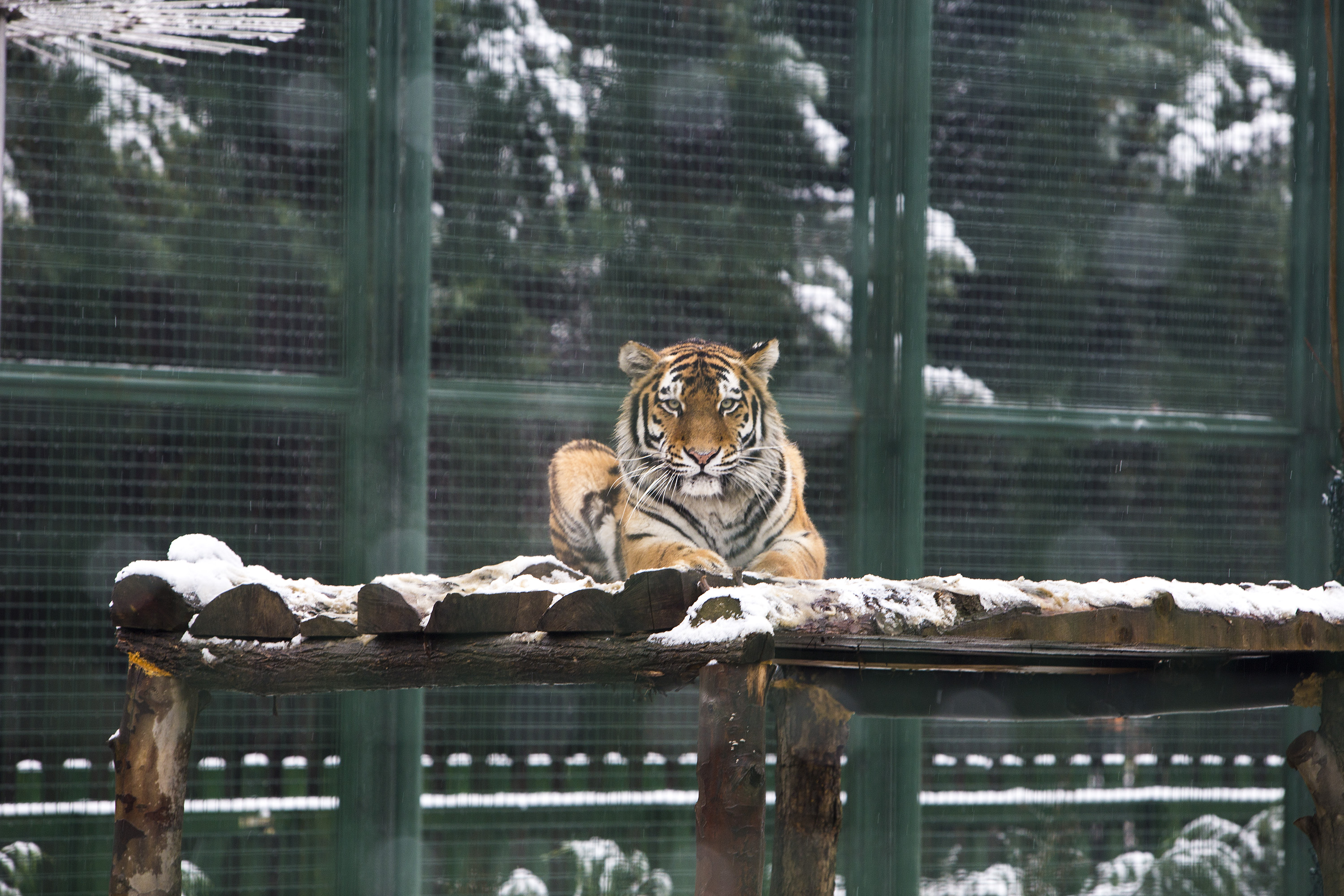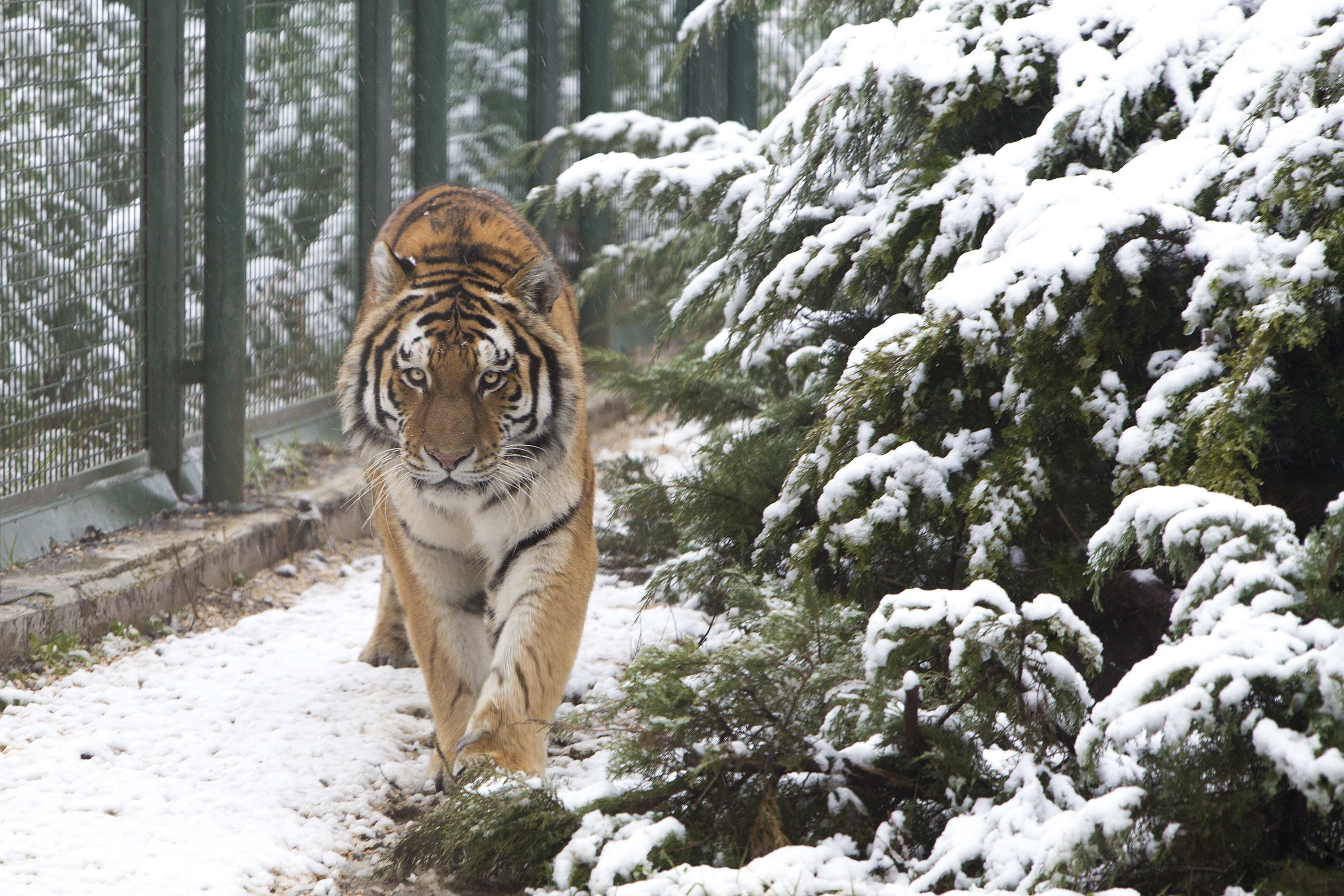 - SICAK İKLİM HAYVANLARININ BÜYÜK BİR BÖLÜMÜ KAR YAĞIŞIYLA BİRLİKTE ISITMA SİSTEMİ OLAN KAPALI BARINAKLARINDA GÜNLERİNİ GEÇİRİRKEN, AMUR KAPLANLARI İSE GÜNLERİNİN BÜYÜK BİR BÖLÜMÜNÜ BARINAĞIN KARLA KAPLI AÇIK BÖLÜMÜNDE DOLAŞARAK GEÇİRİYOR.
