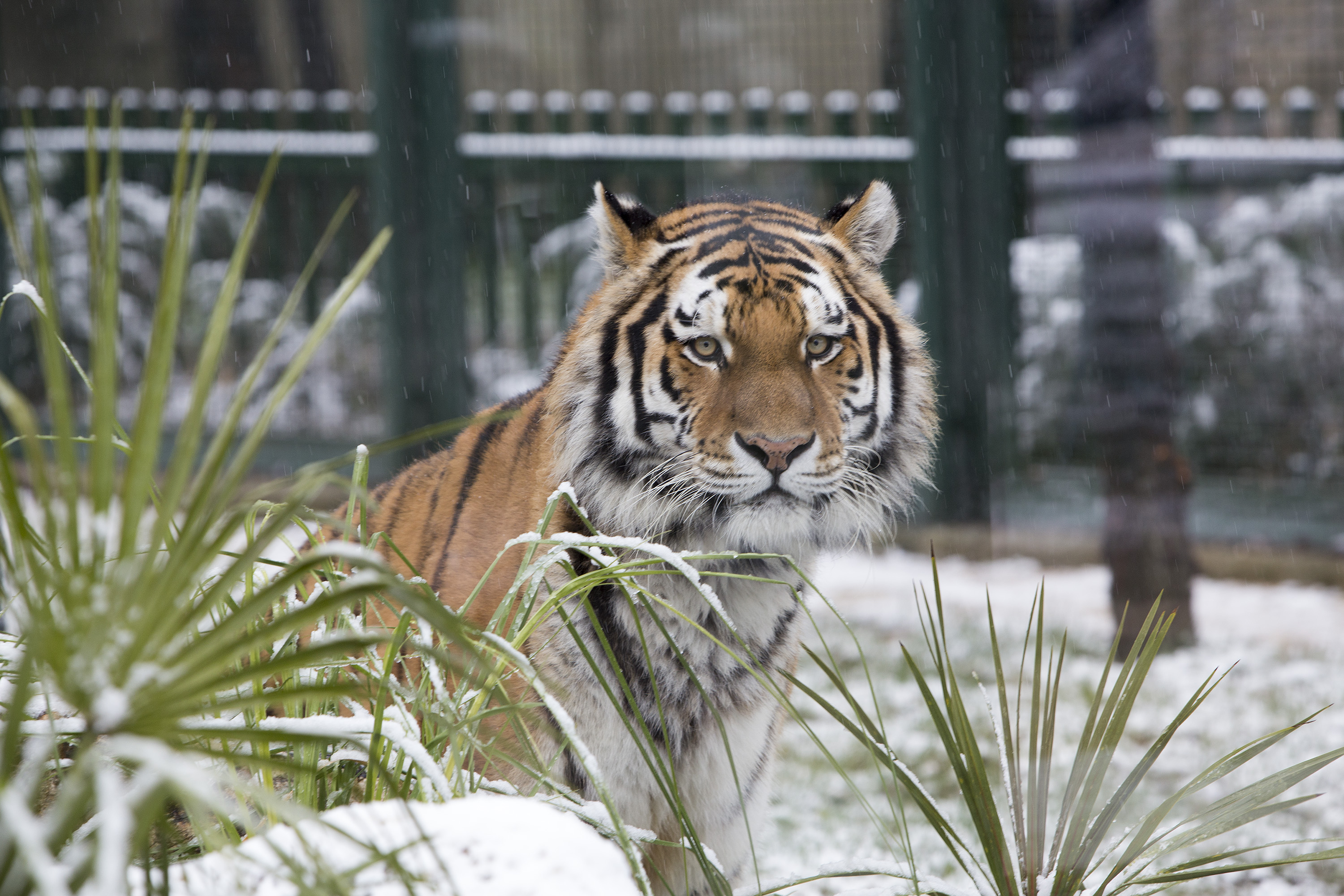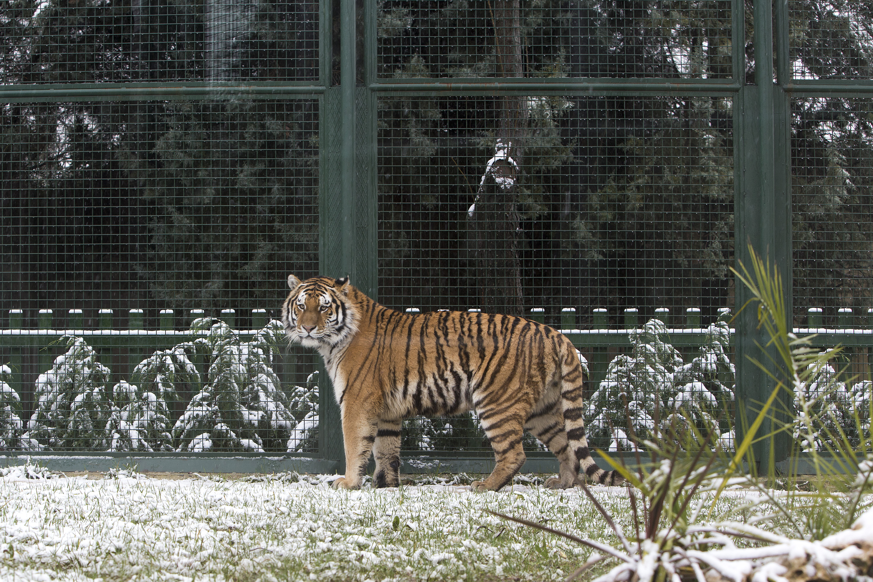 Yoğur kar yağışı birçok kentte trafik başta olmak üzere yaşamı olumsuz etkilerken, kar yağışı Bursa Büyükşehir Belediyesi Hayvanat Bahçesi’nde farklı görüntülere sahne oluyor. Özellikle sıcak iklim hayvanlarının büyük bir bölümünün ısıtma sistemli kapalı barınaklarına çekilmesiyle sessizliğin hakim olduğu hayvanat bahçesinde kar yağışının en çok mutlu ettiği hayvanlar ise yaz aylarında Bursa’ya getirilen amur kaplanları oldu. Mayıs ve Haziran ayında Almanya’dan getirilen Finja isimli dişi amur kaplanı ile Victor adlı erkek amur kaplanı, günlerinin büyük bir bölümünü kar yağışıyla birlikte beyaza bürünen barınaklarının açık bölümünde geçiriyor.