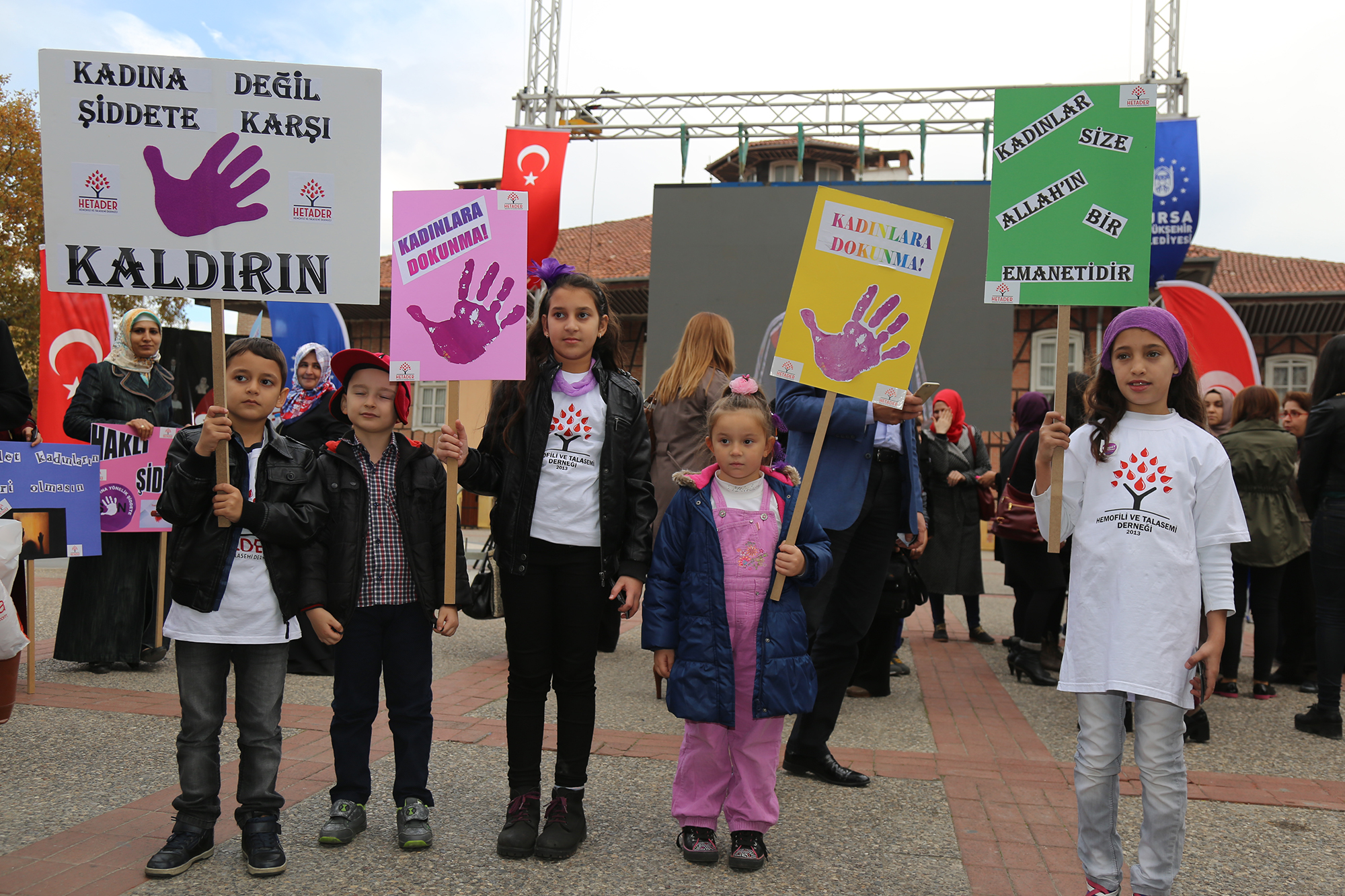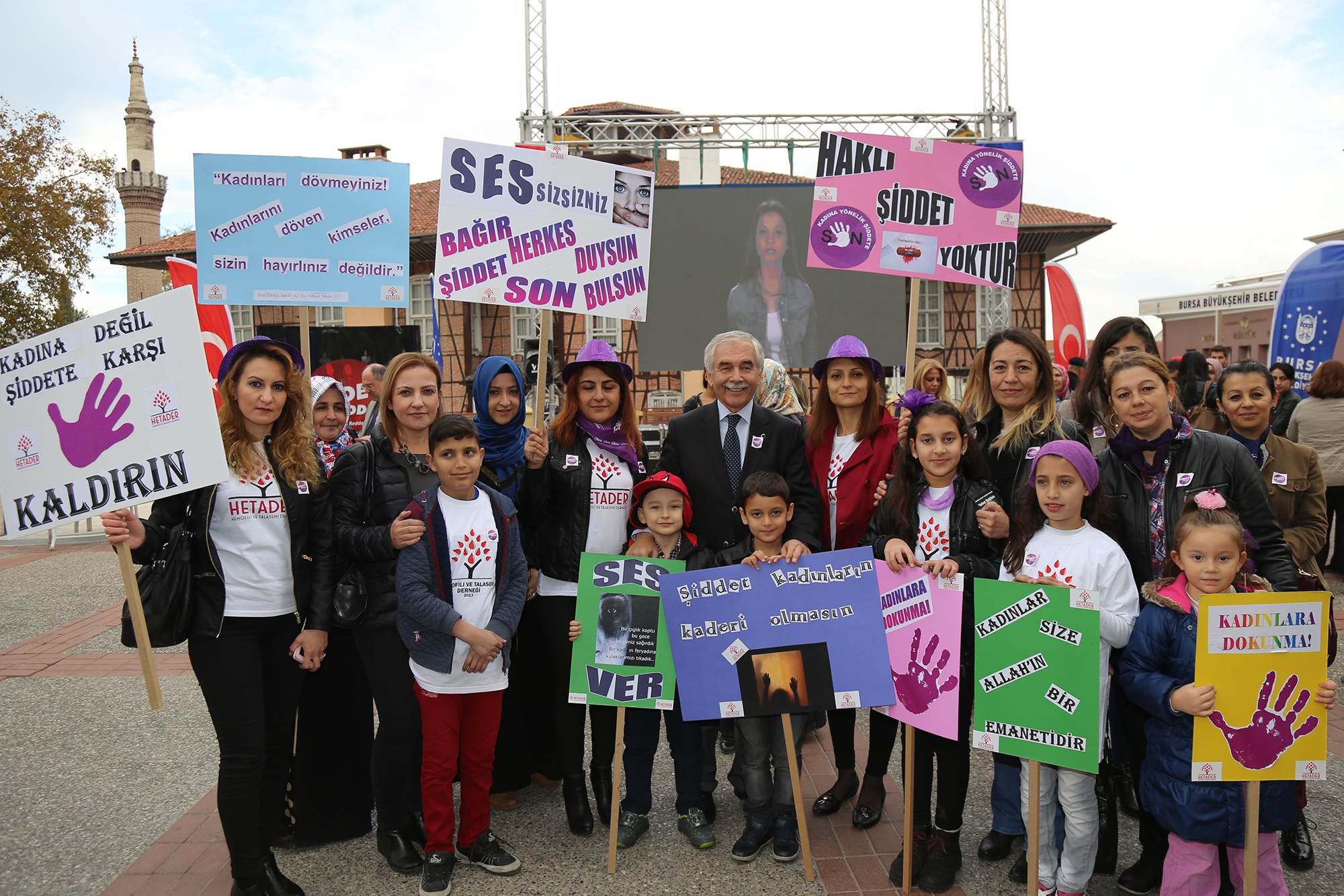 Kadına Yönelik Şiddete Karşı Uluslararası Mücadele günü kapsamında seslerini daha gür çıkarmak isteyen kadınlar kentin farklı noktalarında çeşitli etkinler düzenlerken, Bursa Büyükşehir Belediyesi tarafından da Heykel’deki tarihi belediye binası önünde ‘Kadına yönelik şiddeti reddediyorum” standı açıldı. Sosyal Hizmetler Şube Müdürlüğü Eşitlik Birimi Kent Konseyi Kadın Komisyonu, Türk Üniversiteli Kadınlar Derneği Bursa Şubesi, HETADER, Bursa Soroptimist Kulübü tarafından vatandaşlara uyarıcı, eğitici broşürler dağıtıldı.