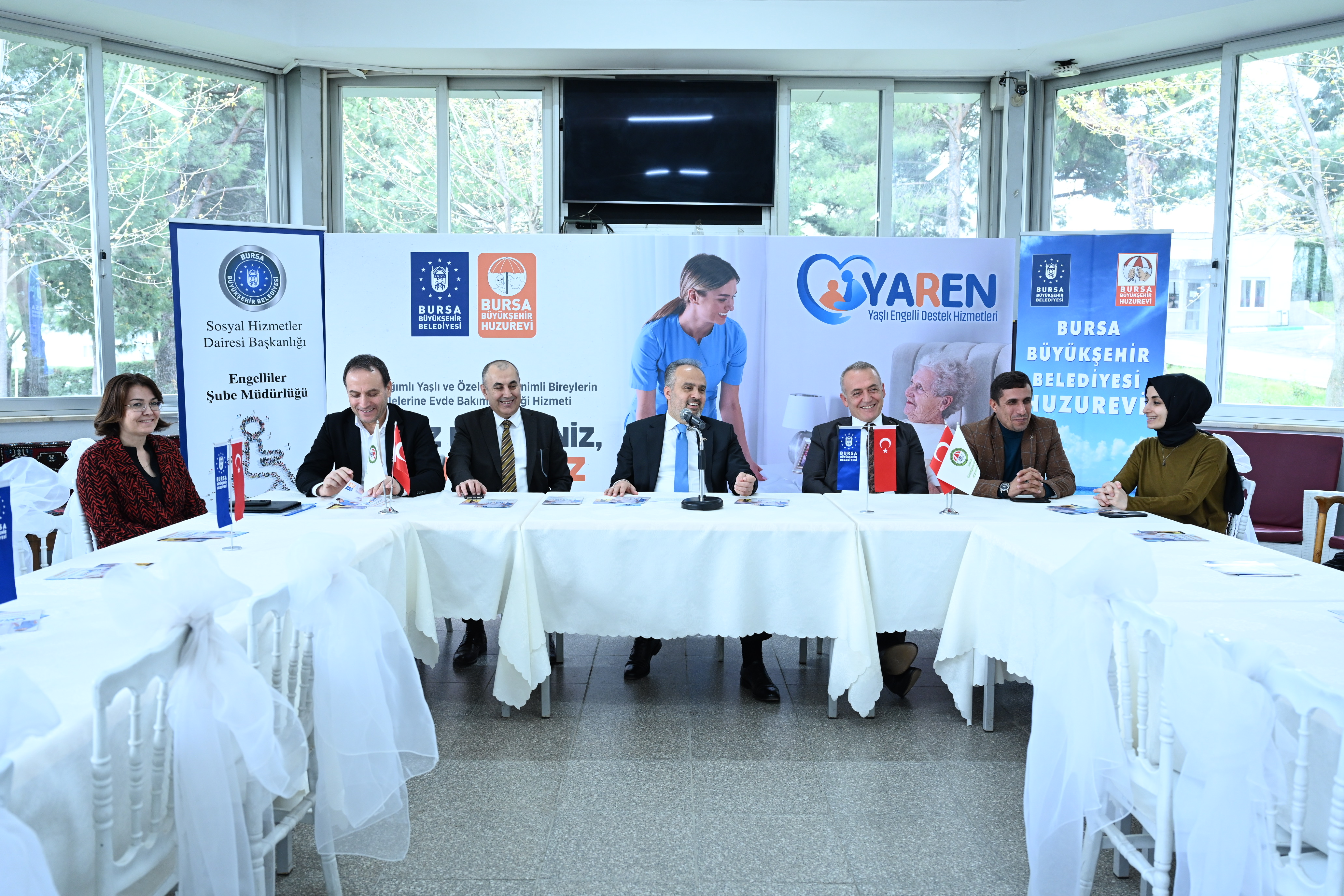Bursa Büyükşehir Belediyesi sosyal hizmet uygulamalarına bir yenisini daha ekledi. Bursa’da ikamet edip sosyo-ekonomik yoksunluk içinde olan, korunmaya ve bakıma muhtaç 60 yaş ve üzerindeki kişilere Huzurevi’nde her türlü hizmeti sunan Büyükşehir Belediyesi şimdi de yaşlı, engelli ve tam yatağa bağımlı vatandaşlara yatılı bakım hizmetinin dışında evde bakım hizmeti vermeye de başlıyor. Yaşlı Engelli Destek Hizmetleri Projesi’nde (YAREN) en büyük amaç, evde bakım ihtiyacı duyan kişilere gerekli her türlü desteği sağlayarak ailelerinin kendilerine vakit ayırabilecekleri esnek zaman dilimleri oluşturmak ve hayatlarını biraz olsun kolaylaştırmak. Bu nedenle projesinin hedef kitlesini sürekli evde bakım hizmetine ihtiyaç duyan kişiler ve aileleri oluşturuyor.