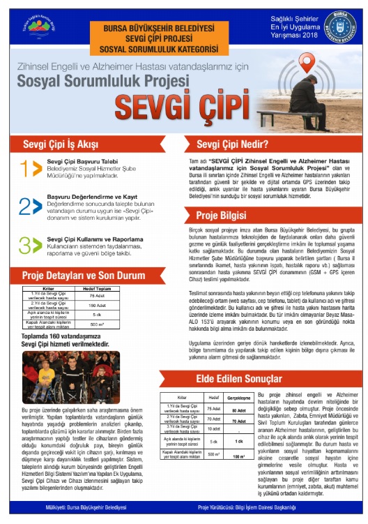 ‘Sevgi Çipi’ projesinde ise zihinsel engelli ve alzheimer hastası vatandaşlara yönelik daha güvenli gezme ve günlük faaliyetlerini gerçekleştirme imkânı sağlandı. Proje kapsamında, 150 hastaya sevgi çipi temin edildi.