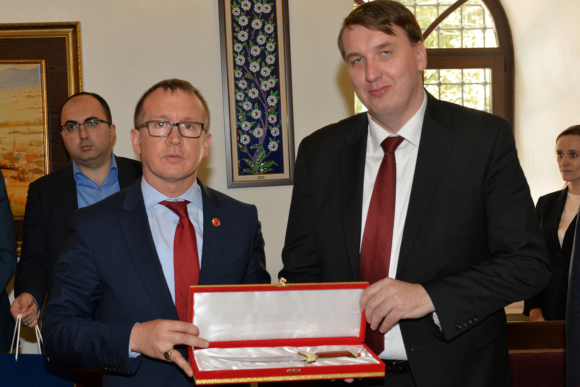 Büyükşehir Belediye Başkanvekili Abdülkadir Karlık, ziyaretin anısına konuk heyet temsilcisine Bursa Bıçağı hediye etti. Marko Kovacic de Başkanvekili Karlık’a Maribor’un kuruluş fermanı ile yöresel bal takdim etti.