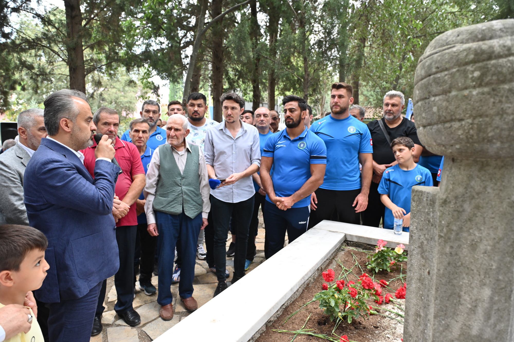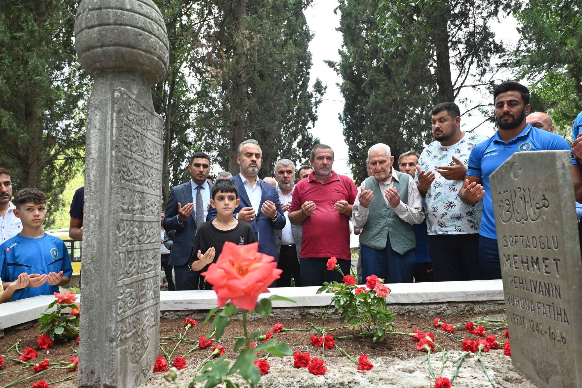 BURSA – Ata sporlarının yaşatılmasına büyük özen gösteren Bursa Büyükşehir Belediyesi, güreşi bıraktığı 1822 yılına kadar Osmanlı sarayının başpehlivanı olarak adını tarihe altın harflerle yazdıran Softaoğlu Mehmed Pehlivan’ı Demirci Mahallesi’ndeki mezarı başında dualarla andı.