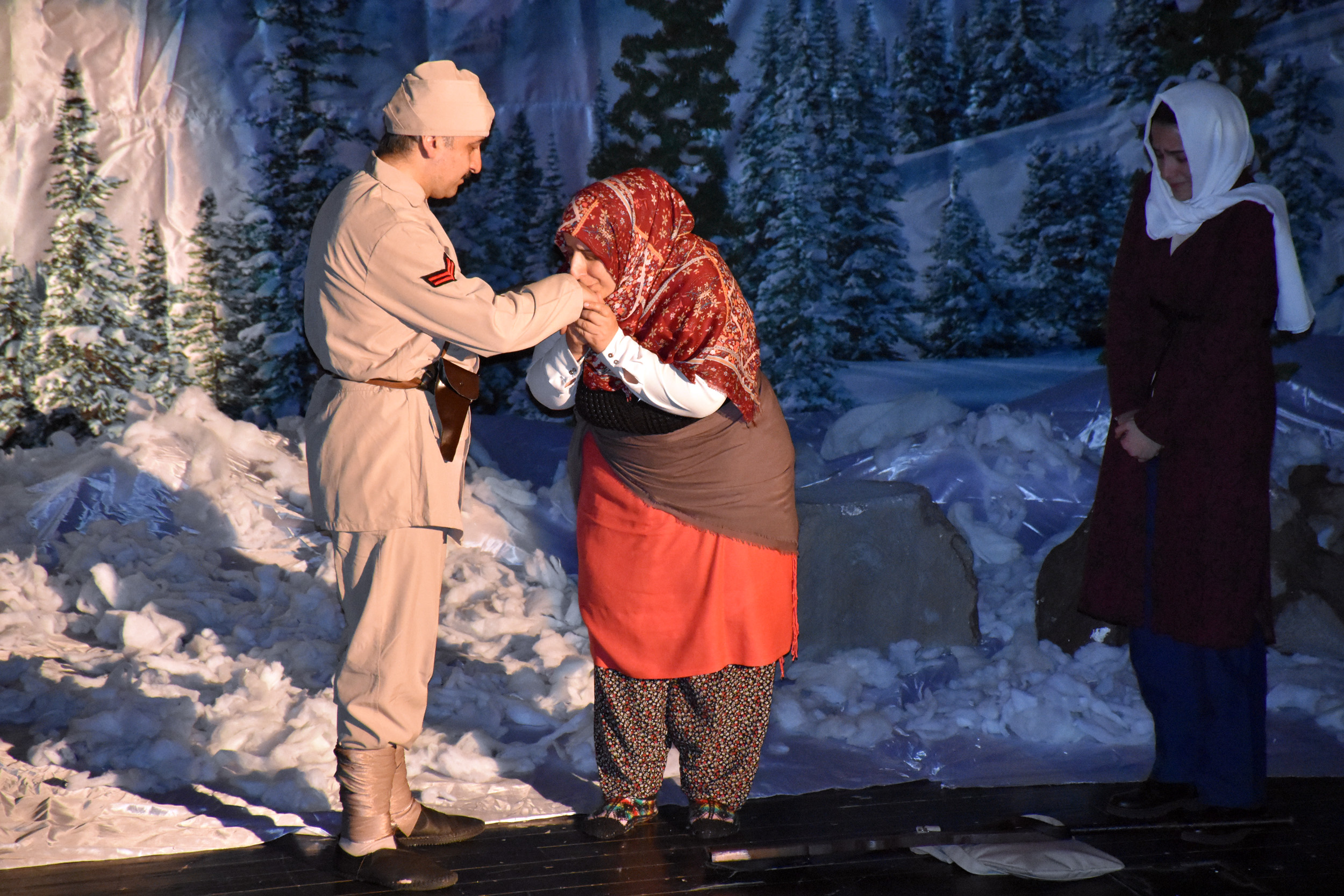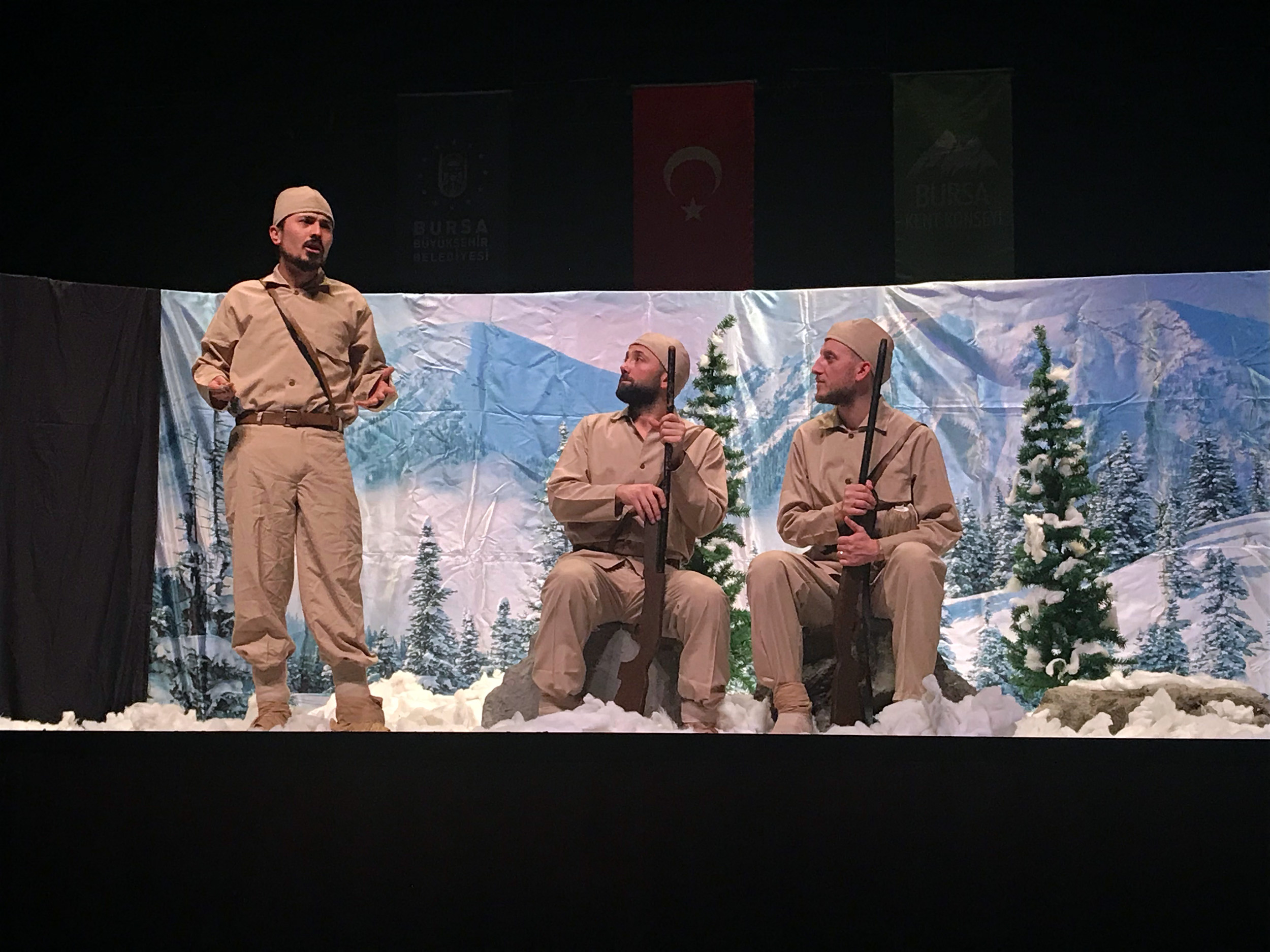 BURSA – Bursa Kent Konseyi ile Seyrü Keyf Şehir ve Sanat Tiyatrosu işbirliğiyle düzenlenen Soğuk Cennet ‘Sarıkamış’ adlı tiyatro oyunu, izleyicilere duygusal anlar yaşattı.