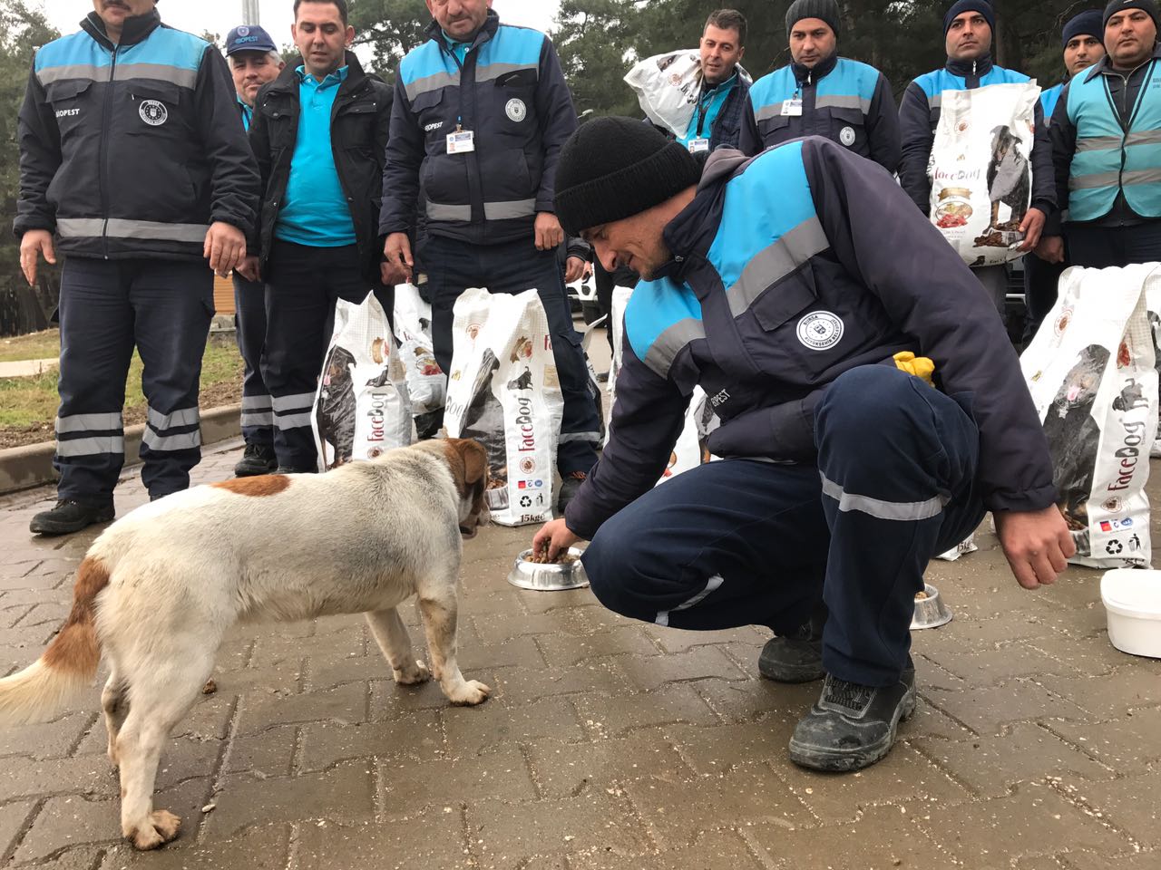 BURSA - Büyükşehir Belediyesi Veteriner İşleri Şube Müdürlüğü tarafından kar yağışı ve soğuk hava yüzünden yiyecek bulmakta zorlanan sokak hayvanları için 10 ayrı ekiple 5 ton yem dağıttı. Arazide yapılan yem dağıtımının yanında hayvan sever derneklerine de toplam 20 ton yem dağıtımı yapıldı.