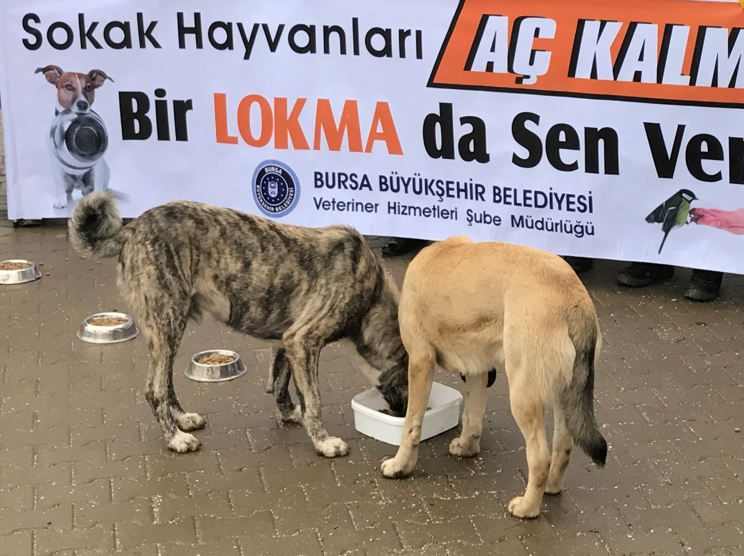 Şehrin muhtelif yerlerinde toplu halde bulunan olan sokak hayvanları için arazide yapılan yem dağıtımının yanı sıra hayvanseverlerin de beslediği sokak hayvanlarının bulunduğu noktalara hayvan yemi bırakılarak hayvanların besin alımı sağlandı. Kış mevsiminde hava şartlarının en yoğun etkilediği sokak hayvanlarına en büyük destek Bursa Büyükşehir Belediyesi’nden geldi. Bursa Büyükşehir Belediyesi Veteriner Hizmetleri Şube Müdürlüğü, tüm ilçelerde görevlendiği 8 ayrı ekiple, sokak hayvanlarının yoğun olduğu bölgelere 4 ton yem dağıttı.