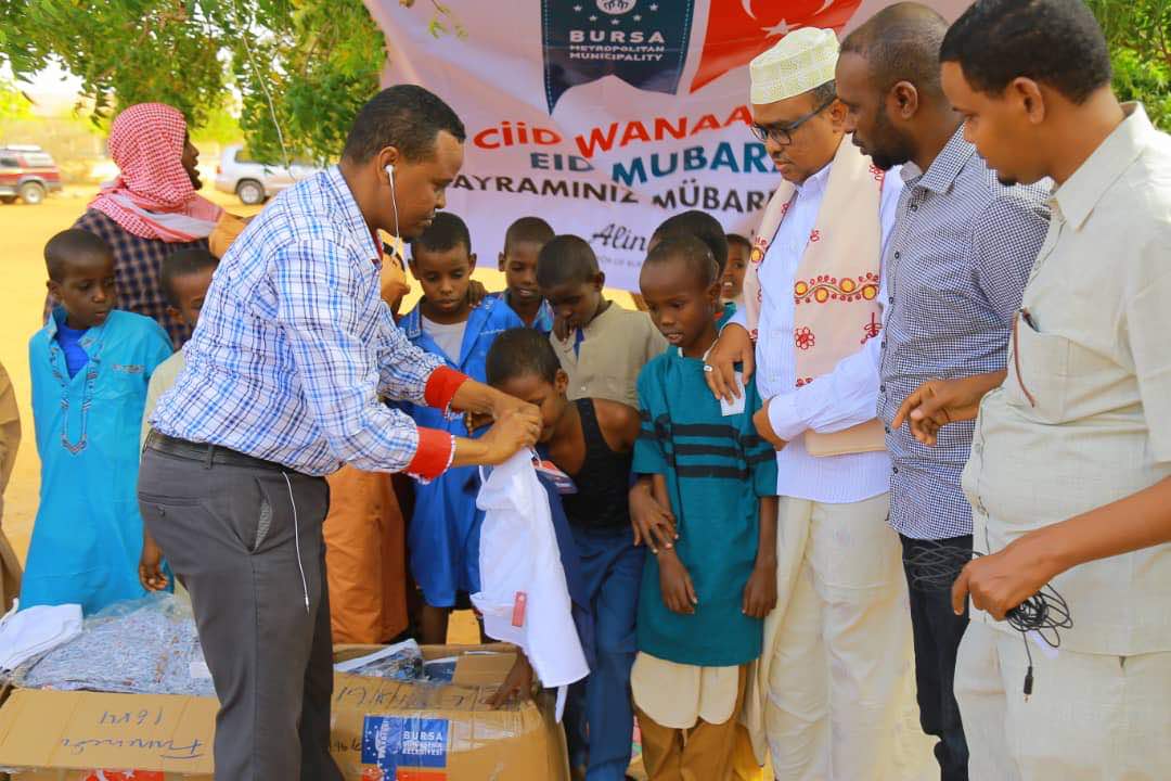 Bursa Büyükşehir Belediyesi ile Bebe Çocuk Konfeksiyon Sektörü Sanayici ve İşadamları Derneği (BEKSİAD) işbirliğiyle, Somali’deki kardeş şehir Galkayo’daki yetim çocuklara bayramlık kıyafet yardımı yapıldı. Somali’nin Puntlan Eyaleti’nde bulunan Galkayo şehrindeki yetim çocukların bayramlıkları Bursa’dan gönderildi.