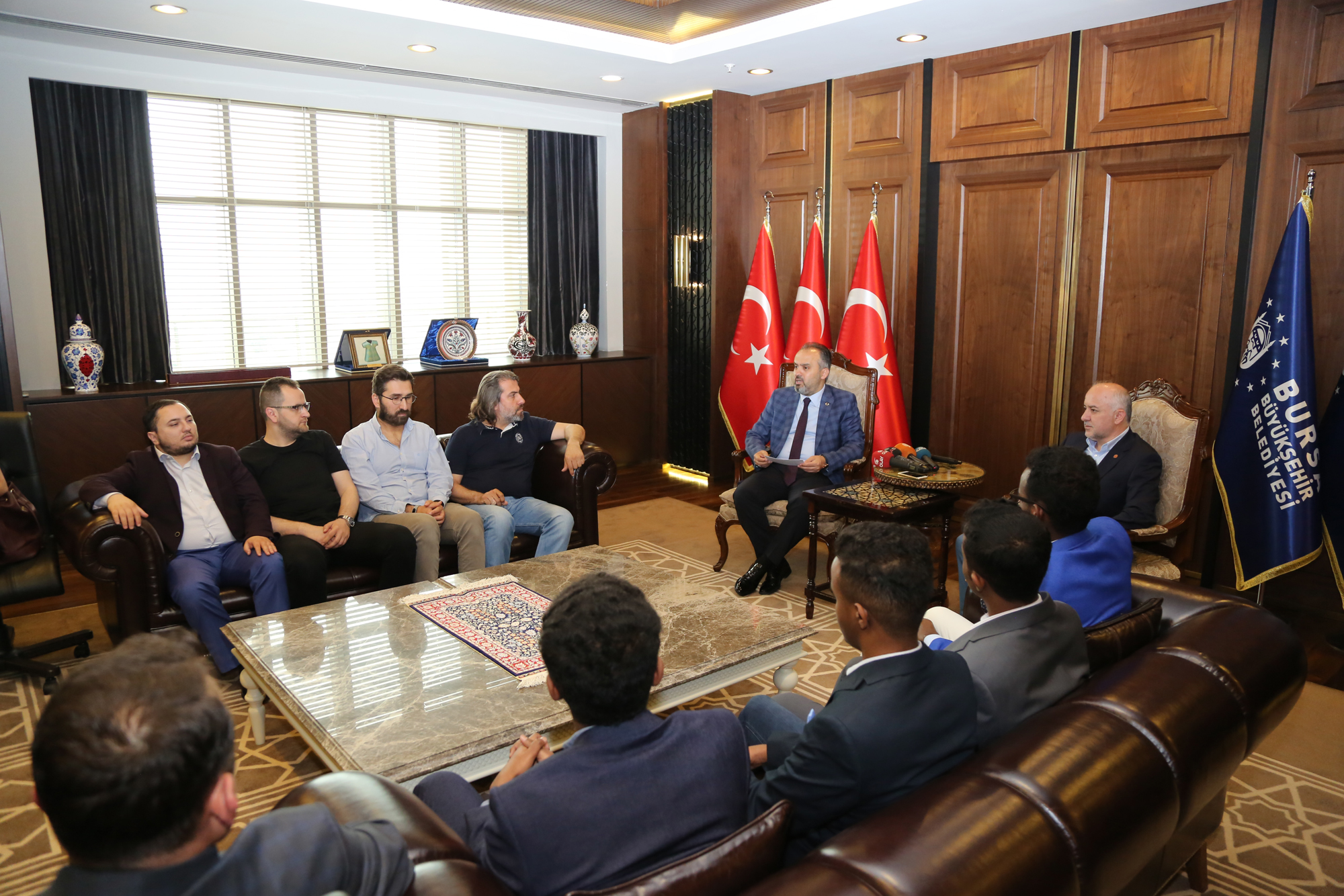 Devamı...Farklı ülkelerden ve Bursa’nın dört bir yanından gelen çocuklar, Bursa Büyükşehir Belediyesi Başkan Vekili Şahin Biba ve meclis üyelerinin koltukla...