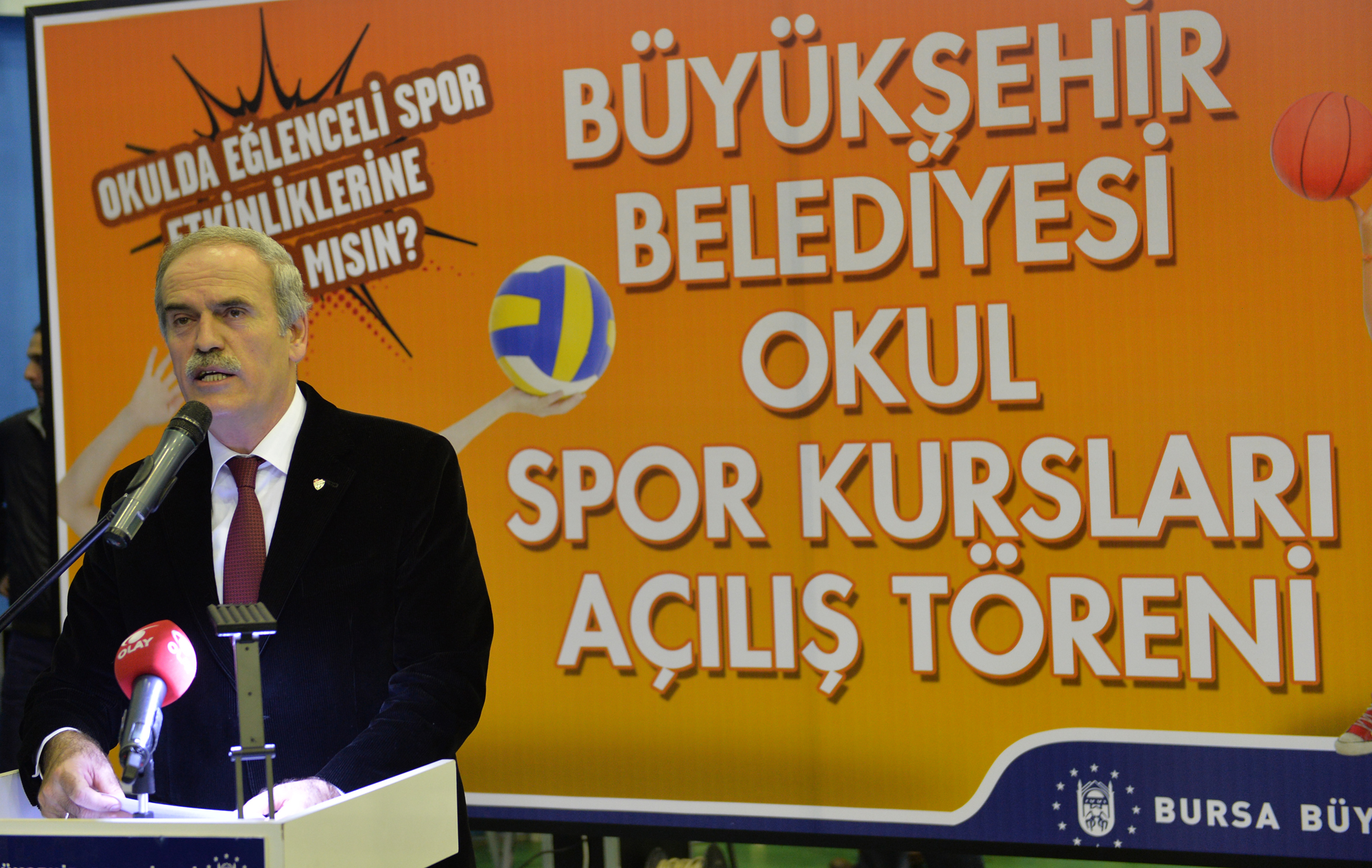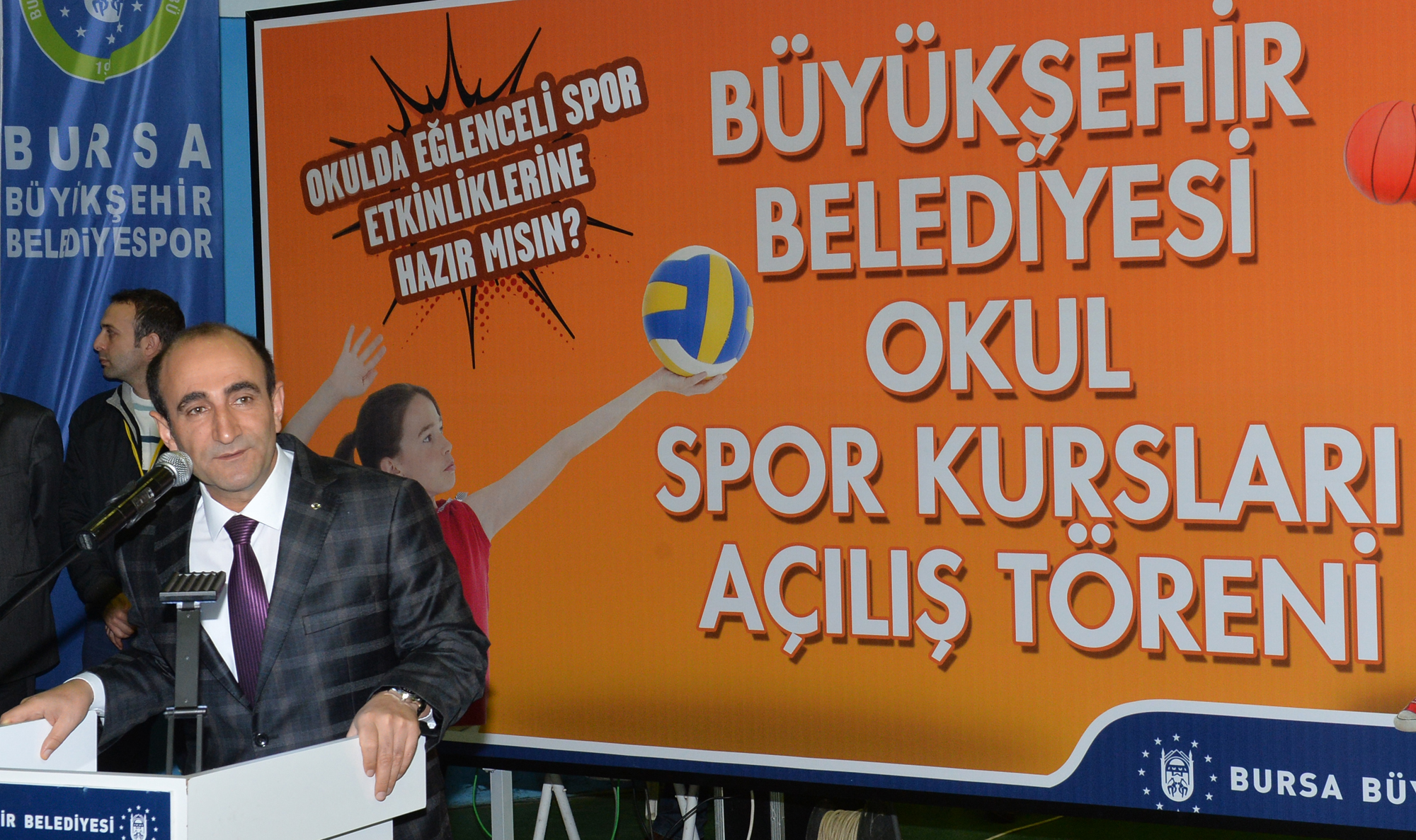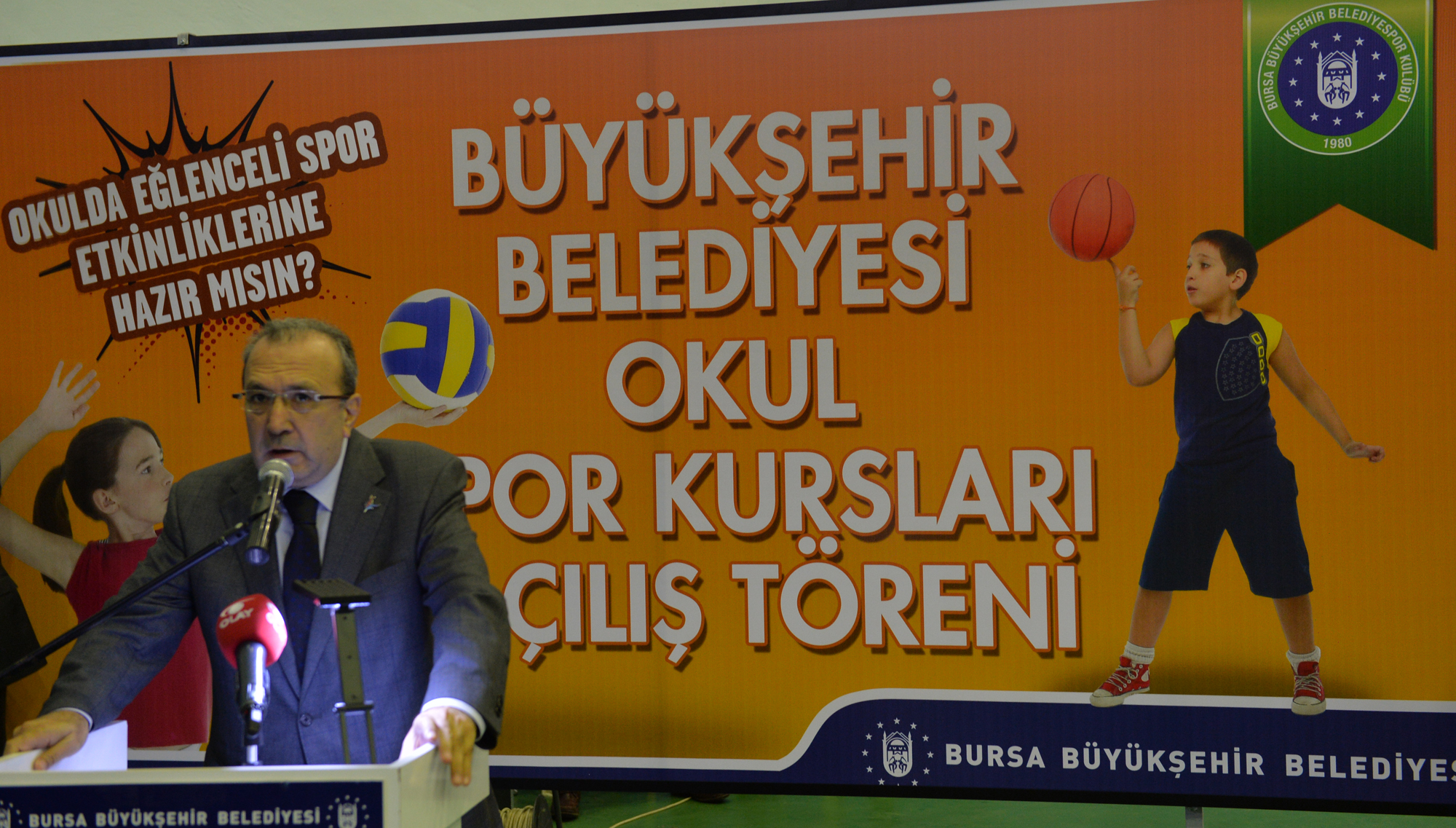BURSA - Bursa Büyükşehir Belediyesi’nin İl Milli Eğitim Müdürlüğü işbirliğiyle düzenlendiği Okul Spor Kursları, Yıldırım’daki Şehit Piyade Er Rahim Keskin Ortaokulu’nda düzenlenen törenle başladı. Büyükşehir Belediye Başkanı Recep Altepe, 22 okulda başlatılan kursların tüm il geneline yayılacağını, böylelikle 17 ilçede 170 bin öğrenciye ulaşmayı hedeflerini söyledi.