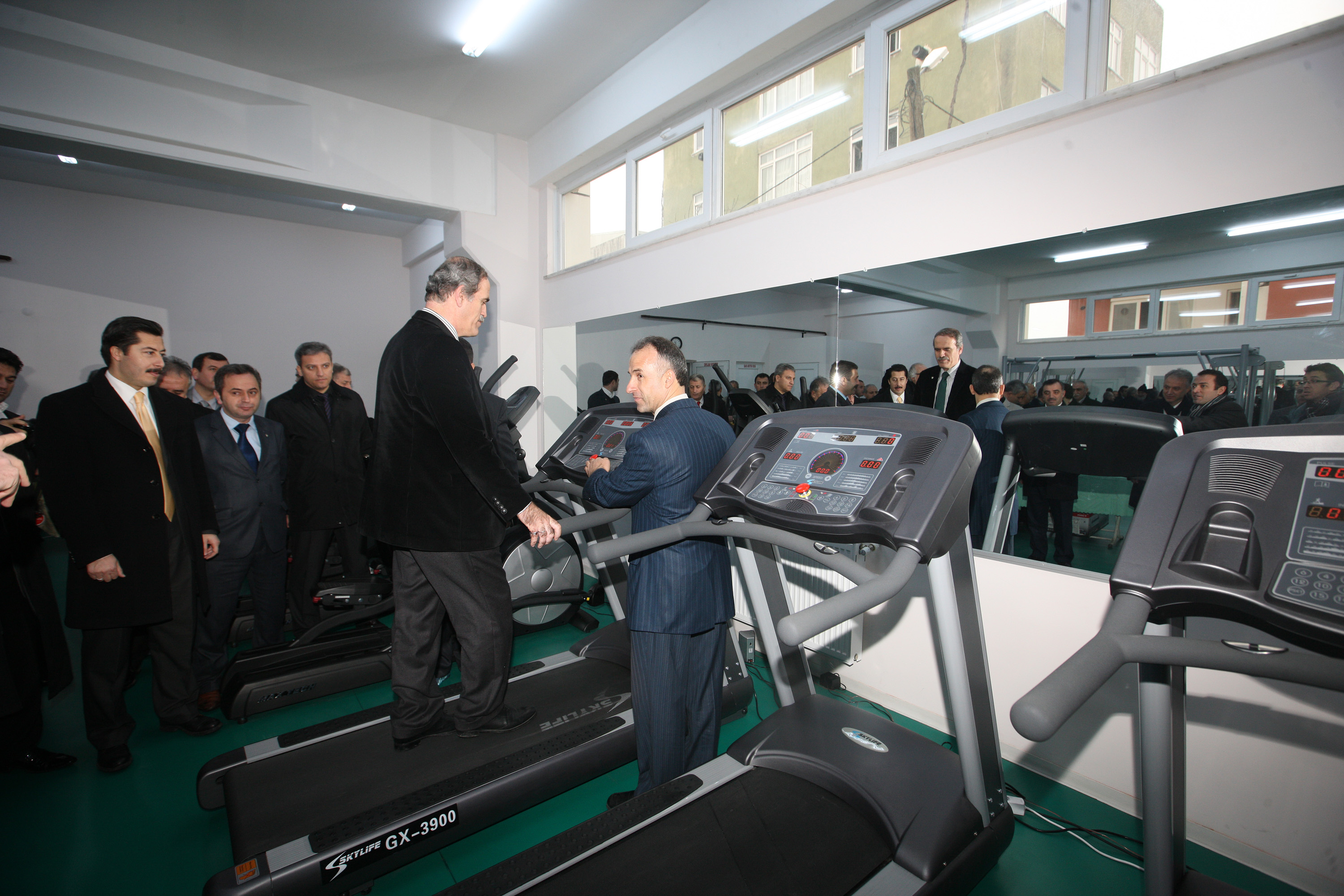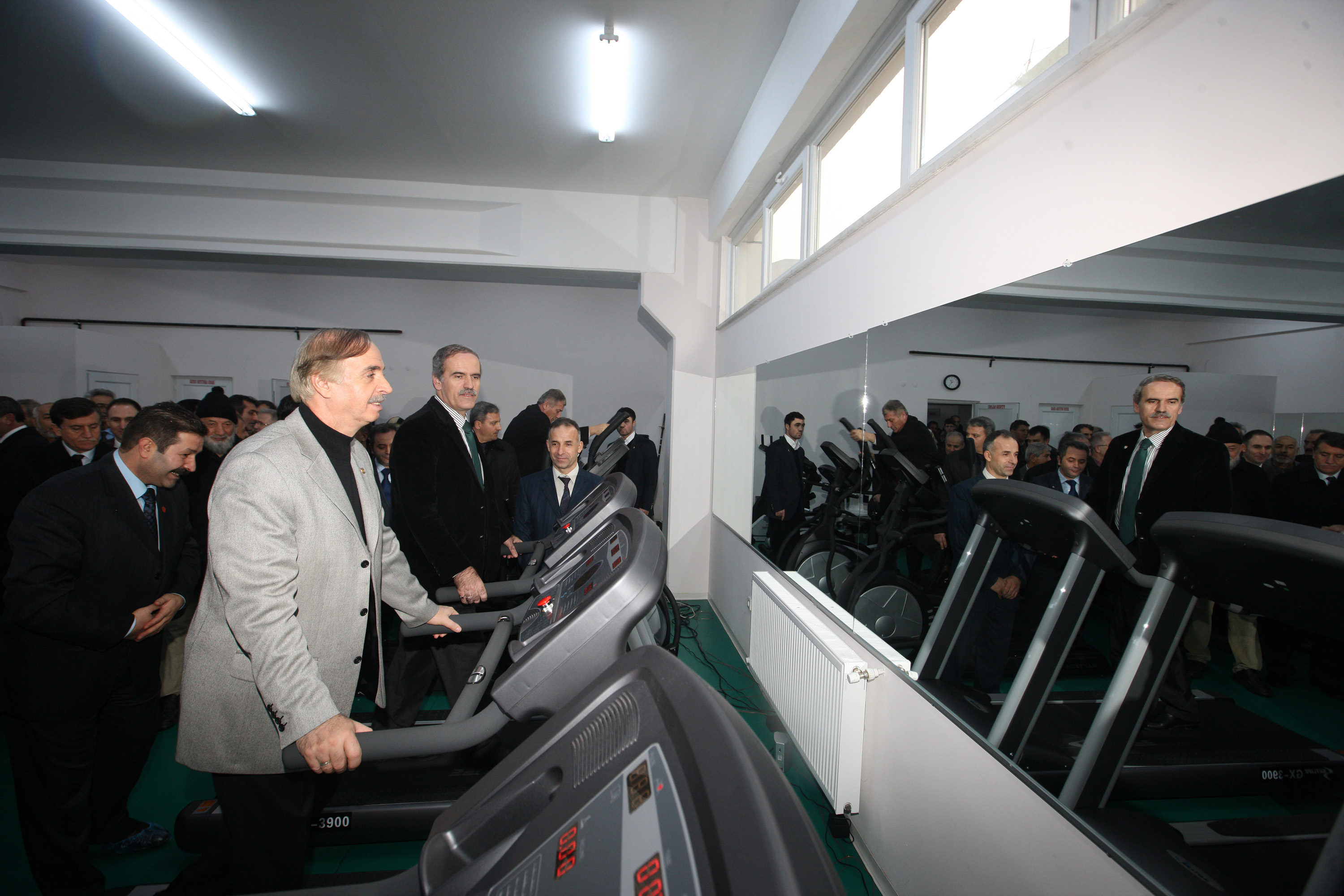 Kurdeleyi keserek tesisleri hizmete açan Başkan Altepe ve Yıldırım Belediye Başkanı Özgen Keskin önce fitness salonundaki yürüme bandında yürüdü, ardından genç karatecilerin gösterisini izledi.