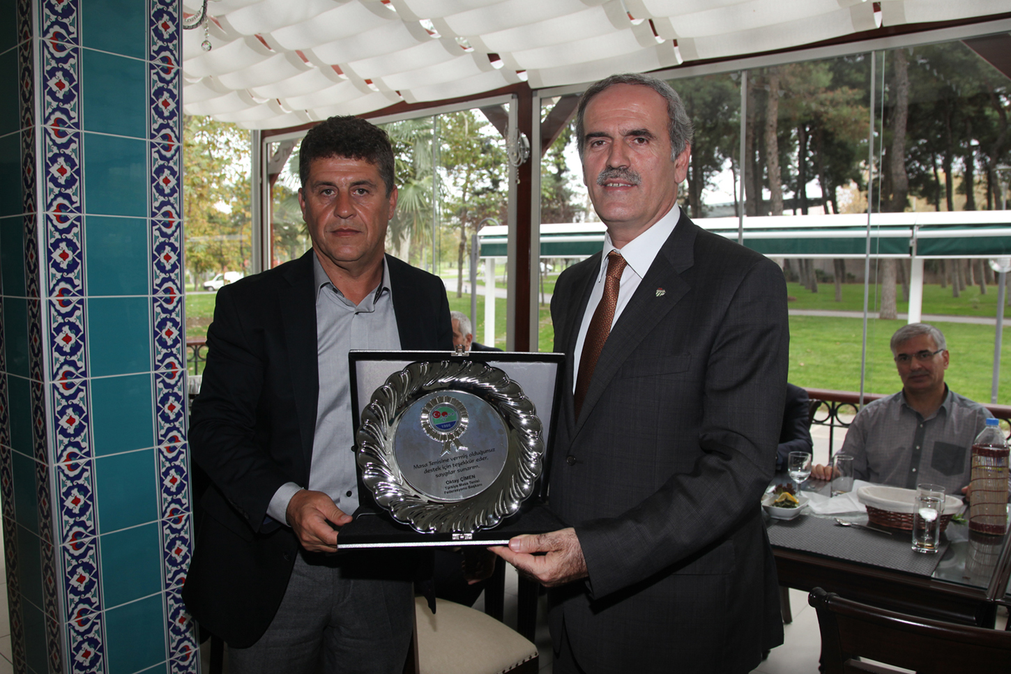 Büyükşehir Belediye Başkanı Recep Altepe, Masa Tenisi Federasyonu Başkanı Oktay Çimen ve yönetim kurulu üyeleriyle Gönül Dostları Sofrası’nda bir araya geldi. Federasyon Başkanı Çimen, Bursa’da sportif çalışmaların yakın takipçisi olduklarını belirterek, spora ve sporcuya destek veren Büyükşehir Belediye Başkanı Recep Altepe’yi tebrik ederek, federasyon adına plaket takdim etti.