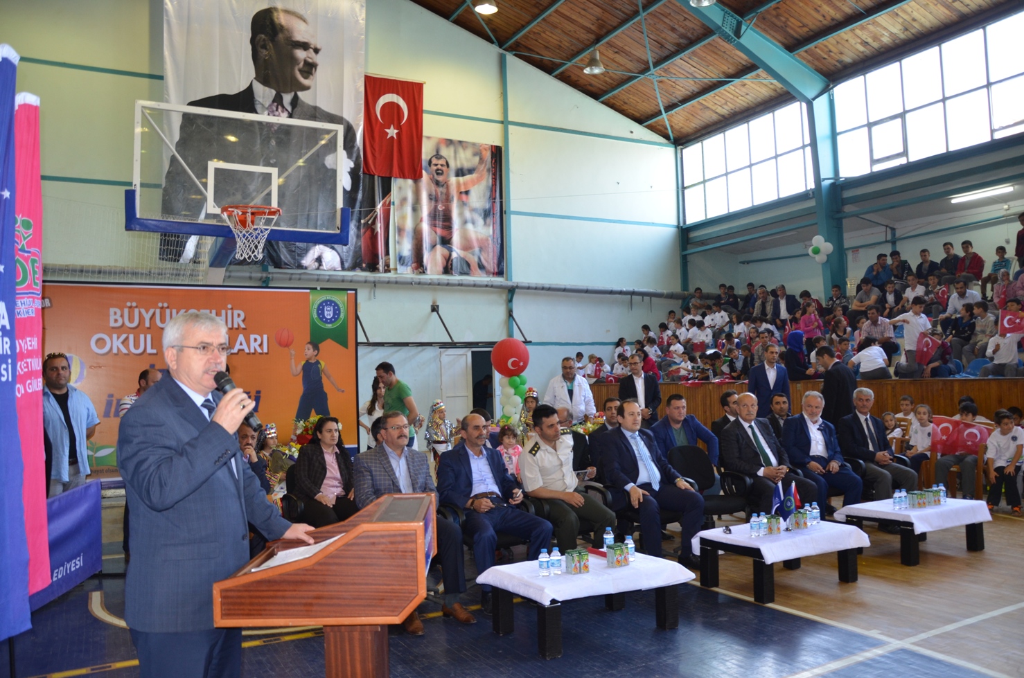 Okullarımıza spor salonlarından spor malzemelerine kadar her türlü desteğe devam ediyoruz. Geleceğimizi temsil eden çocuklarımızın daha çok üretken ve sağlıklı yaşam kalitesine ulaşması için çalışıyoruz” diye konuştu.