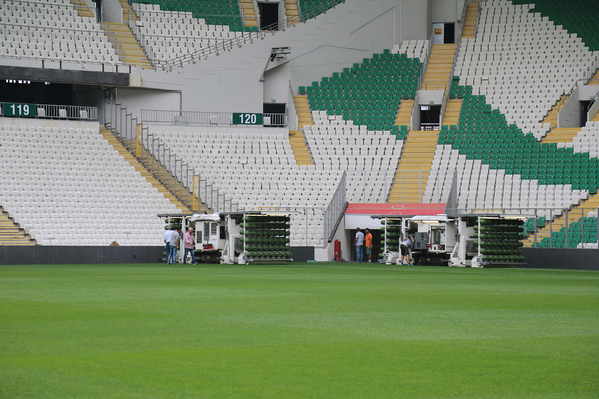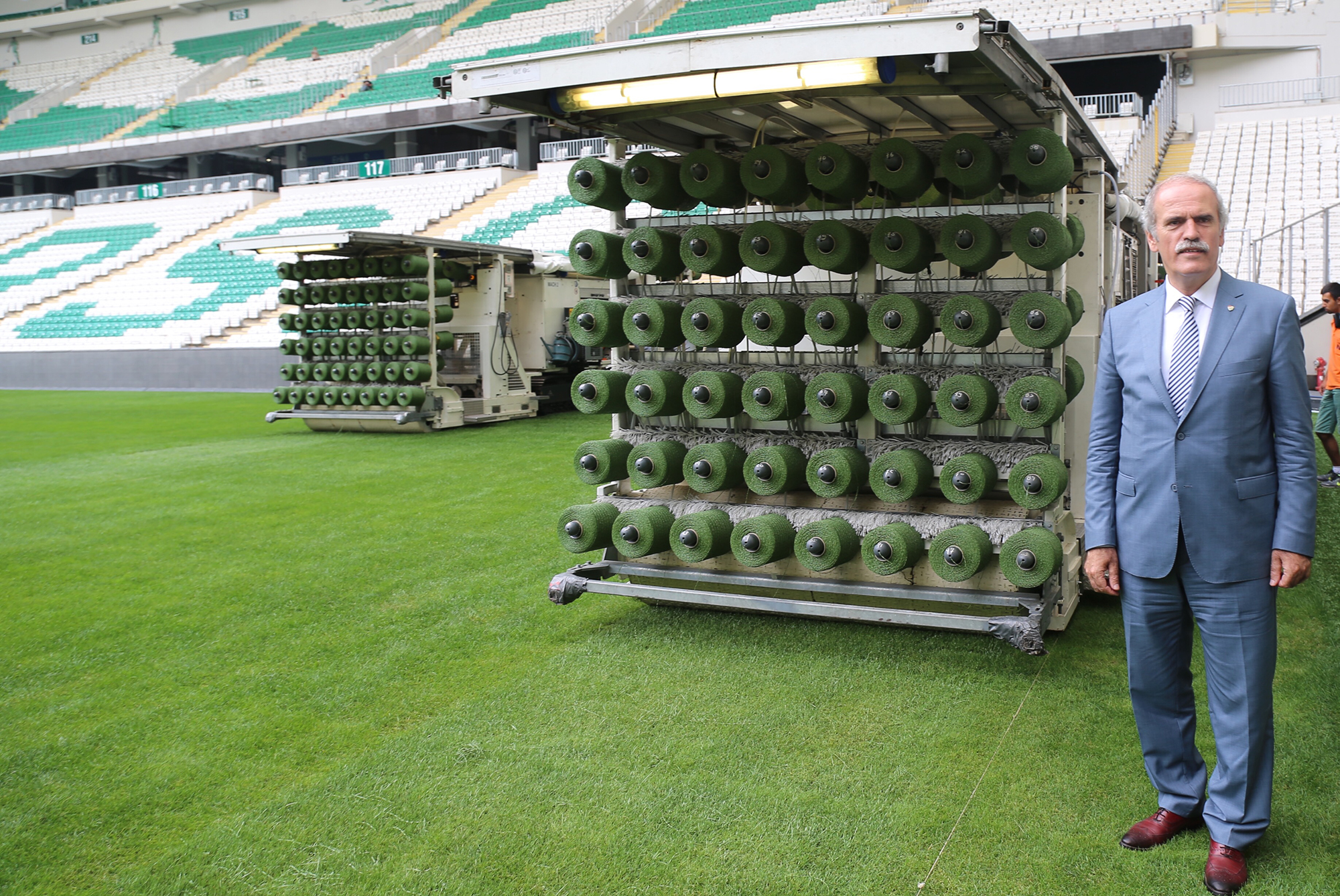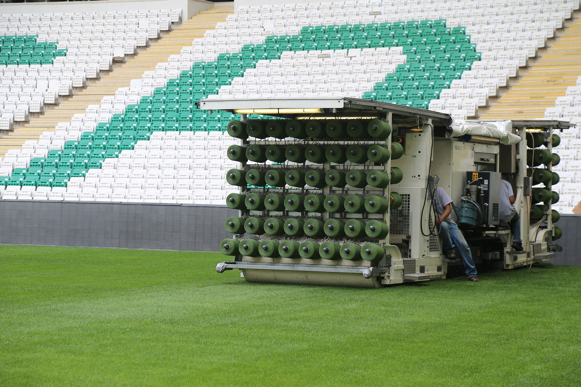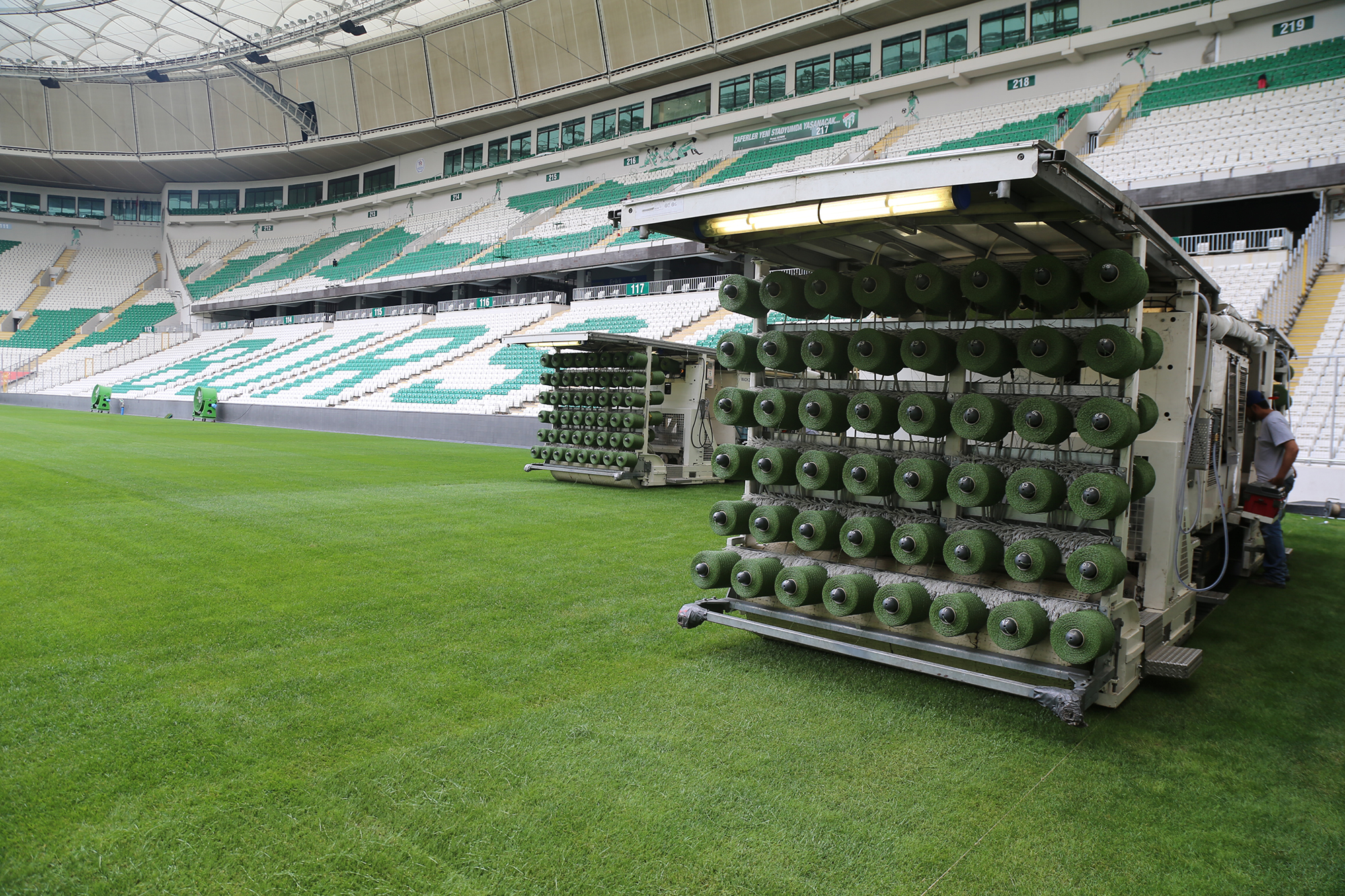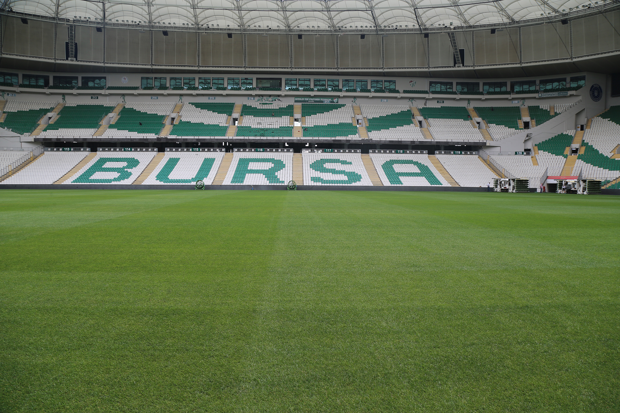 - BURSA BÜYÜKŞEHİR BELEDİYESİ TARAFINDAN KENTE KAZANDIRILAN VE MİMARİSİ İLE DÜNYANIN HEYECAN VERİCİ 10 STADYUMU ARASINDA GÖSTERİLEN BÜYÜKŞEHİR STADYUMUNUN YENİLENEN ZEMİNİNE HİBRİT ÇİMLER EKİLİYOR.