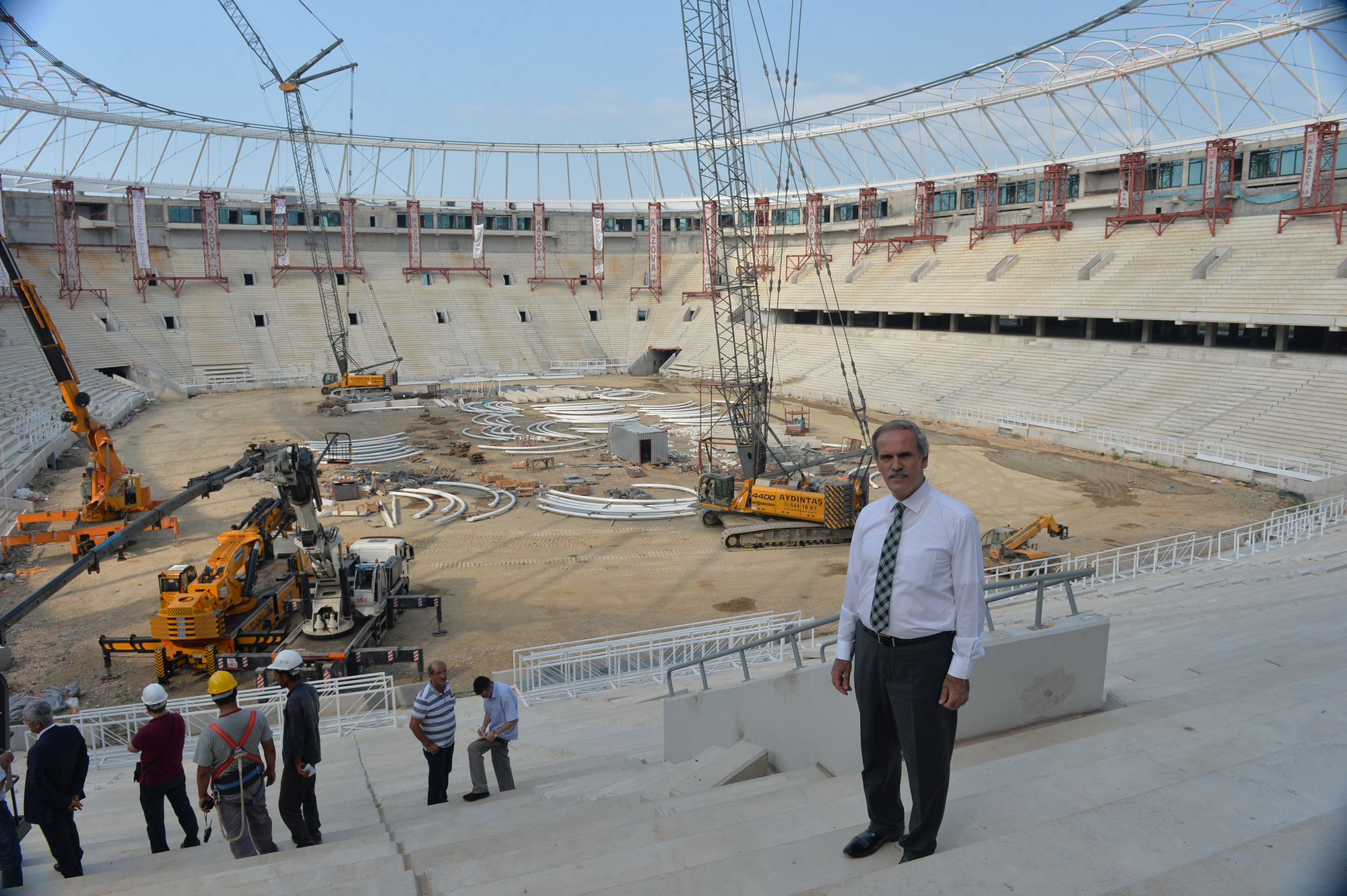 - BÜYÜKŞEHİR BELEDİYE BAŞKANI RECEP ALTEPE, ÇATIDAKİ YEŞİL- BEYAZ ÖRTÜNÜN KAPLANMASIYLA YENİ STADYUMUN TÜM GÖRSELLİĞİYLE KENT SİLUETİNDEKİ YERİNİ ALACAĞINI SÖYLEDİ.