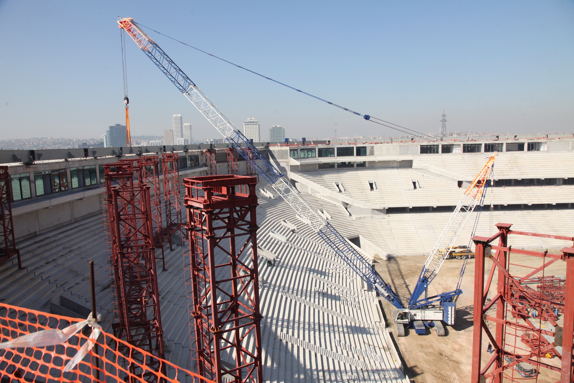 - BURSA BÜYÜKŞEHİR BELEDİYESİ TARAFINDAN YAPTIRILAN VE PROJESİ DÜNYANIN EN İYİLERİ ARASINDA GÖSTERİLEN 45 BİN KİŞİLİK TİMSAH ARENA´NIN ÇATISI, YİNE DÜNYADA İLK KEZ HAREKETLİ BİR MESNETLE OLUŞTURULUYOR.