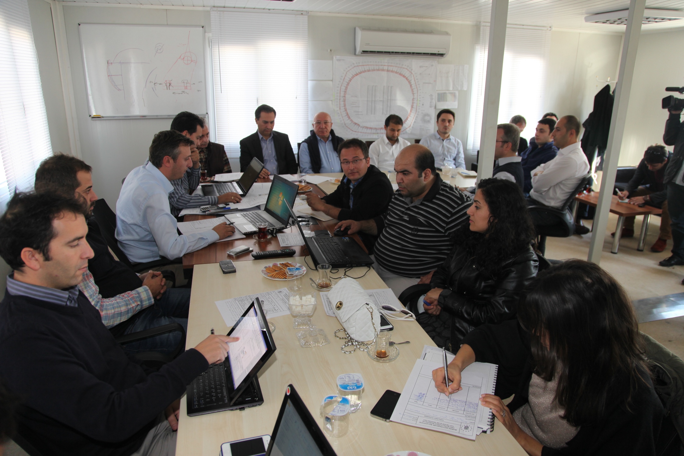 Timsah Arena´nın devam eden inşaat çalışmalarına ilişkin teknik bilgilendirme toplantısı, Büyükşehir Belediyesi Fen İşleri ve Etüt Proje Daire Başkanlığı yetkilileri, yüklenici firma temsilcileri ve parça imalatçılarının katılımıyla stadyumun şantiye alanında yapıldı. Toplantıda, inşaat çalışmaları sürecinde gelinen son nokta ve montaj işlemleri süren çatının durumu görüşüldü.