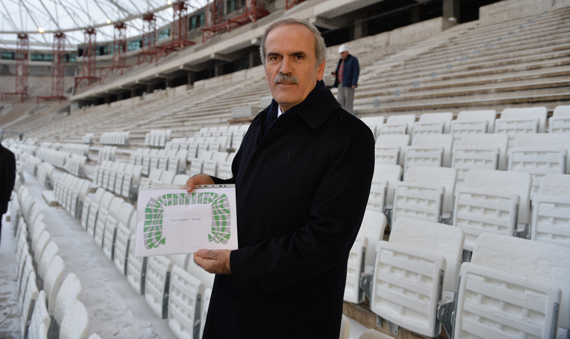 Bursa Büyükşehir Belediyesi tarafından yaptırılarak kente kazandırılan ve ‘Avrupa Gayrimenkul Ödülleri’ yarışmasında ‘kamusal yapılar’ kategorisinde mimarisiyle ödül kazanan yeni stadyum, Haziran ayında hizmet vermeye başlayacak. Stadyumda soğuk hava ve kar yağışına rağmen çalışmalar hızla devam ediyor. Çalışmaları yerinde inceleyen Büyükşehir Belediye Başkanı Recep Altepe, Bursa’ya kazandırılan Büyükşehir Belediyesi Stadyumu’nda inşaat çalışmalarının son aşamaya geldiğini söyledi. Başkan Altepe, yeni stadyumun Haziran ayında açılmasını hedeflediklerini söyleyerek, “Bursa’ya eserler kazandırmak bize heyecan veriyor. Stadyumu da bir an önce kente kazandırmak için soğuk havaya rağmen çalışmalarımızı aralıksız sürdürüyoruz” dedi. Stadyumun sahası, tribünleri, salonları ve kafeteryalarıyla tam anlamıyla yaşayan bir mekan olacağını belirten Başkan Altepe, “Dünyanın dikkatini çeken yeni stadyumda, koltuk ihalesi yapıldı ve koltuk montajına da başlandı. Bursa adının yazacağı koltuklar, VIP, basın, misafir locaları, engelli koltukları ile taraftar ve konuk takım için olmak üzere 2 ayrı tipte hazırlanıyor. Koltukların da kaliteli malzemeden yapılmasına dikkat edildi. Koltuklar, toplamda yaklaşık 6 milyona mal olacak” diye konuştu.
