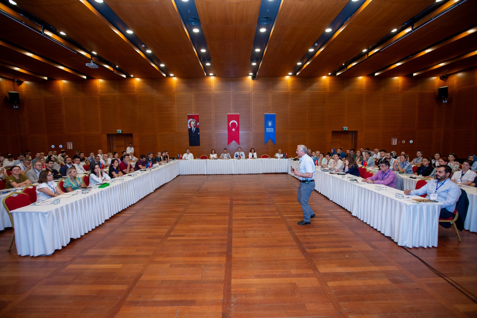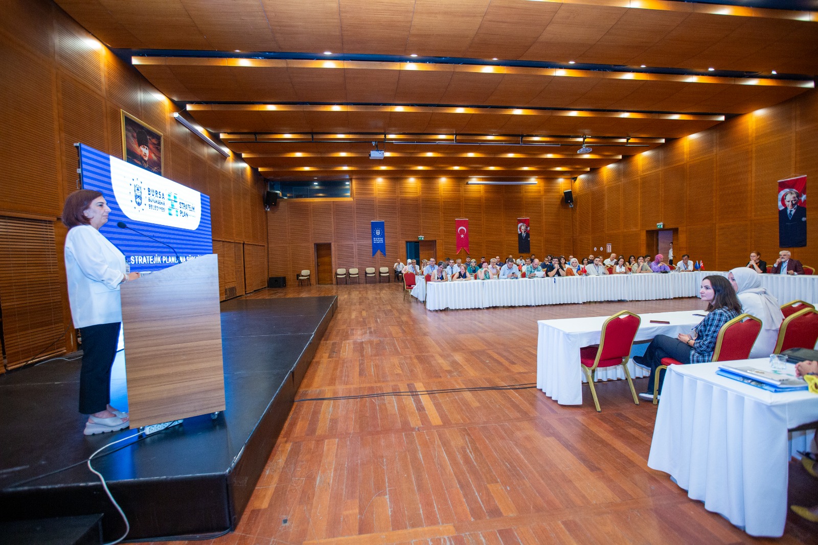 Bursa Büyükşehir Belediye Başkanı Mustafa Bozbey’in 17 ilçeyi ziyaret ederek başlattığı Bursa’nın 2025-2029 stratejik plan çalışmaları, tüm hızıyla sürüyor. 9 Temmuz Salı günü Merinos Atatürk Kongre Kültür Merkezi'nde tüm gün süren dış paydaş toplantılarında, kamu kurumlarından ilçe belediyelerine, sivil toplum kuruluşlarından Büyükşehir Belediyesi birimlerine kadar toplumun tüm kesimlerinden katılımcılar yer aldı. Toplantıda konuşan Strateji Geliştirme Dairesi Başkanı Derya Özgök tarafından bugüne kadar yapılan çalışmalar özetlenerek bundan sonra yapılması planlanan çalışmalar hakkında bilgi verildi.