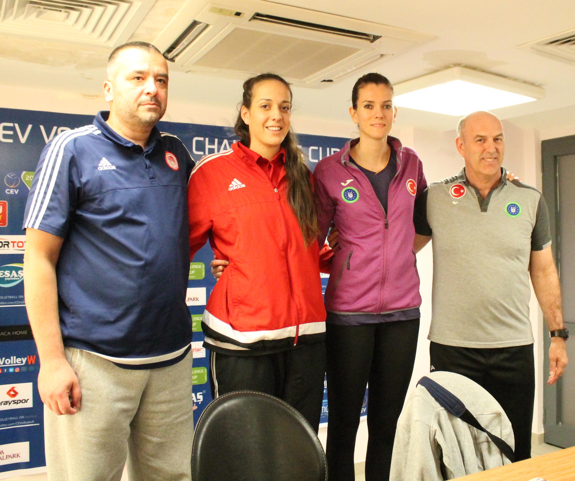 - Bursa Büyükşehir Belediyespor ve Olympiakos takımlarının baş antrenör ve takım kaptanları basın mensuplarıyla bir araya gelerek, iddialı finale hazır olduklarını söyledi.