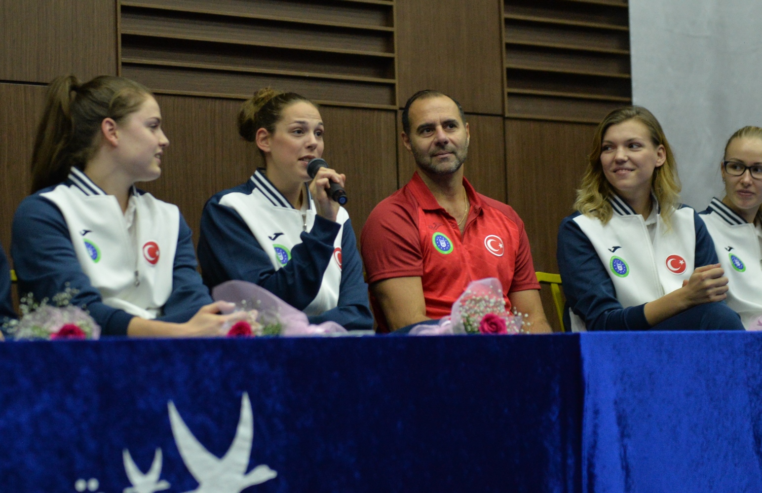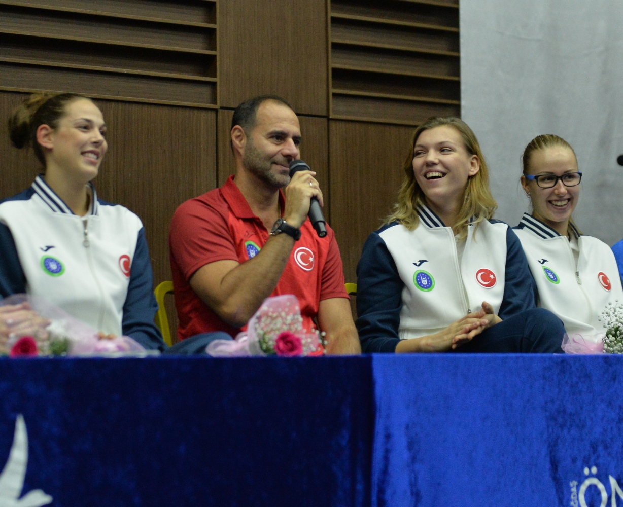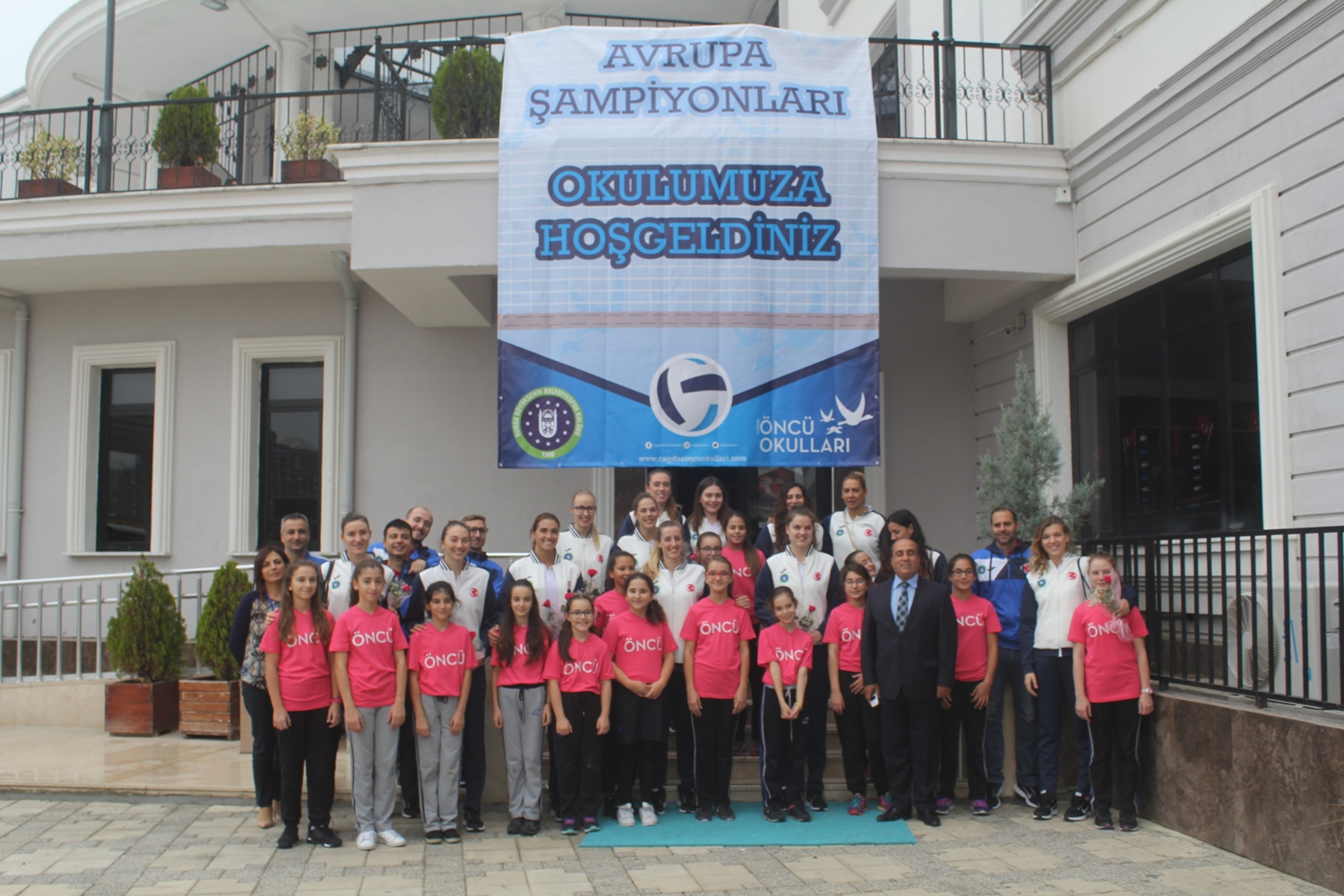 Okul girişinde “Avrupa Şampiyonları, Okulumuza Hoş Geldiniz” yazılı pankart ve çiçeklerle karşılanan sporcu ve teknik heyetin heyecanı gözlerden kaçmadı. Okulun konferans salonuna geçen sultanlar, salonda bekleyen kalabalığın yoğun alkışı ve tezahüratlarıyla karşılaştı.