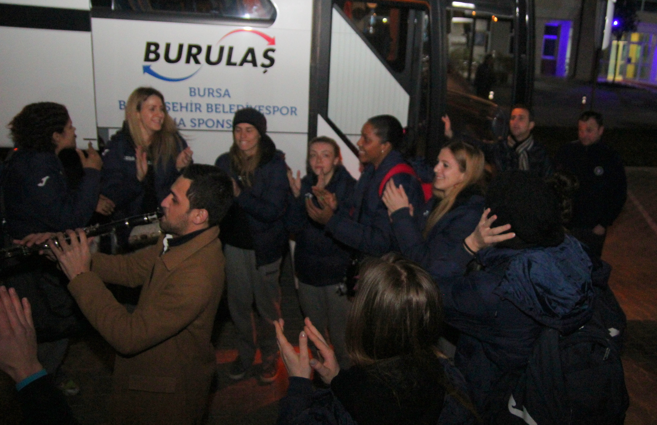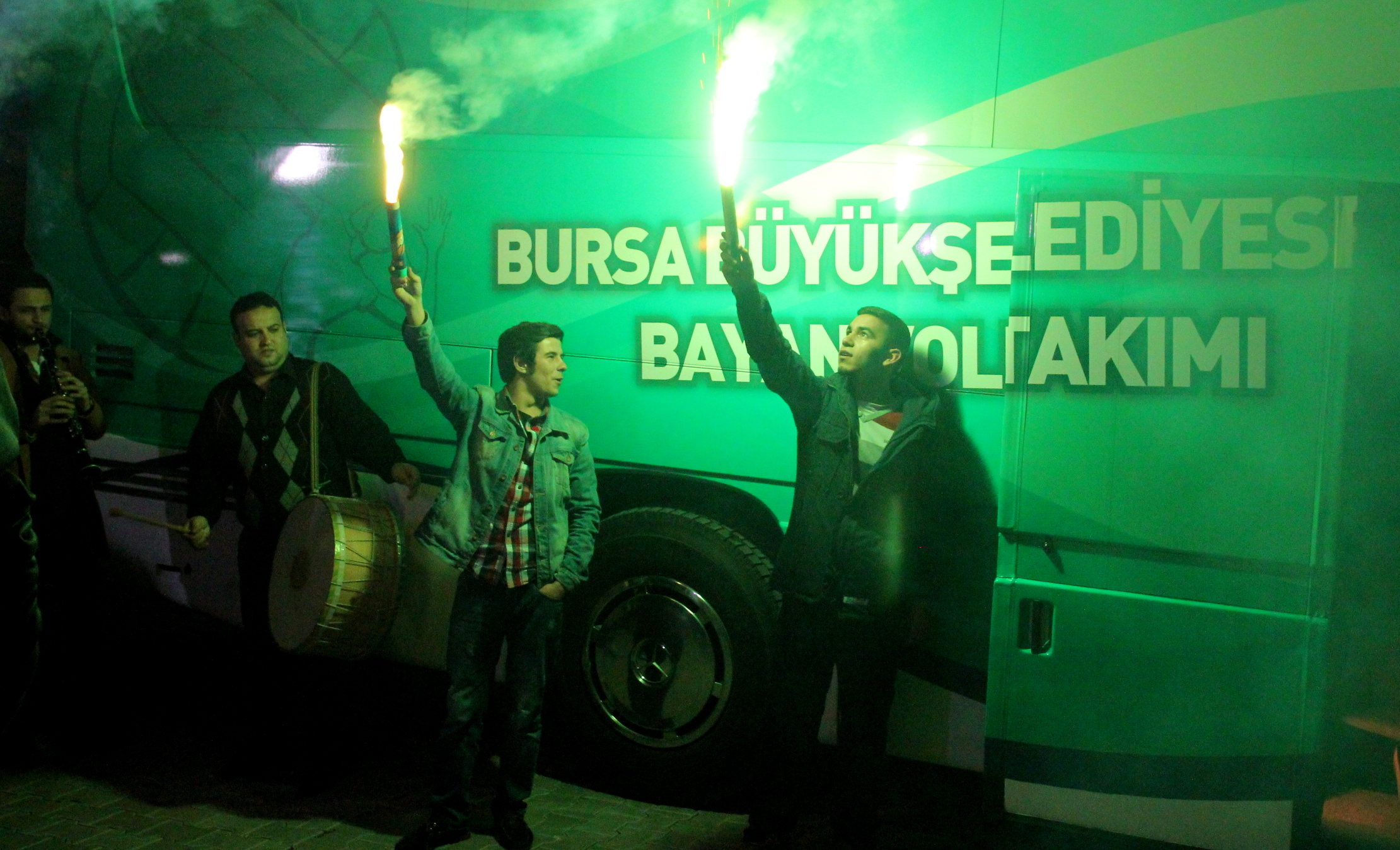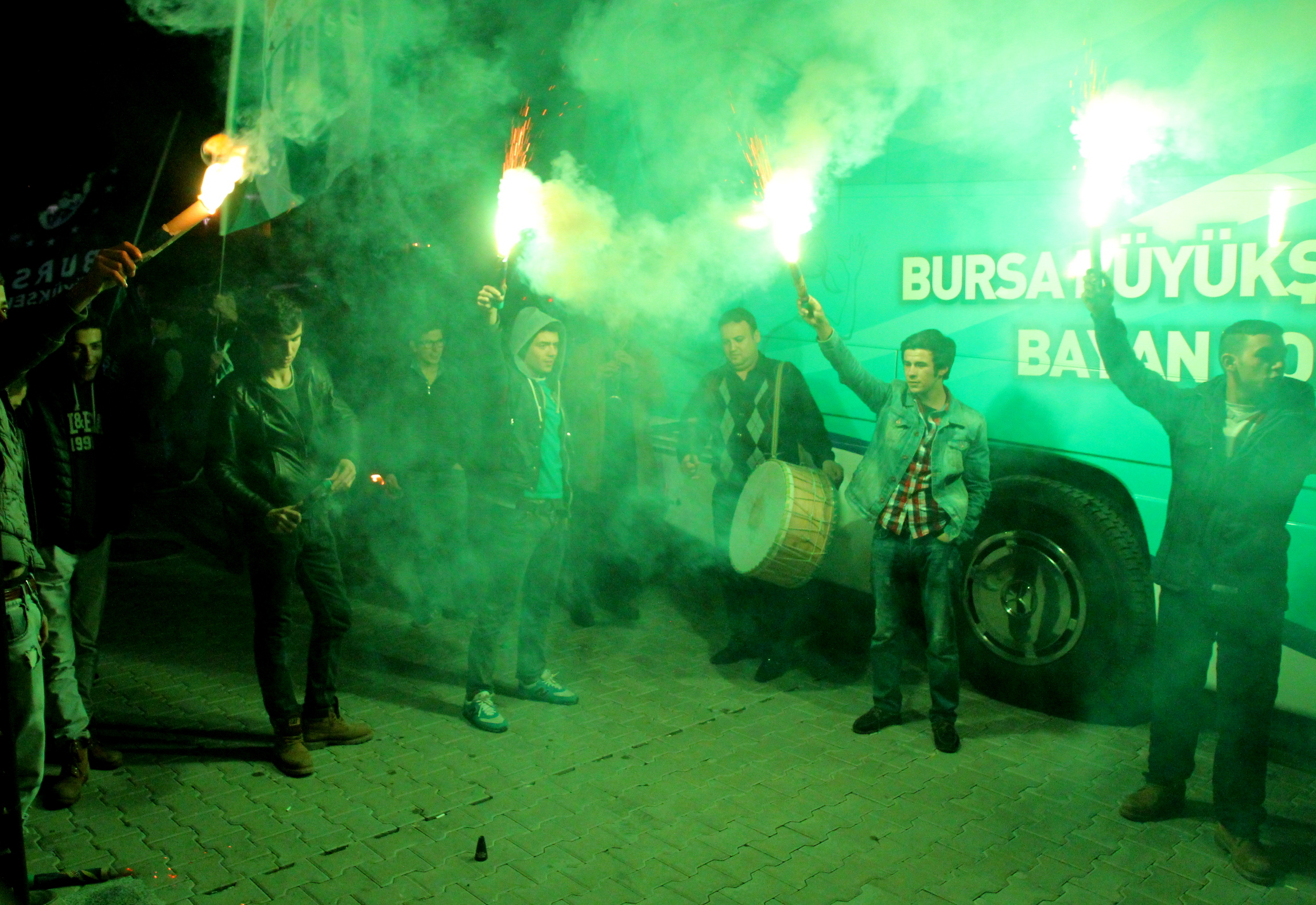 Takım otobüsünün Bursa Büyükşehir Belediyesi Fethiye Spor Kompleksi’ne girdiği anda davul, zurna sesleri ve meşaleler ile takımı karşılayan taraftarlar, sporcuları tek tek kutlayarak çiçek verdi. Oyuncular da uzun süre taraftarlar ile karşılıklı tezahüratlar yaparak, davul zurna eşliğinde karşılıklı şarkı söyleyerek galibiyeti kutladı.