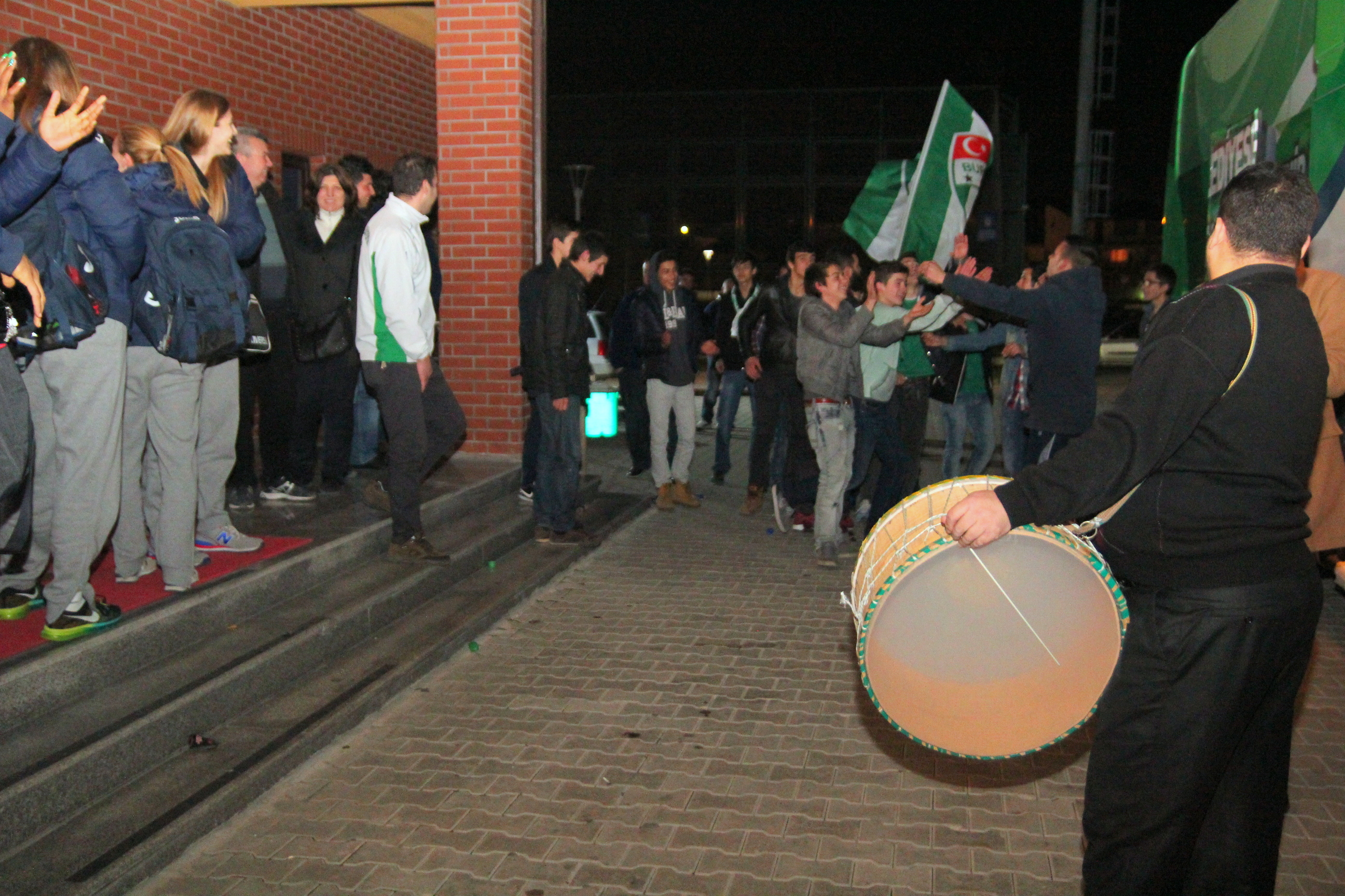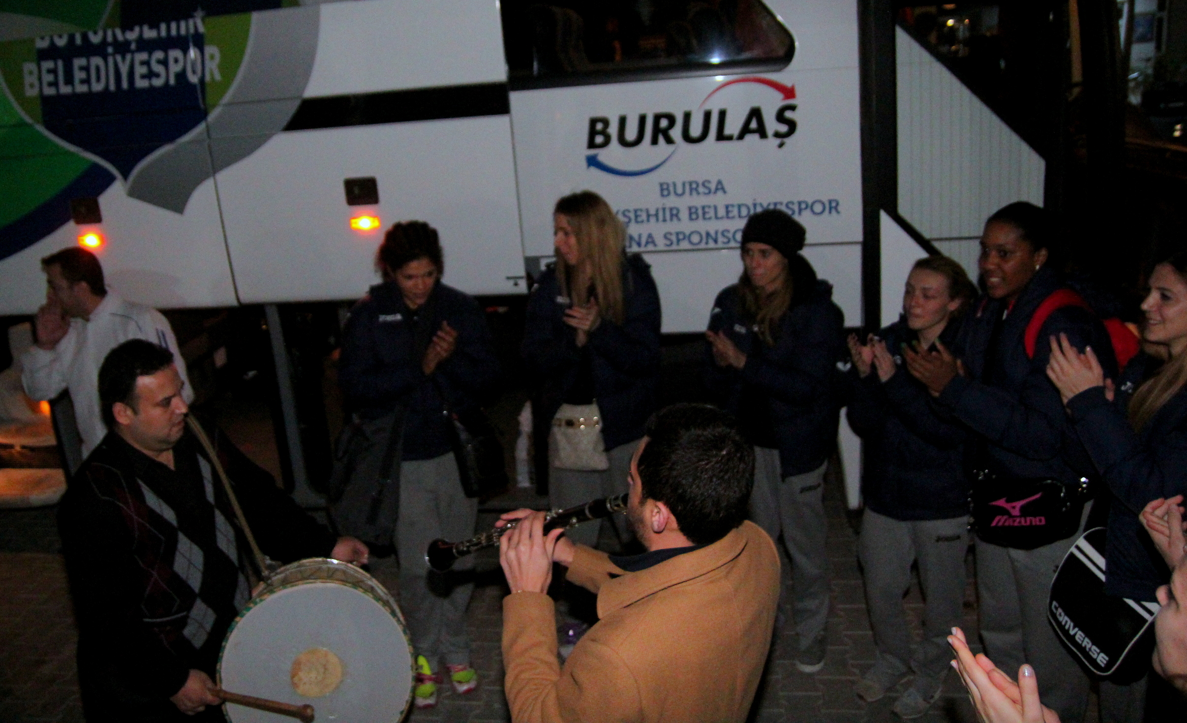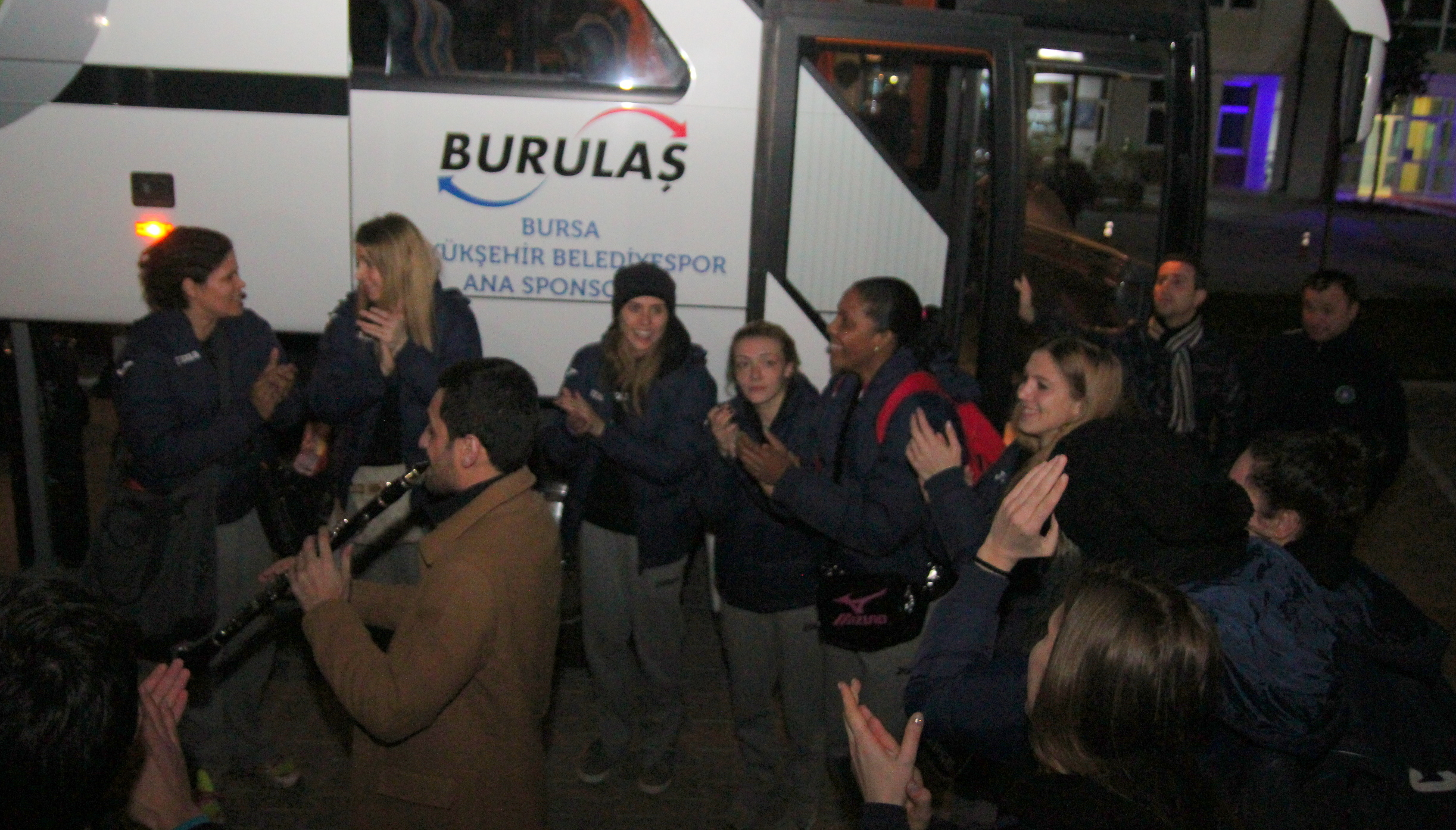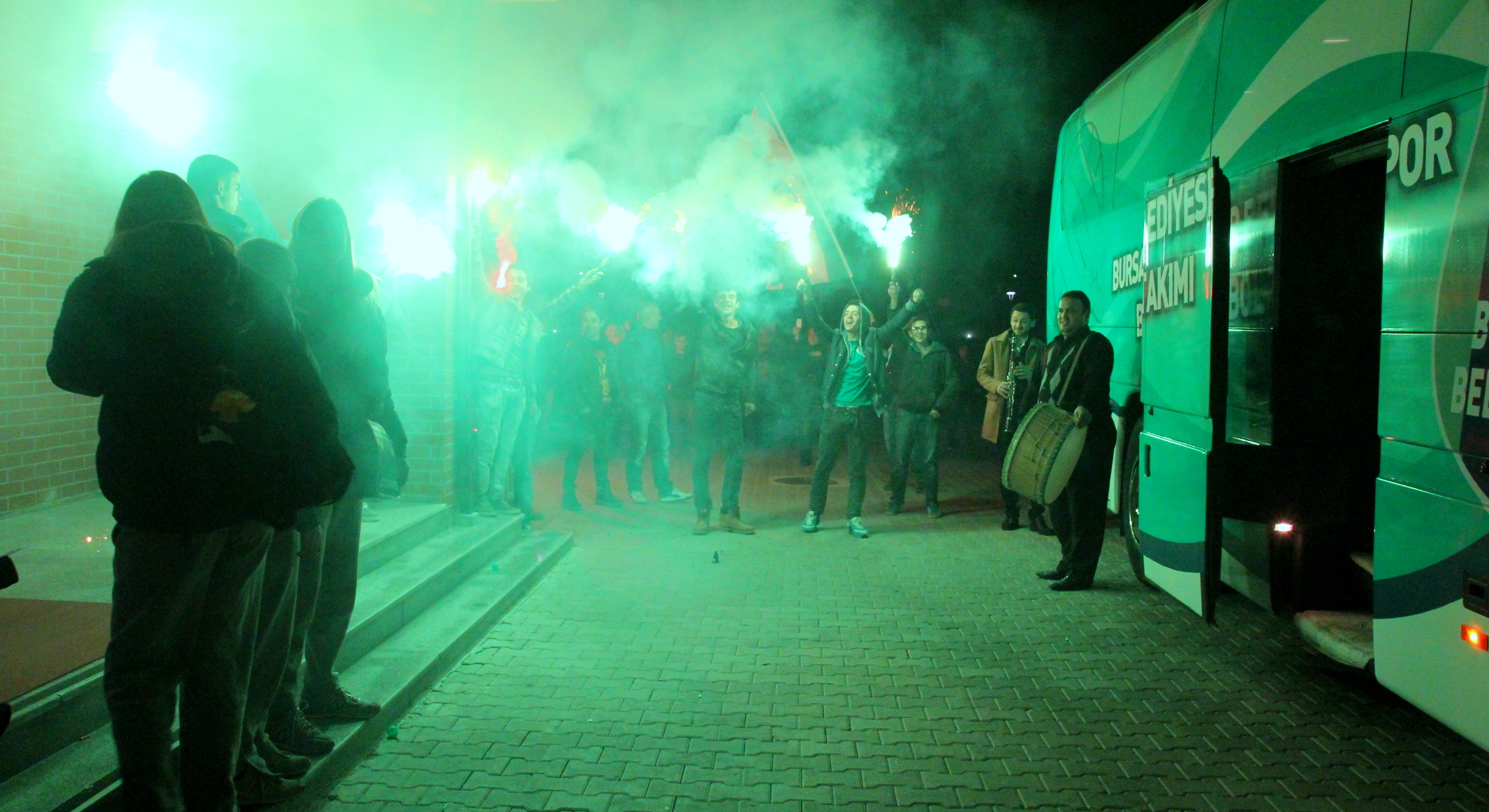 Takım otobüsünün Bursa Büyükşehir Belediyesi Fethiye Spor Kompleksi’ne girdiği anda davul, zurna sesleri ve meşaleler ile takımı karşılayan taraftarlar, sporcuları tek tek kutlayarak çiçek verdi. Oyuncular da uzun süre taraftarlar ile karşılıklı tezahüratlar yaparak, davul zurna eşliğinde karşılıklı şarkı söyleyerek galibiyeti kutladı.