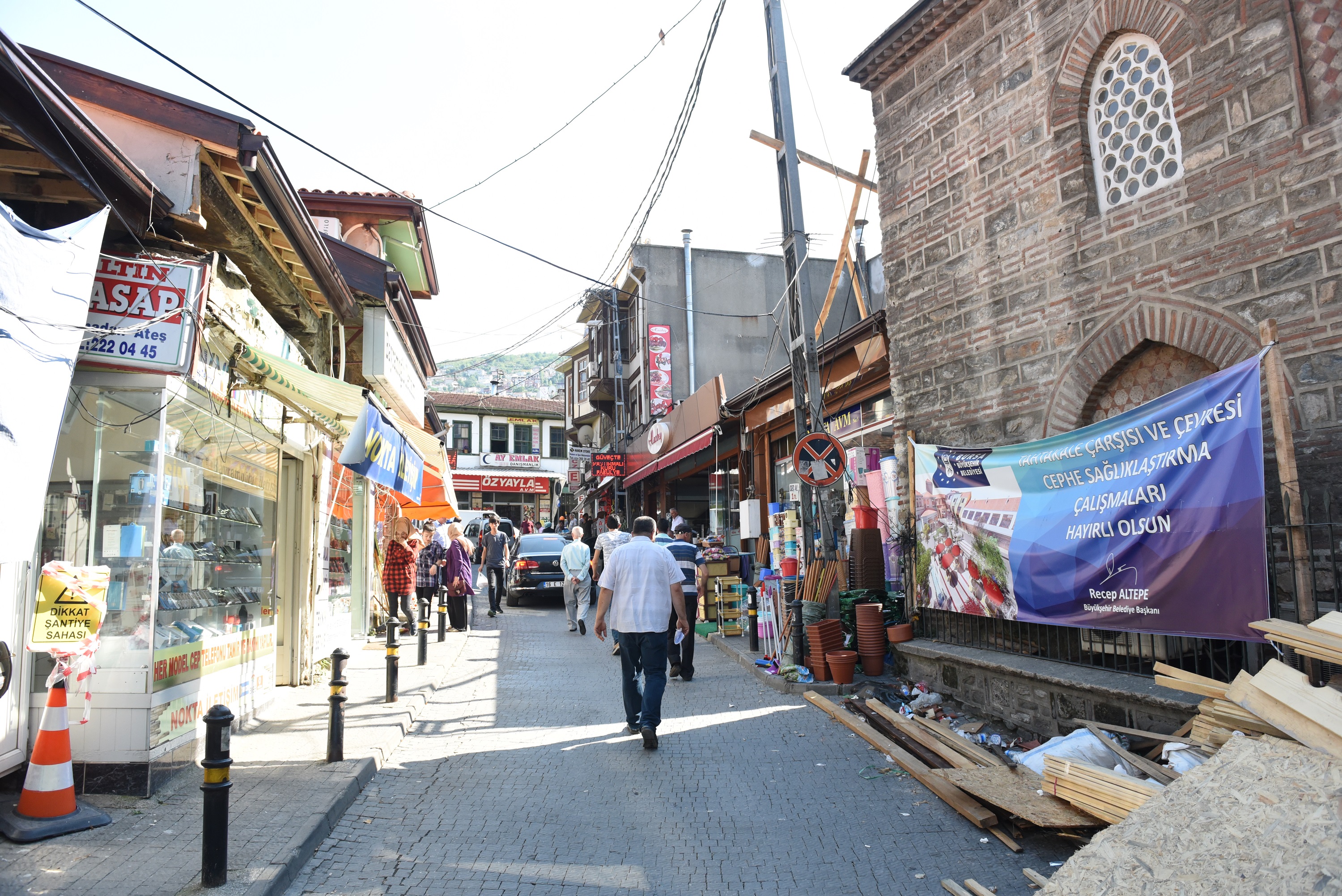 Bursa’ya eserler kazandırırken, aynı zamanda kentin caddelerini de daha modern görünüme kavuşturan Büyükşehir Belediye Başkanı Recep Altepe, Tahtakale’de devam eden cephe sağlıklaştırma çalışmalarını yerinde inceledi.
