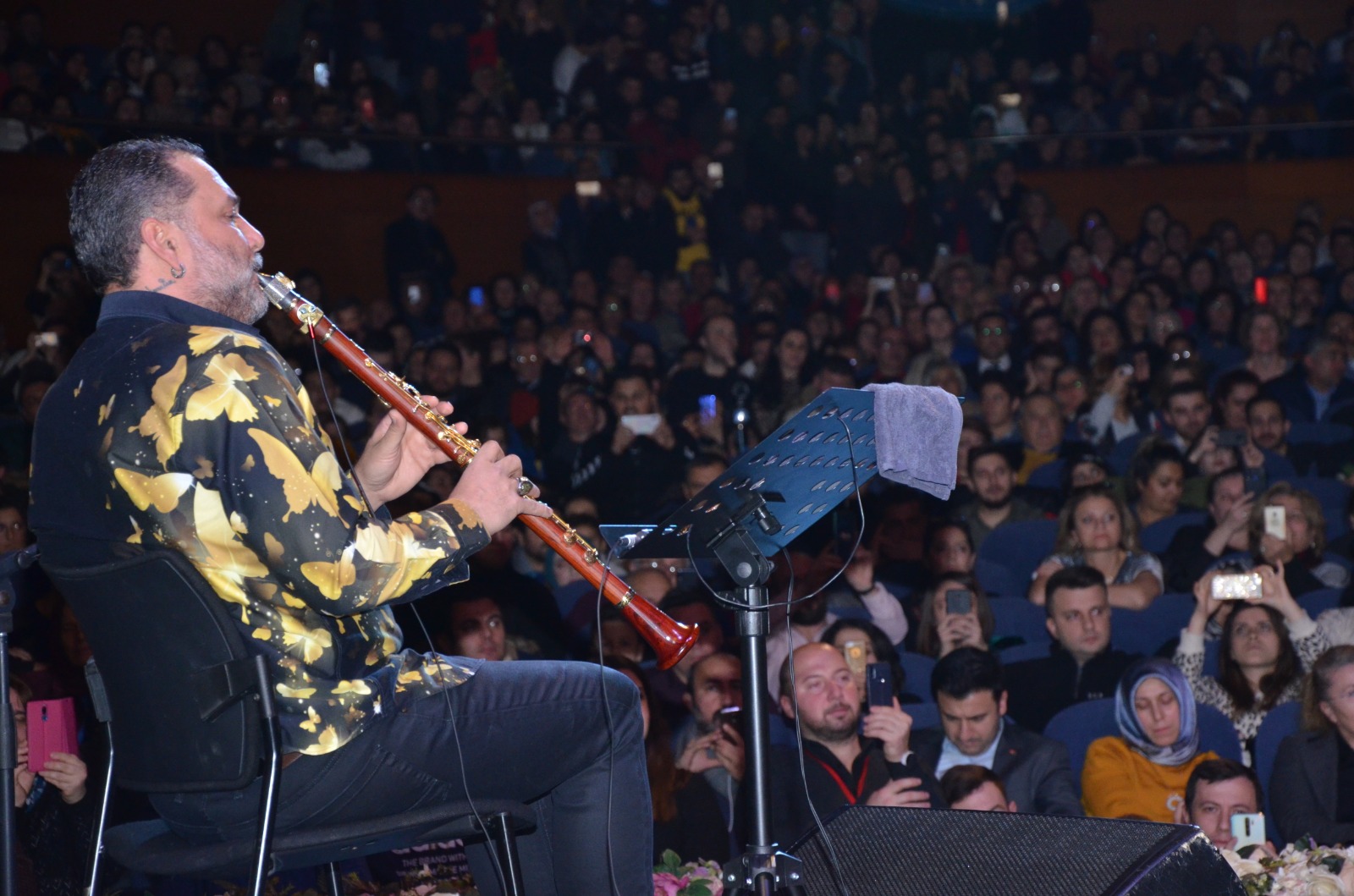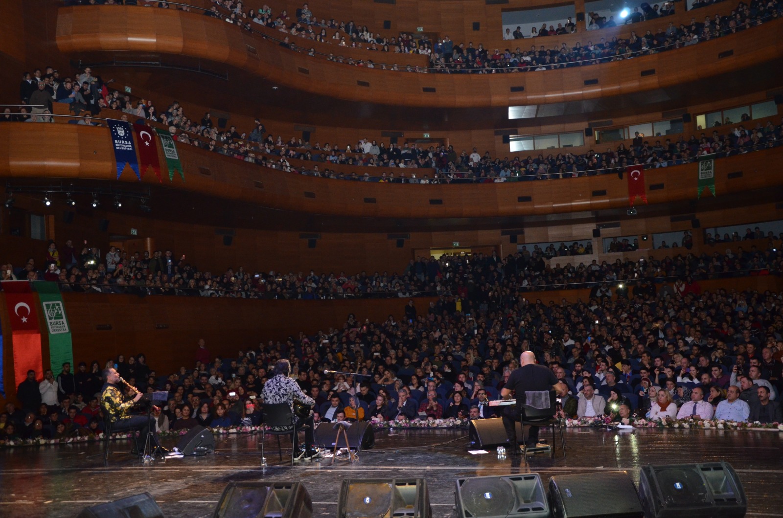 Konserin ikinci yarısında ünlü müzik grubu Taksim Trio’nun sahne almasıyla salondaki coşku doruğa çıktı. Ünlü grubun Bursalı müzisyenleri İsmail Tunçbilek bağlaması, Aytaç Doğan da kanunu ile sanatseverlere müzik ziyafeti sundu. Klarnet Virtüözü Hüsnü Şenlendirici ise performansıyla parmak ısırttı. Temponun hiç düşmediği gecede İsmail Tunçbilek’in ünlü ozan Neşat Ertaş’ın anısına seslendirdiği ‘Yalan Dünya’ adlı türkü, salonu dolduranlara duygusal anlar yaşattı.