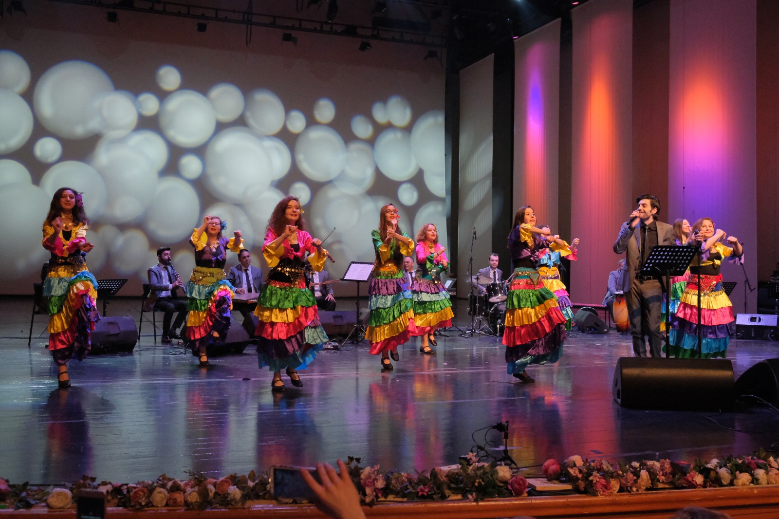 Konserin ilk bölümünde Roman Orkestrası Çalgıcı Mektebi, Murat İliş şefliğinde sahne aldı. Enstrümantal esintiler ile başlayan müzik dolu gecede Roman Orkestrası’nın sevilen ismi Solist Okan Turna, dillerden düşmeyen eserleri seslendirdi. Türk Sanat Müziği’nden fantezi müziğe, Türk Halk Müziği’nden Roman havalarına dek repertuarını geniş bir yelpazeyle sunan Turna’nın performansı alkış aldı. Konserin ilk yarısının sonunda orkestraya dansları ile eşlik eden Büyükşehir Belediyesi Karagöz Halk Dansları Topluluğu, geceye ayrı bir renk kattı.