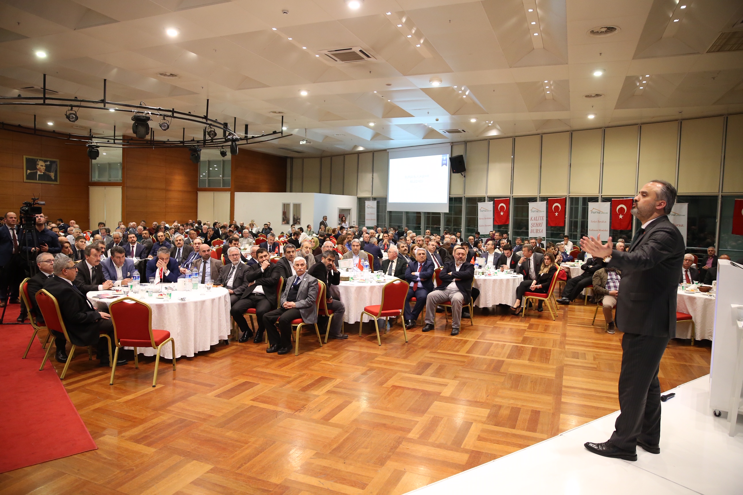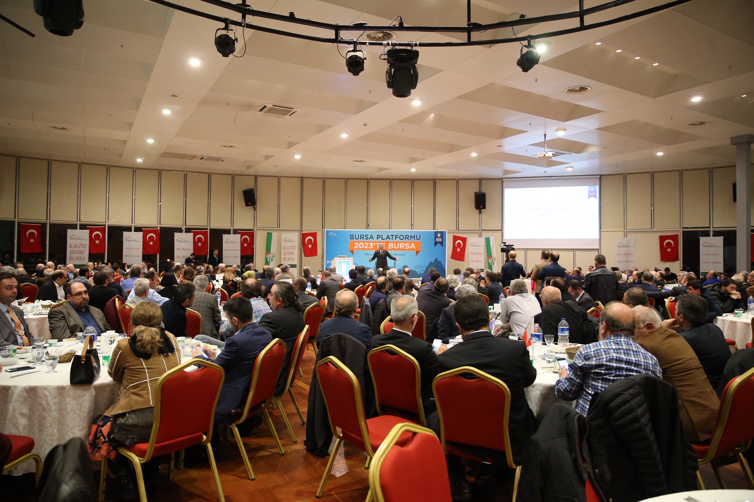 Büyükşehir Belediye Başkanı Alinur Aktaş, sivil toplum kuruluşları ile buluşma toplantıları kapsamında Bursa Platformu’na konuk oldu. Atatürk Kongre ve Kültür Merkezi’nde düzenlenen toplantıda konuşan ‘Bursa sevdamız Kalite davamız’ sloganıyla yola çıkan Bursa Platformu’nun Başkanı Suat Gülçimen, doğum yeri sormadan bir araya gelen Bursa sevdalılarının oluşturduğu bir platform olduklarını söyledi. Büyükşehir Belediye Başkanı Alinur Aktaş da hem bugüne kadar yaptıkları çalışmaları hem de önümüzdeki dönem hayata geçirecekleri projeleri platform üyeleriyle paylaştı.