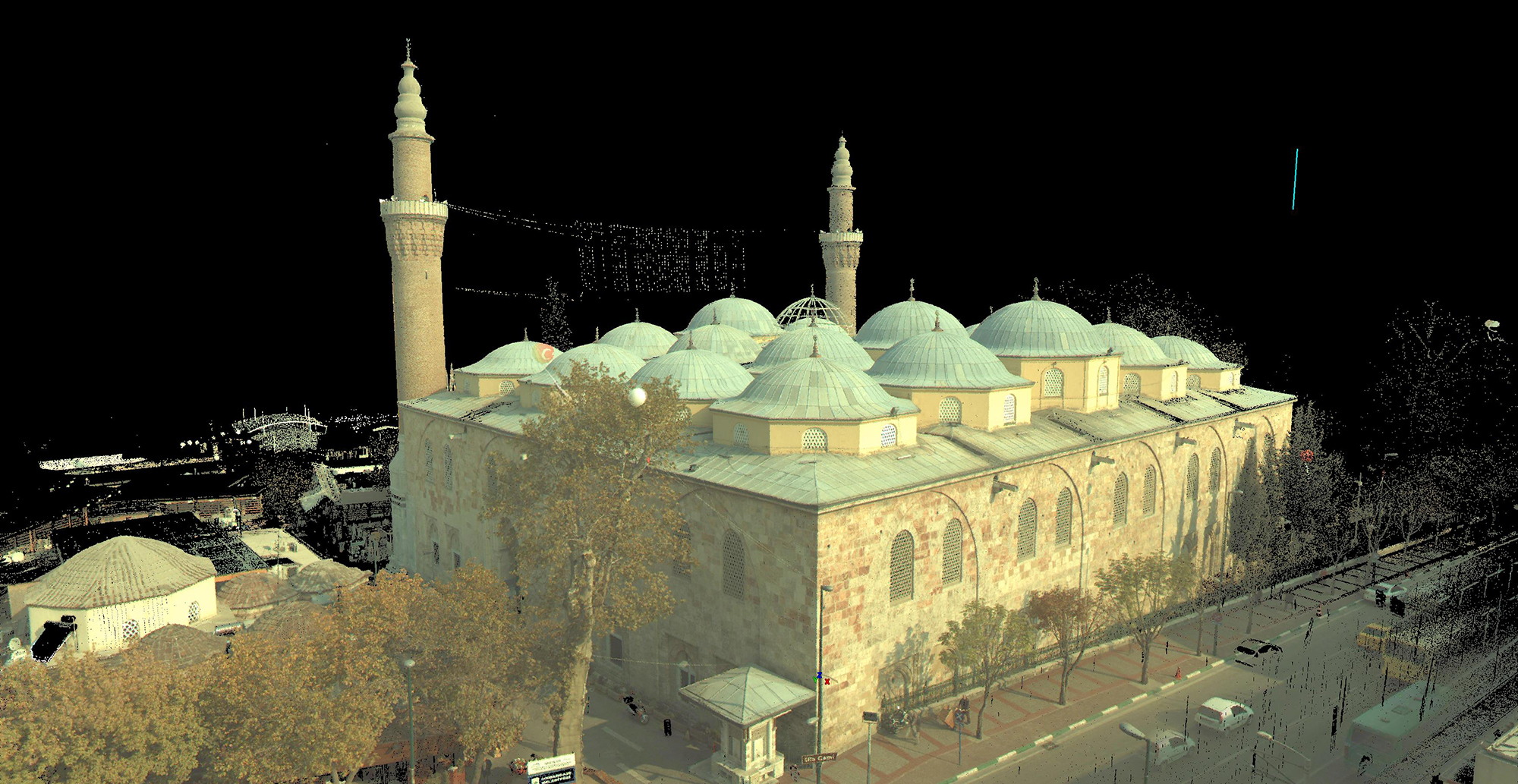 Bursa Büyükşehir Belediyesi Harita Şube Müdürlüğü ekipleri, 2015 yılında Türkiye’deki belediyelerde bir ilk olarak yersel lazer tarama cihazı ile ölçümlere başladı. Saniyede 50 bin nokta ölçebilen lazer ölçüm cihazı ile yapıların 3 boyutlu modeli çıkarılırken, İslam âleminin en yüksek mertebedeki 5’inci büyük mabedi kabul edilen 600 yıllık Ulucami’de yapılan 2 milyar nokta ölçümü ile en kaba hata sadece 8 milimetre olarak, tarihi yapının 3 boyutlu modeli oluşturuldu. Bugüne kadar Ulucami’nin yanı sıra Tarihi Saat Kulesi, Osman Gazi ve Orhan Gazi Türbeleri, Yeşil Cami, Yeşil Türbe, Tarihi Belediye Binası, İznik Antik Roma Tiyatrosu, Çini Fırınları, Tolon Fabrikası, İznik Surları, İshakpaşa Külliyesi, Yıldırım Beyazıt Camii, 1. Murat Külliyesi, Bitinya Galerileri, Zindan Kapı gibi 40’ın üzerindeki tarihi eserin modellemesi yapılırken, 100 milyar noktanın üzerinde ölçüm yapıldı. Harita Şube Müdürlüğü ekipleri, ecdat emanetlerinin yanı sıra talepler üzerine sivil mimari örneği yapıların da modellemeleri yapıyor. Yapılan bu modellemeler sayesinde Paris’te olduğu gibi bir yangın veya olası bir depremde zarar gören bir eser, milimi milimine aslına uygun olarak yeniden inşa edilebilecek.