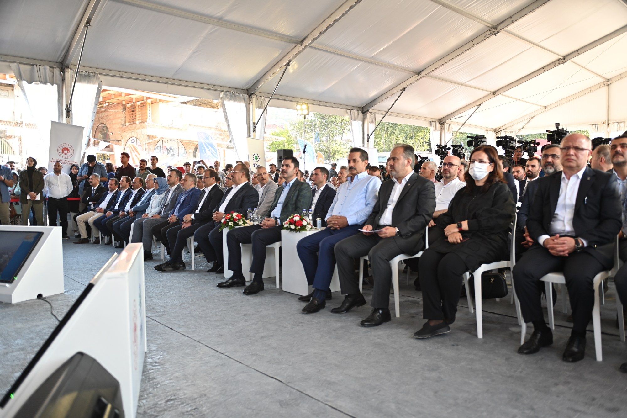 Konuşmaların ardından canlı bağlantılar ile yapımı tamamlanan hizmetlerin açılışını yapıp, yeni projelerin temelini atan Bakan Kurum, daha sonra Hanlar Bölgesi Çarşıbaşı Meydan Projesine ilk taşı yerleştirdi.