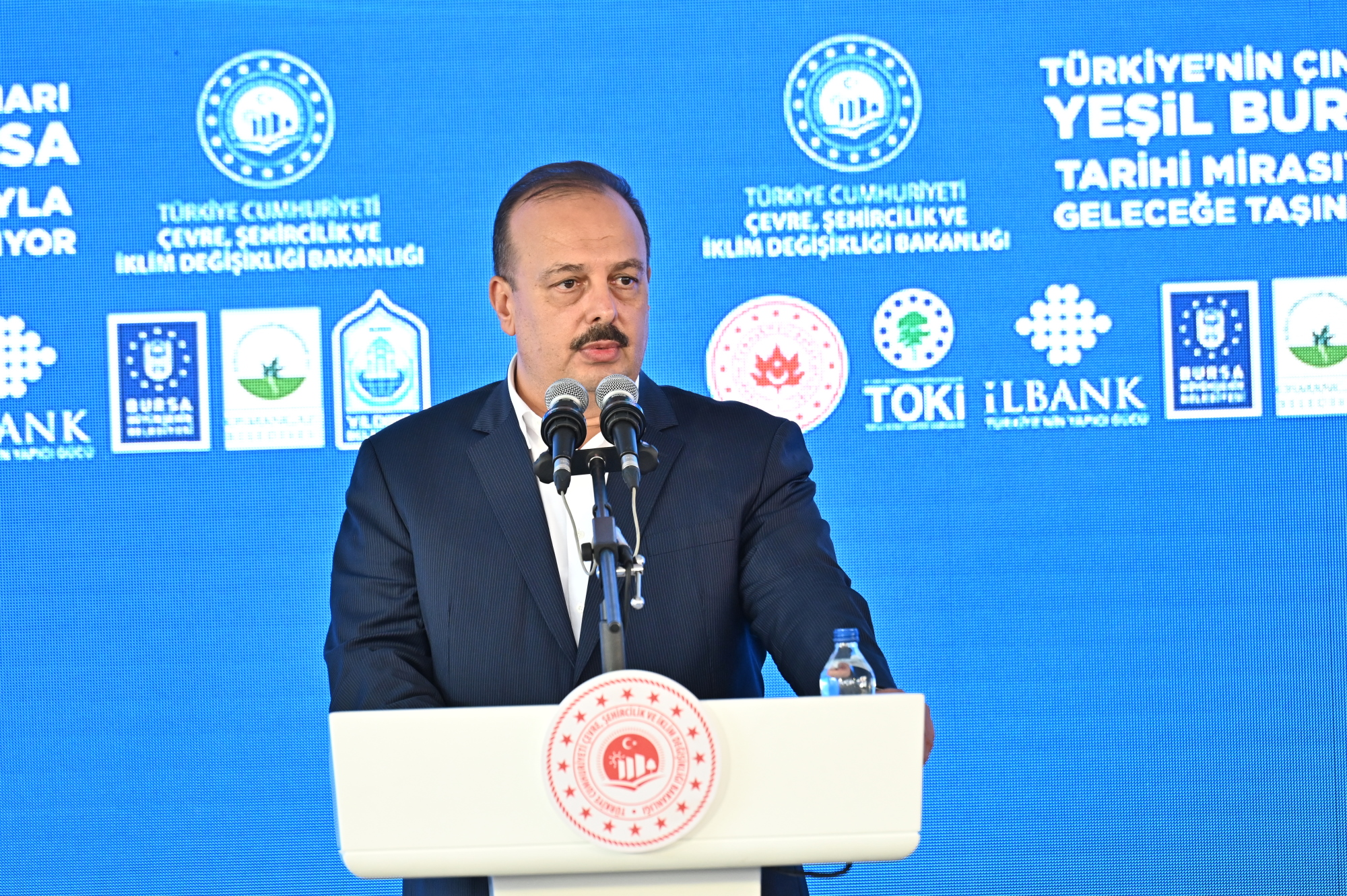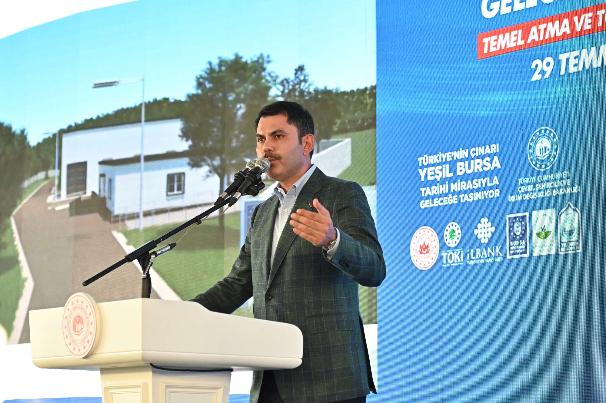 Bursalıların, Tarihi Çarşı ve Hanlar Bölgesi’nde hayata geçirilen projeyi 40 yıldır merakla ve özlemle beklediğini ifade eden Çevre Şehircilik ve İklim Değişikliği Bakanı Murat Kurum, “Burası bizim tarihimizin doğduğu yer. Burayı özel yapan üç unsur vardır. Uludağ, Ulu Cami ve Ulu çınar. Uludağ heybeti, Ulu Cami haşmeti, Ulu çınar ise hayatı temsil eder. İşte medeniyetimize can suyu veren, taşa ruh üfleyen ecdattan aldığımız ilhamla biz de bugün Hanlar Bölgesi’ndeyiz. Tüm Türkiye'de ‘tarihe vefa geçmişe saygı’ sloganı ile başlattığımız birçok projeyi yaptık. Yeşil Bursa'yı, kadim Bursa'yı büyük tarihi ile buluşturmak için ilk taşı hep birlikte yerleştireceğiz. 2 yıl önce buraya geldik ve bir söz verdik. Bursa’mıza, Türkiye'mize bir söz verdik ve bu tarihi bölgeye zarar veren binaları yıktık. İşte bu Hanlar Bölgesi'nin etrafını tamamen açtığımız bu alanda tam 500 milyon liralık bir yatırım gerçekleştirdik. Projemizde birlikte Bursa’mızın tarihi kimliğini ön plana çıkaracağız ve bu alanda bulunan Pirinç Han ve İpek Han gibi tarihi hanlarımızın görünürlüğünü artıracağız. Proje kapsamında 2000 metrekare büyüklüğünde 3 tane meydanımız olacak. 19 bin metrekare açık ve yeşil alan, yer altında da buraya gelen misafirlerimizin araçlarını park edeceği 12500 metrekarelik otoparkımız olacak. Bu da 500 araçlık otopark demektir. Vatandaşlarımızın, bu tarihi ve kültür aksında sıkılmadan, güzellikler içinde, çınarların gölgesinde gezdiği bir projeyi hayal ettik. İnşallah bugün de ilk taşımızı koyuyoruz. Biz taş üstüne taş koyanların yolundayız. Birileri gibi milletin önüne, milletin işlerine, milletin hedeflerine taş koyanlardan hiçbir zaman olmadık. İnşallah bu projemiz, geleceği bıraktığımız çocuklarımıza emanet ettiğimiz kadim değerlerin aziz hatıraları, yeni bir mihenk taşı olacaktır. Osman Gazi'nin göz nurlarına, Orhan Gazi'nin evlatlarına, Sultan Murad'ın evlatlarına şimdiden projemiz hayırlı, uğurlu, mübarek olsun” diye konuştu.