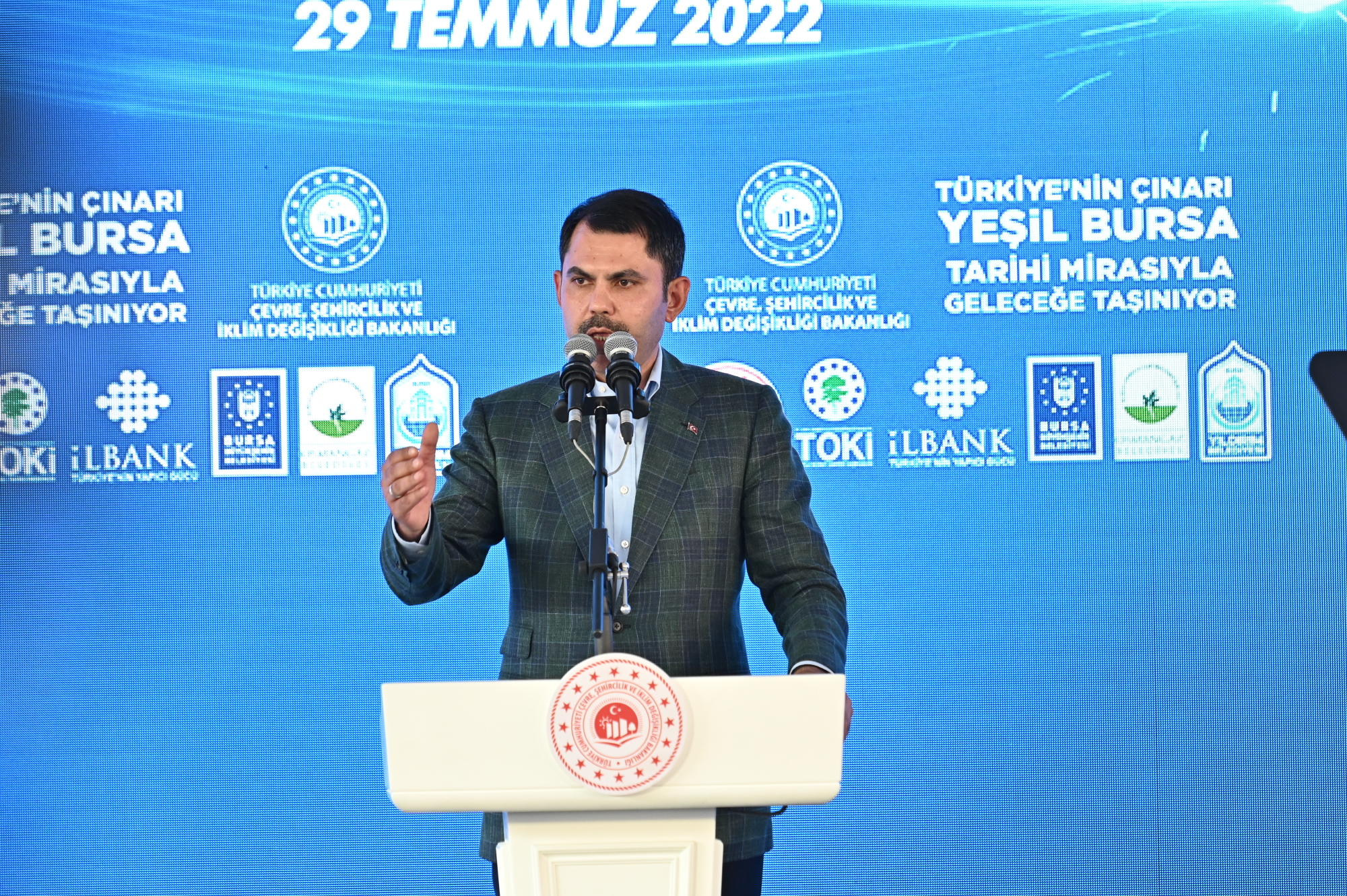 Bursa’nın geleceğine damga vuracak Hanlar Bölgesi Çarşıbaşı Meydan Projesi’nin startını veren Bakan Kurum aynı zamanda toplam yatırım bedeli 2 milyar lirayı aşan Osmangazi Macera Parkı açılışı, Yıldırım Mevlana TOKİ 7. Etap projesinin temel atması, İller Bankası tarafından yapılan esirlerin açılışı ve TOKİ eliyle yürütülen sosyal konutların temel atma ve açılışlarını da gerçekleştirdi. “Mevlana'nın söylediği gibi bir ayağımızı Bursa'ya diğer ayağımızı ülkemize, gönül coğrafyamızda sabitliyor ve bu çerçevede tüm dünyayı dolaşıyoruz” diyen Bakan Kurum, “Elbette birileri bahanelere sarılacak, birileri işleri savsaklayacak. Bazı süreçleri öne sürüp, sorumluluktan kaçacaklar. Ama biz milletimizle çalışmaya, milletimizle yürümeye, milletimizle büyük başarı hikayeleri yazmaya devam edeceğiz. Bu noktada 2023 seçimleri büyük önem arz ediyor. Bu seçimler ehliyet ile kifayetsizliğin, nitelikle yetersizliğin, çalışkan ile tembelliğin seçimi olacaktır. Bu seçimler güçlü bağımsızlık ile taşeronluğun, söz söyleyen yerine söz dinlemeyi tercih edenlerin, cesurlar ile kaçak güreşenlerin mücadelesi olacaktır. Varsın Türkiye düşmanları sizinle aynı dili kullansınlar, varsın millete husumetli olanlar sizinle yan yana durmaya devam etsinler. Bize aziz milletimiz yeter, bize Türkiye yeter, bize Bursa yeter. Bursa'dan, Hanlar bölgesinden ‘hodri meydan’ diyoruz. Kurduğunuz oyunlar boşa çıkacak. Büyükelçilerin masasında yaptığınız hesaplar, çarşıda bozulacak. Yanlış hesabınız mutlaka sandıktan dönecektir. Açılışını yaptığımız, temellerini attığımız projeler Bursa’mıza, Bursa'nın gençlerine, çocuklarına, geleceğine hayırlı olsun” diye konuştu.