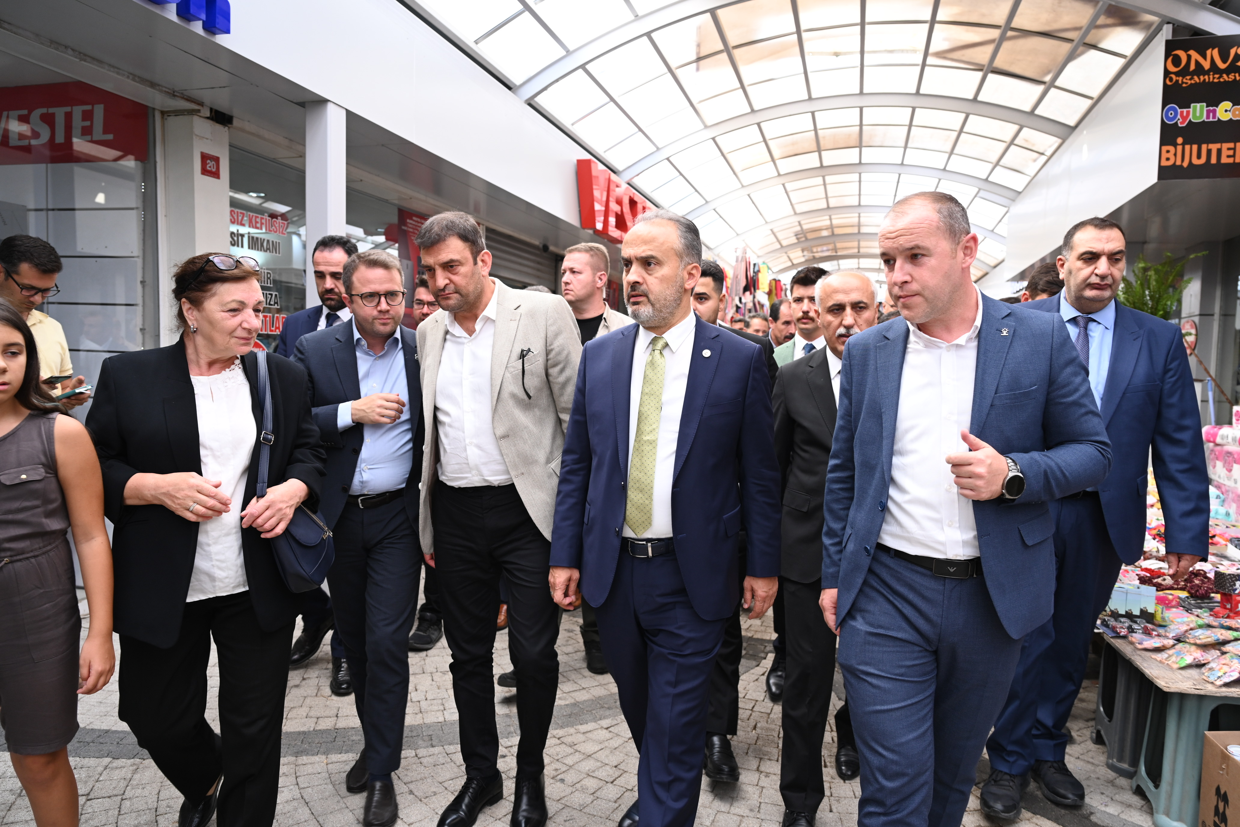 Bursa Büyükşehir Belediye Başkanı Alinur Aktaş, beraberindeki Yenişehir Belediye Başkanı Davut Aydın ve MHP Bursa İl Başkanı Muhammet Tekin ile birlikte çalışmaların tamamlandığı Balıbey Çarşısı’nı gezdi. Hem çarşı esnafı hem de vatandaşlarla sohbet edip, uygulamadan kaynaklı memnuniyeti dinleyen Başkan Aktaş, göreve geldikleri günden beri eser siyaseti için var güçleri ile çalıştıklarını vurguladı. Kent merkezinin yanında Bursa’nın 17 ilçesinde de iz bırakan çalışmalara imza attıklarını vurgulayan Başkan Aktaş, “Ne söz verdiysek, yerine getirmeye çalışıyoruz. İlçelerimizin de her birinin ayrı önemi var. Yenişehir Ulucami Mahallesinde de çelik çatı üst örtü kapama imalatı yaptık. Burayla alakalı esnafın ciddi istekleri vardı. Buranın görseli eskiydi, binaların dış cepheleri kötüydü. Esnaflarımız da gerekli düzenlemeleri yaptı ve yapmaya devam ediyor. İş birliği içinde Yenişehir’i yeni güzelliklerle buluşturmaya devam ediyoruz. Yenişehir’e hayırlı olsun, esnafımıza da kolaylıklar diliyorum” diye konuştu.