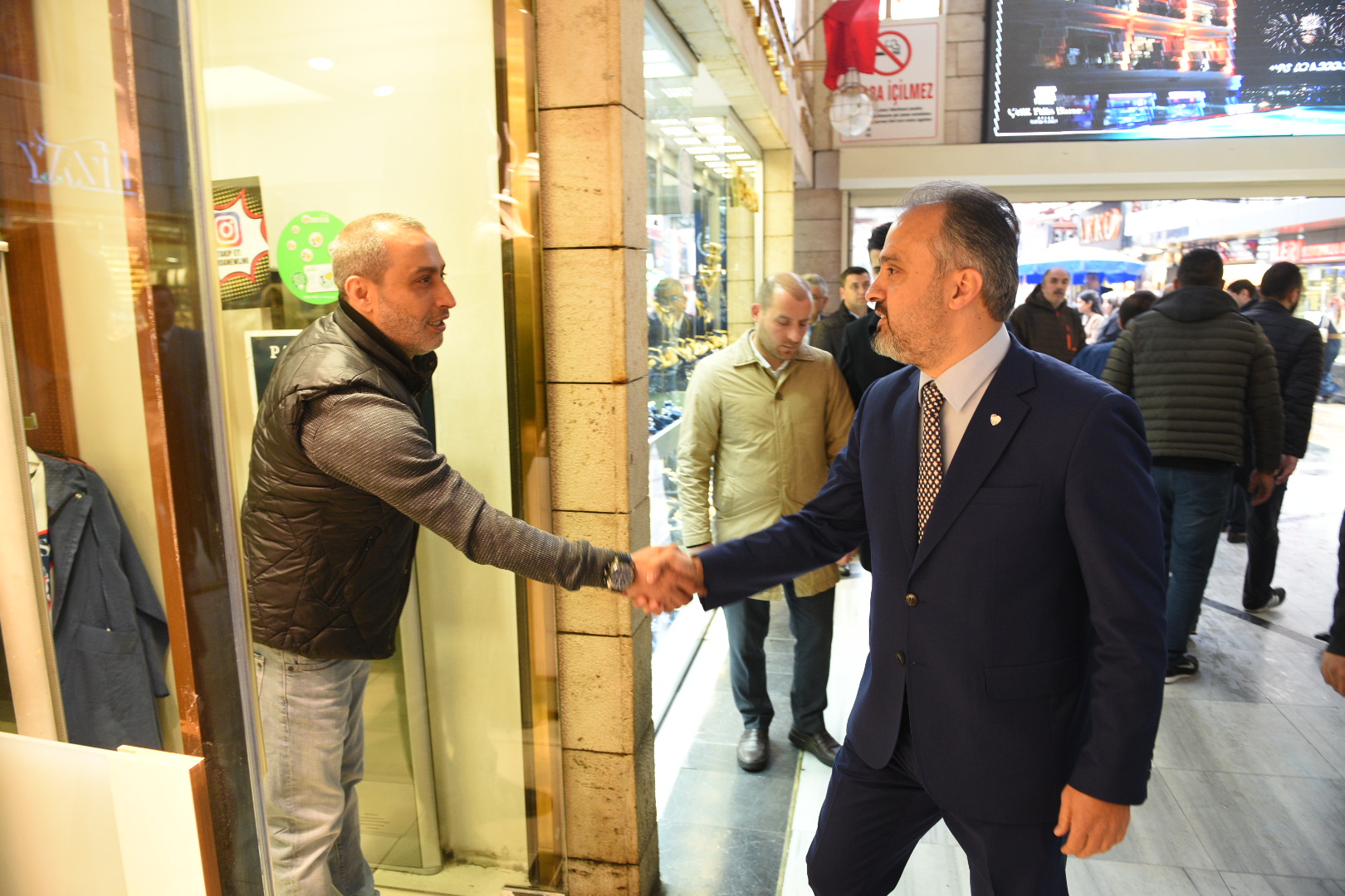 Bursa Büyükşehir Belediyesi’nin yeni döneme damgasını vuracak projelerinin başında Tarihi Çarşı ve Hanlar Bölgesi’nin etrafının açılması oluştururken, Büyükşehir Belediye Başkanı Alinur Aktaş, konunun en önemli tarafı olan esnaflarla fikir alışverişini sürdürüyor. Seçim öncesi defalarca geldiği çarşıya bu kez Bursa’nın seçilmiş Büyükşehir Belediye Başkanı olarak gelen Aktaş, yeni dönemde çarşı bölgesine yapılacak çalışmalar hakkında esnafı bilgilendirdi. Osmangazi Belediye Başkanı Mustafa Dündar, AK Parti Osmangazi İlçe Başkanı Ufuk Çömez, Tarihi Çarşı ve Hanlar Birliği Başkanı Muhsin Özyıldırım, çarşı derneklerinin başkanları ile bölge esnafının katıldığı toplantıda çarşının geleceği masaya yatırıldı.